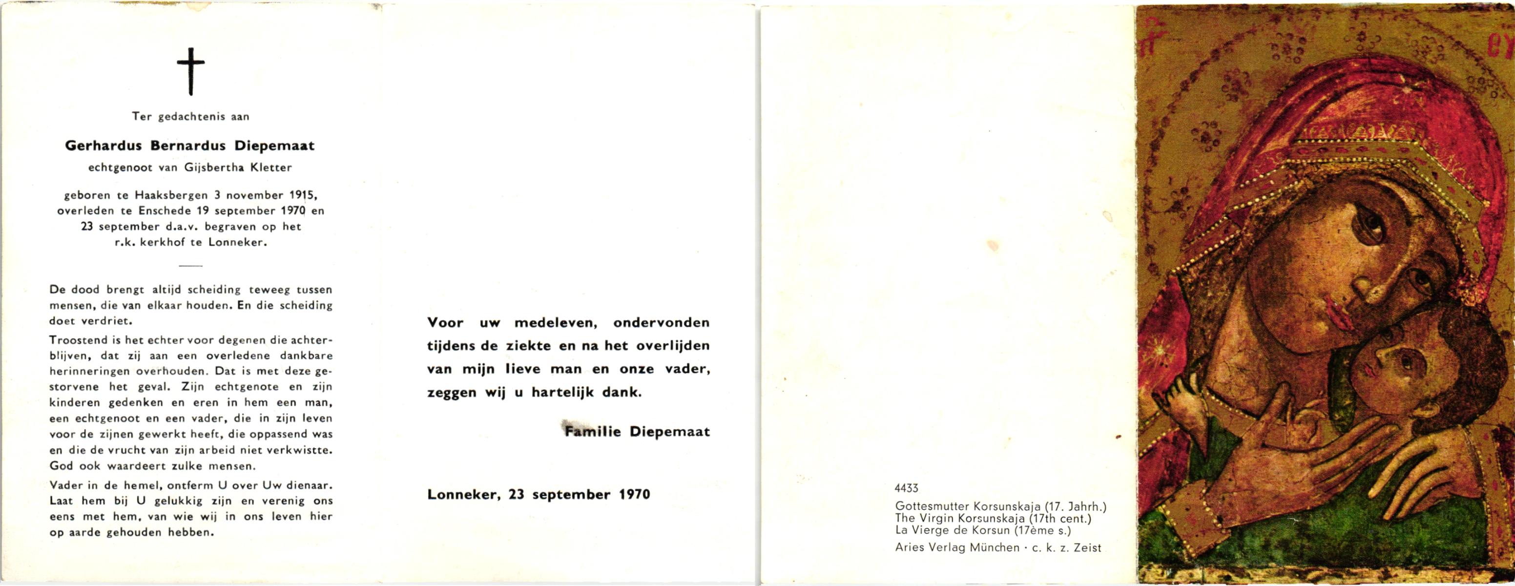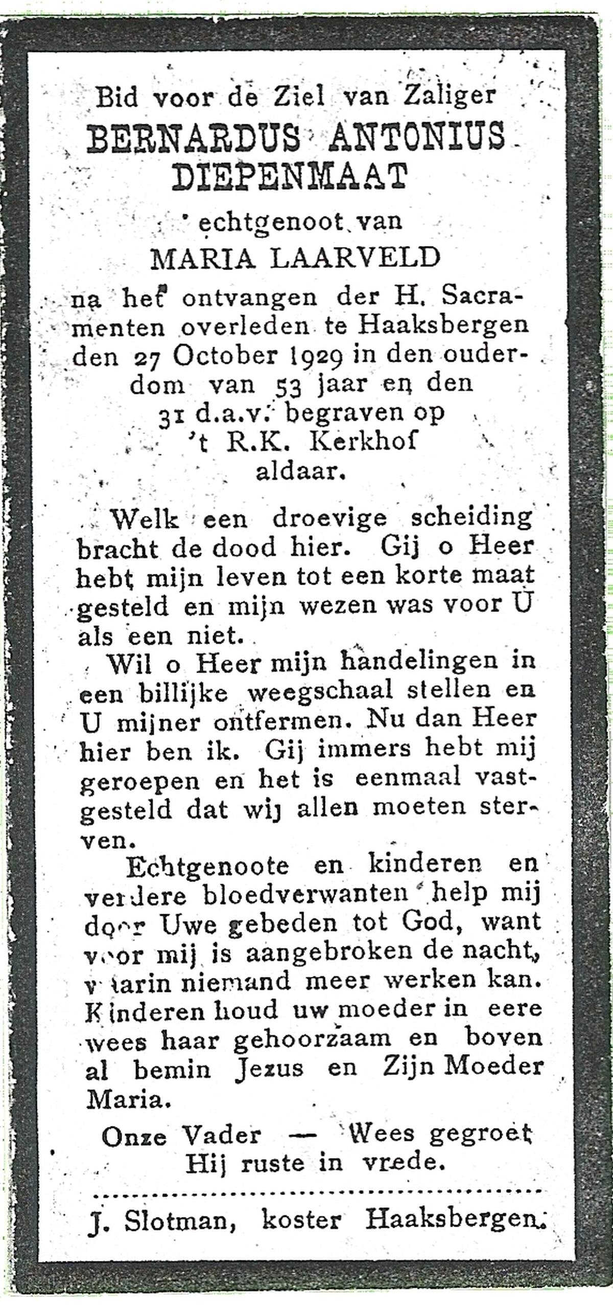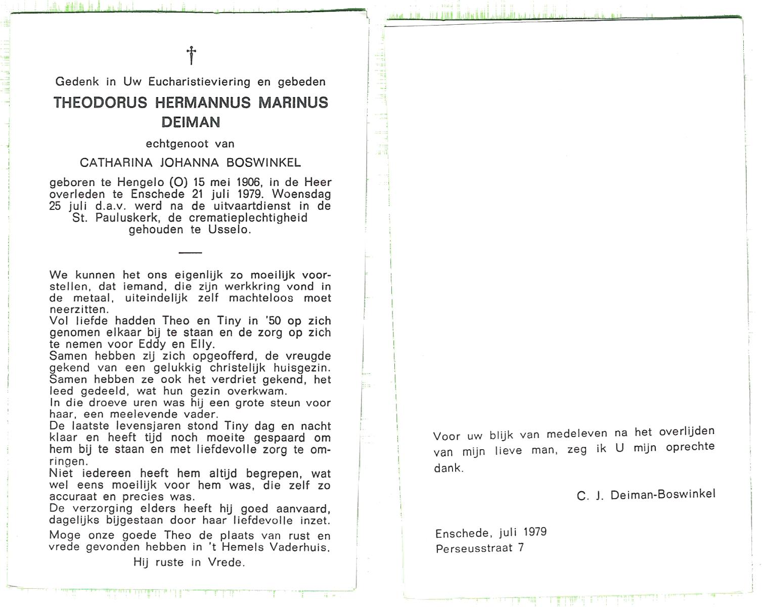 DIJKMAN, Martinus Antonius, geboren op 5-2-1909 te Vaassen, overleden op 14-9-1962 te Haaksbergen op 53-jarige leeftijd, begraven op 18-9-1962 te Haaksbergen.