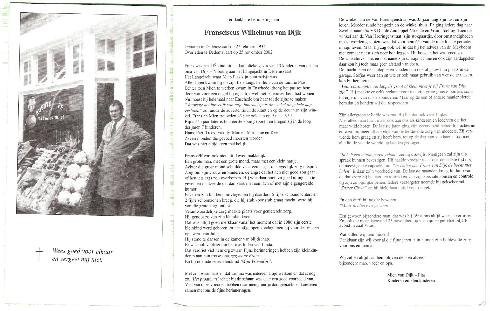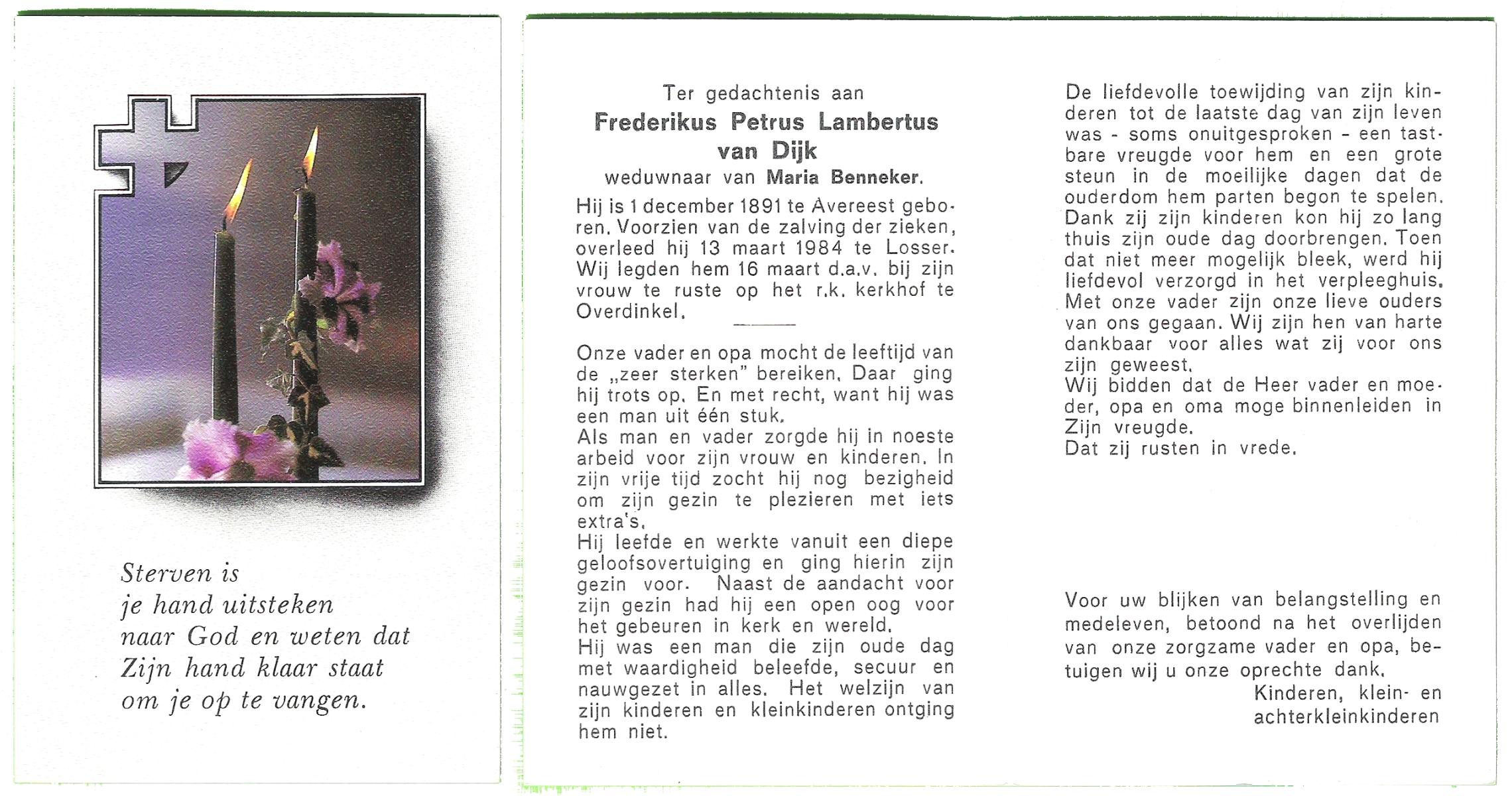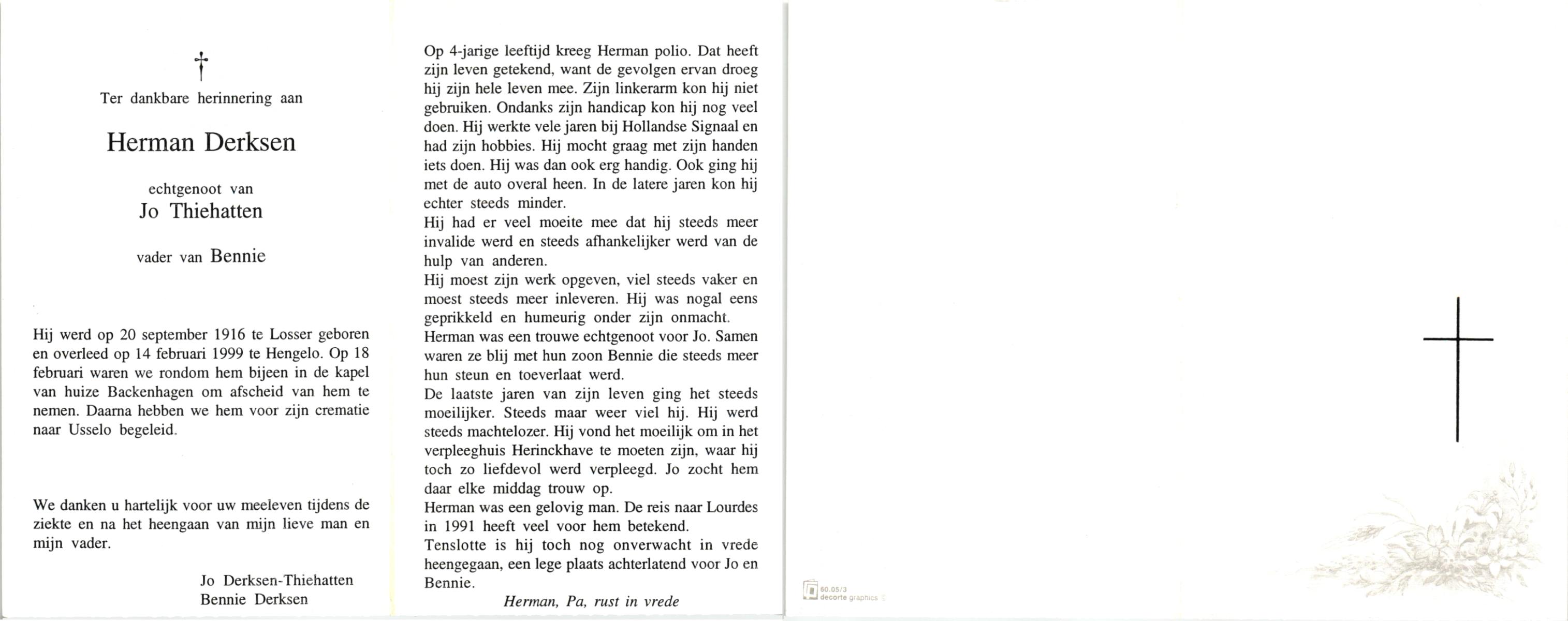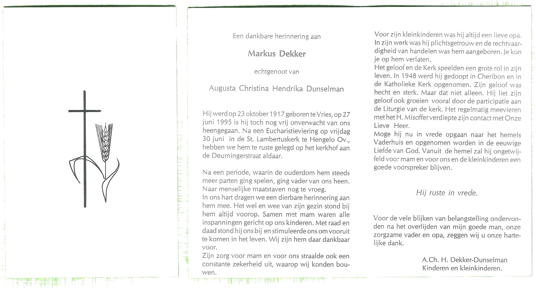 DIJKSTRA, Harm, geboren op 4-8-1916 te Ooststellingwef, overleden op 6-10-1995 te Hengelo (Ov.) op 79-jarige leeftijd, gecremeerd op 10-10-1995 te Usselo.