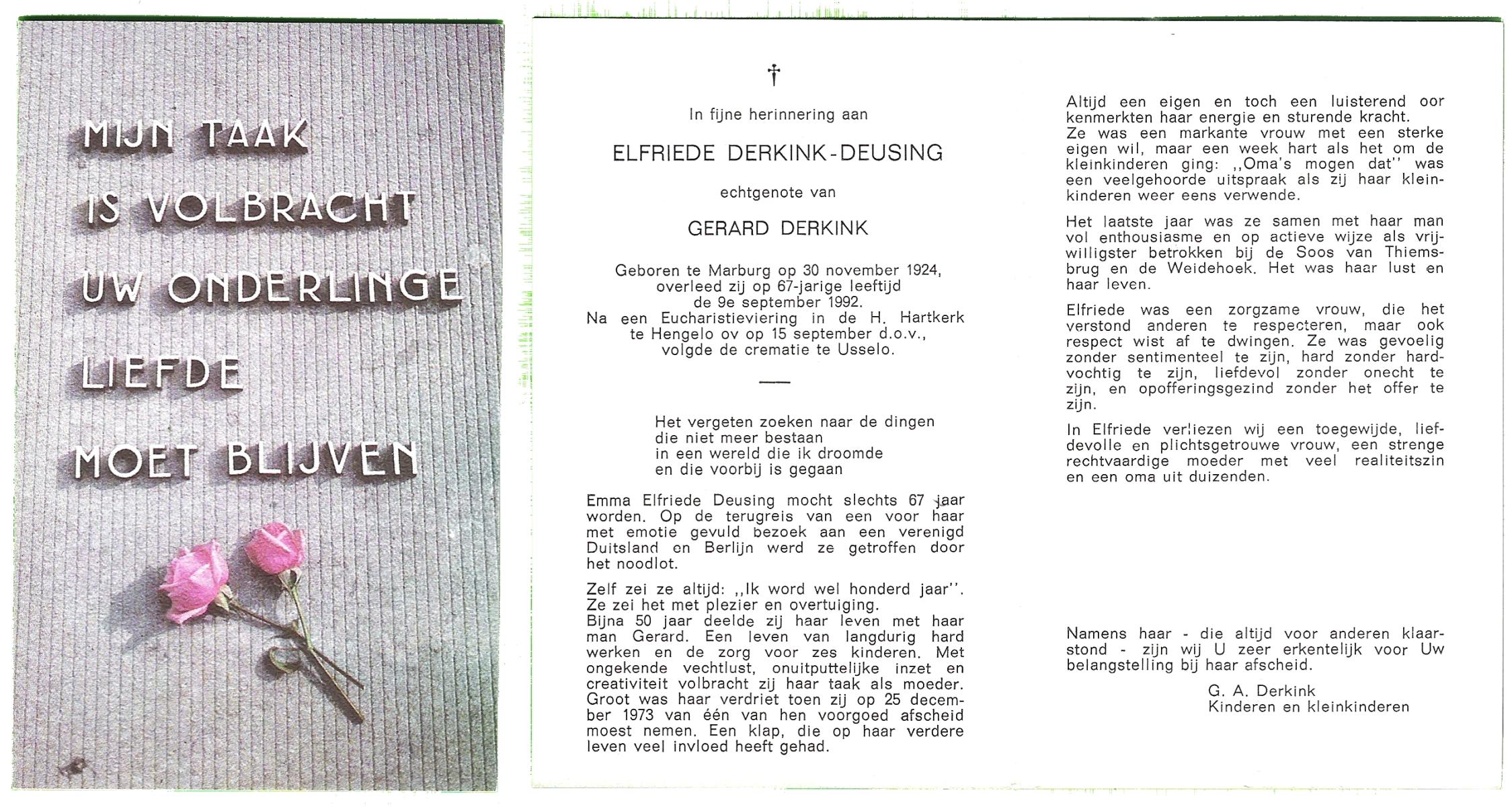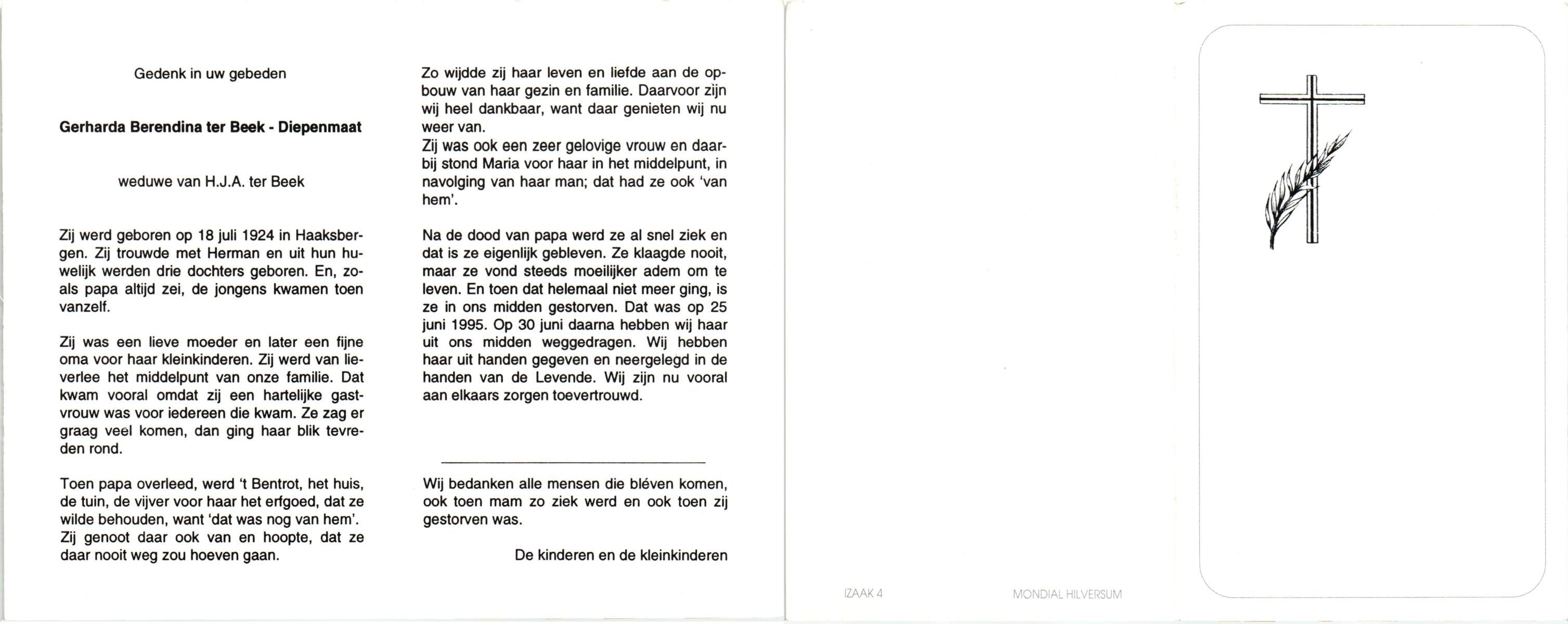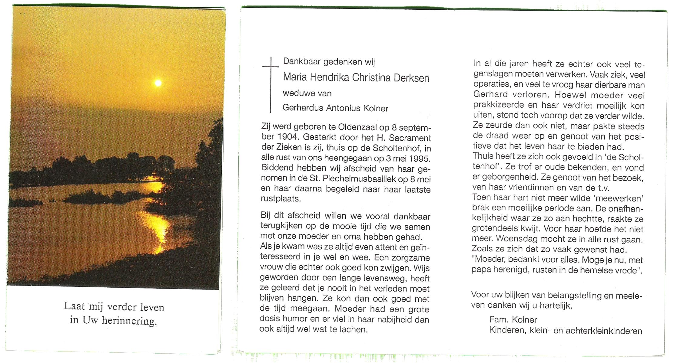 DIJKHUYS, , Gerdina Maria, geboren op 13-12-1905 te Borne, overleden op 9-5-2000 te Losser op 94-jarige leeftijd, gecremeerd op 12-5-2000 te Usselo.
