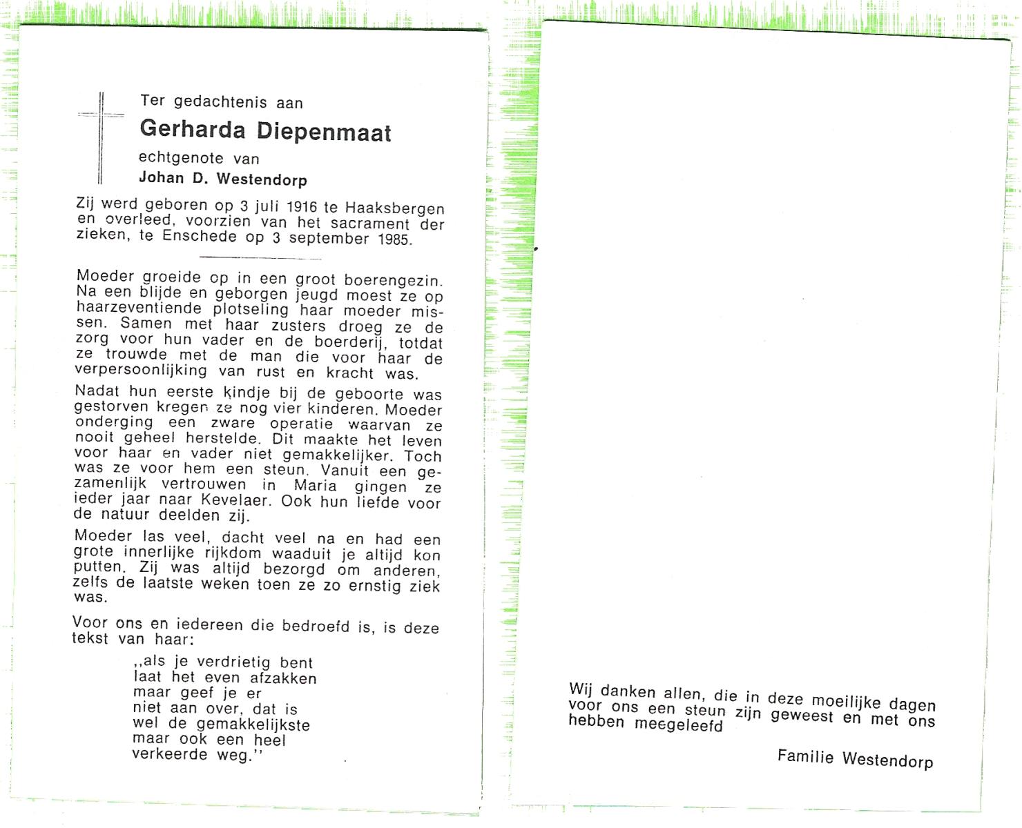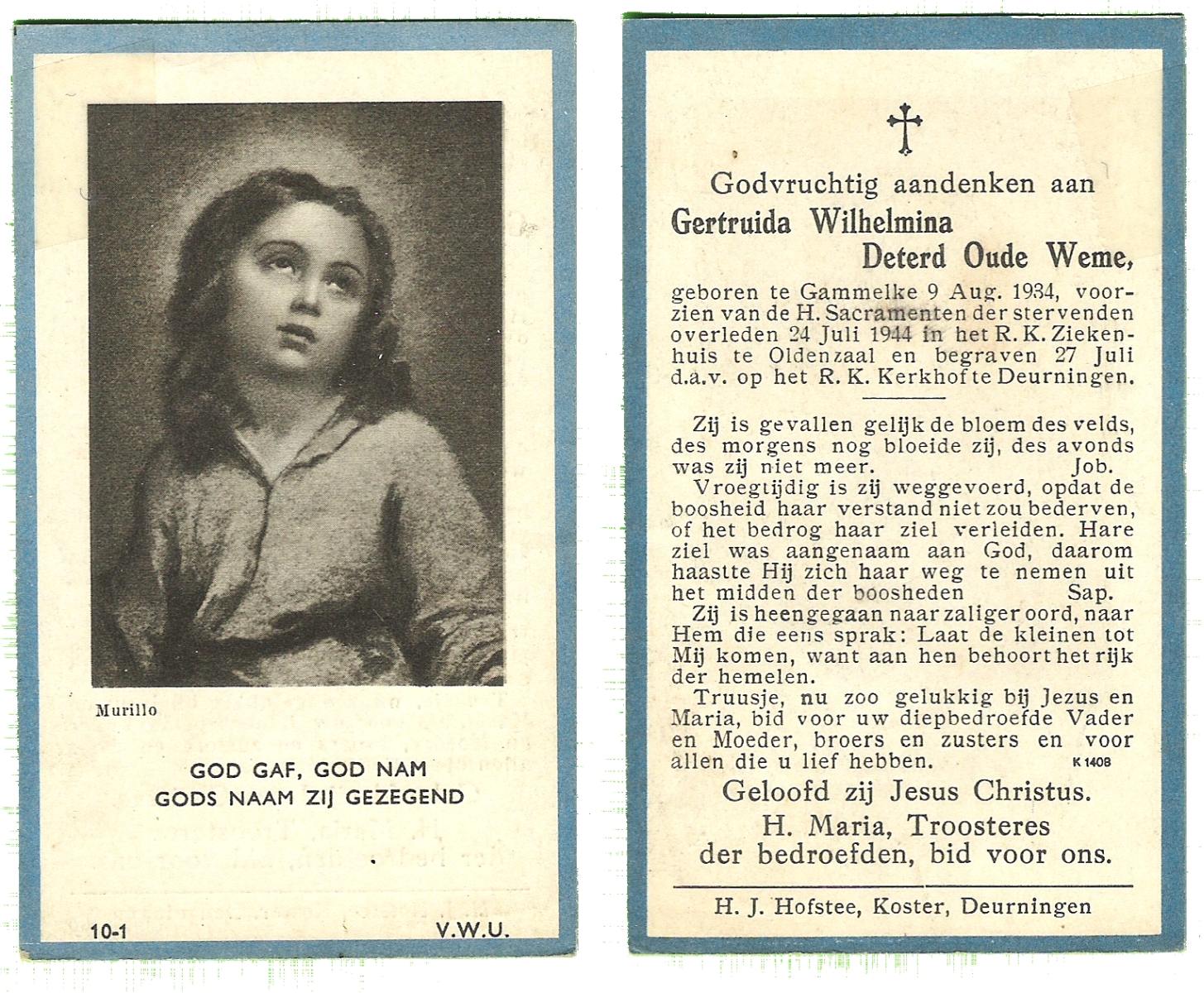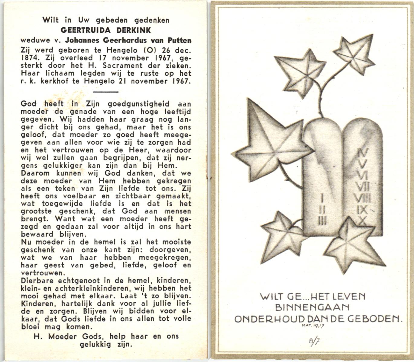 DISSEL, Geertruijdis Maria, geboren op 22-02-1888 te Wierden, overleden op 21-3-1980 op 92-jarige leeftijd, begraven te Enter.