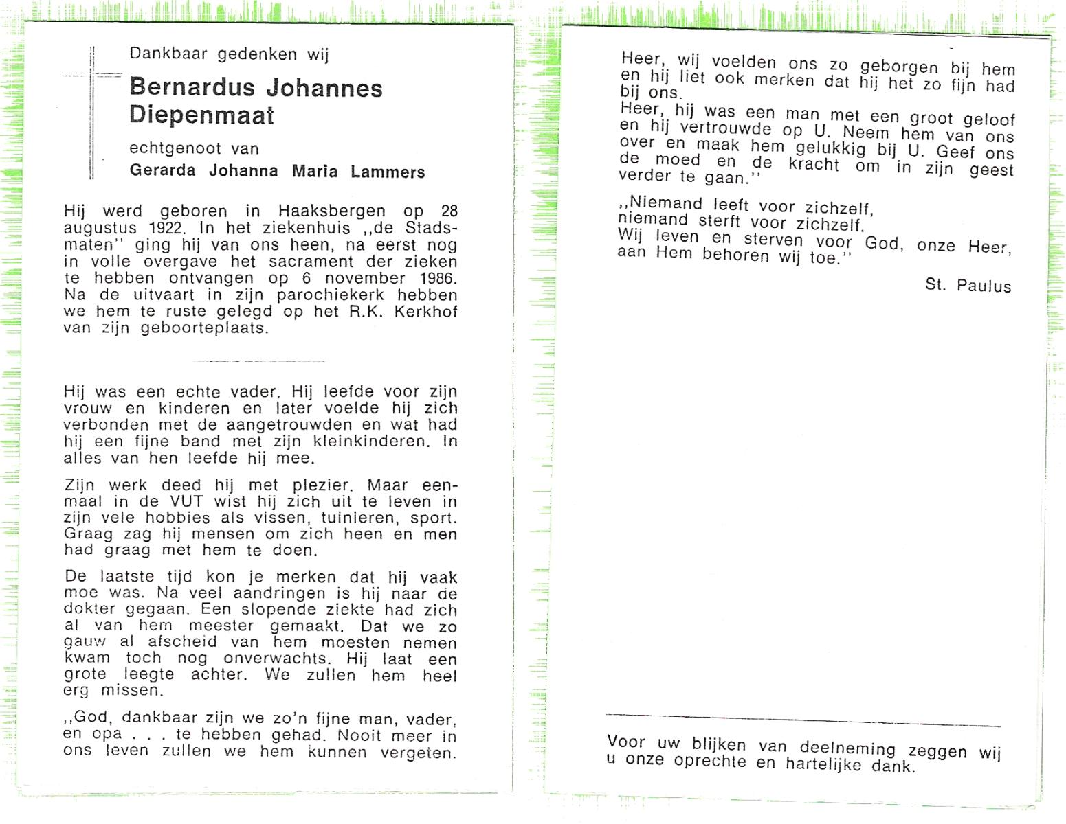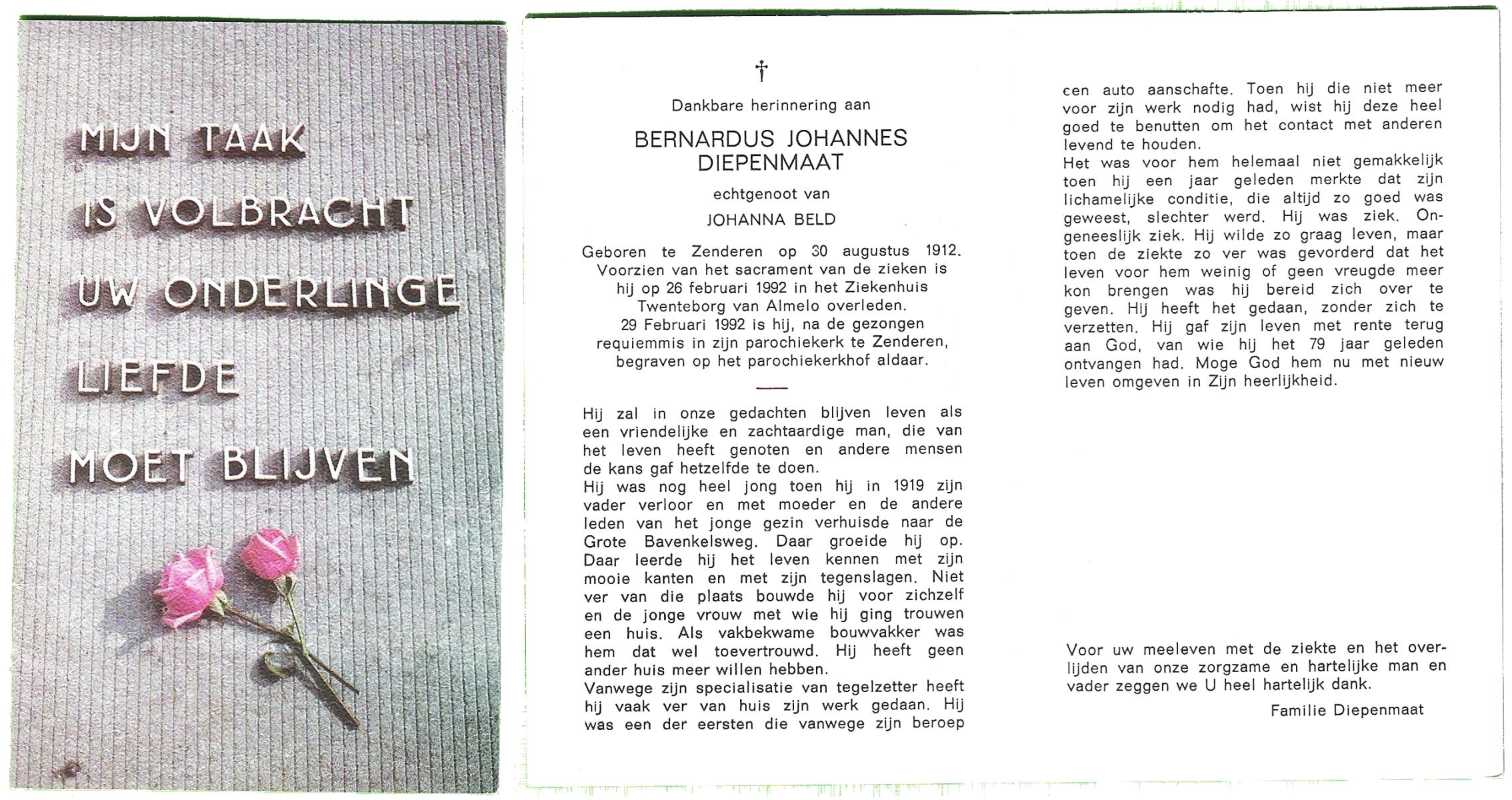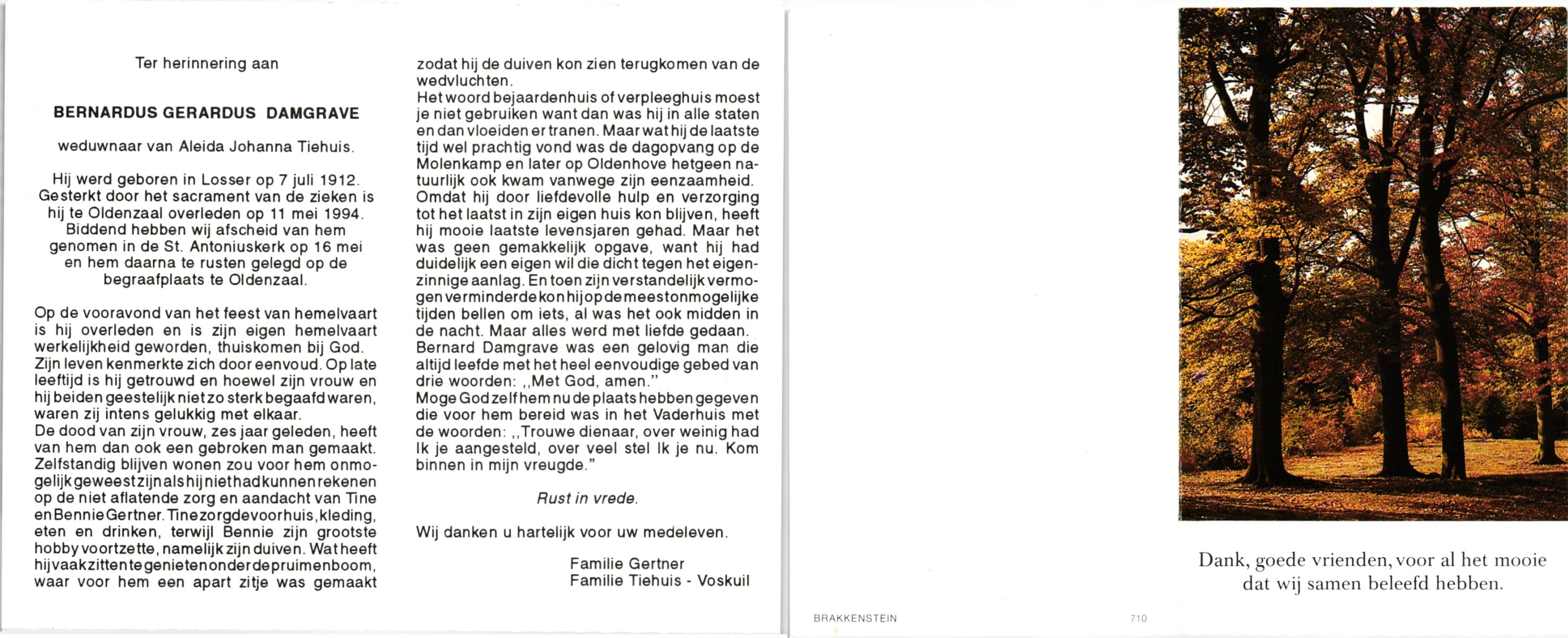 DAMGRAVE, , Bernardus Gerardus, geboren op 7-7-1912 te Losser, overleden op 11-5-1994 te Oldenzaal op 81-jarige leeftijd, begraven op 16-5-1994 te Oldenzaal.