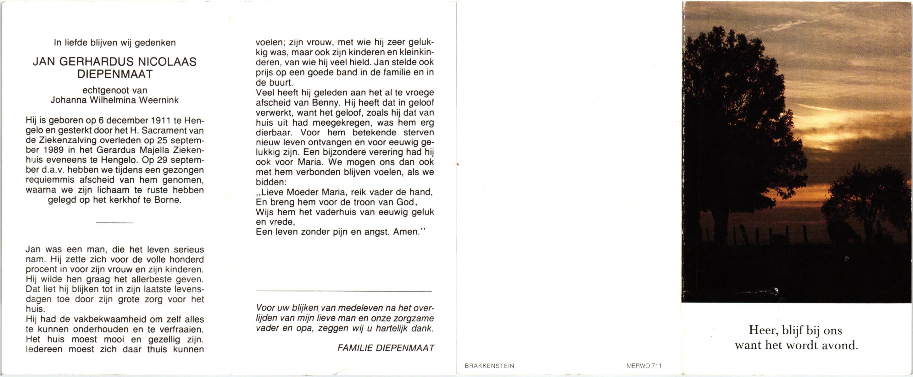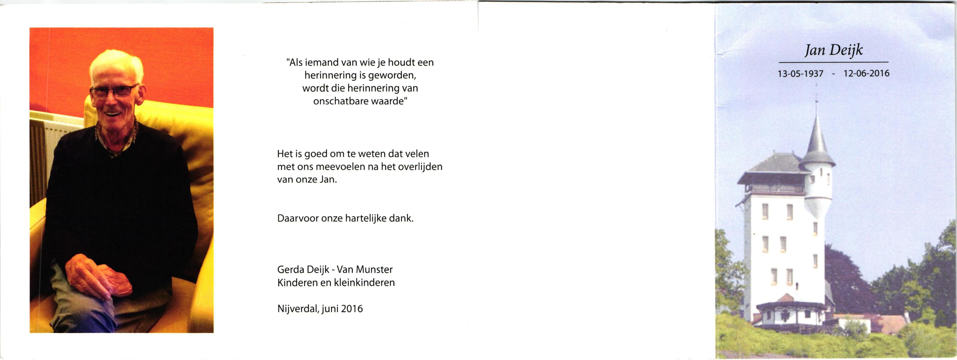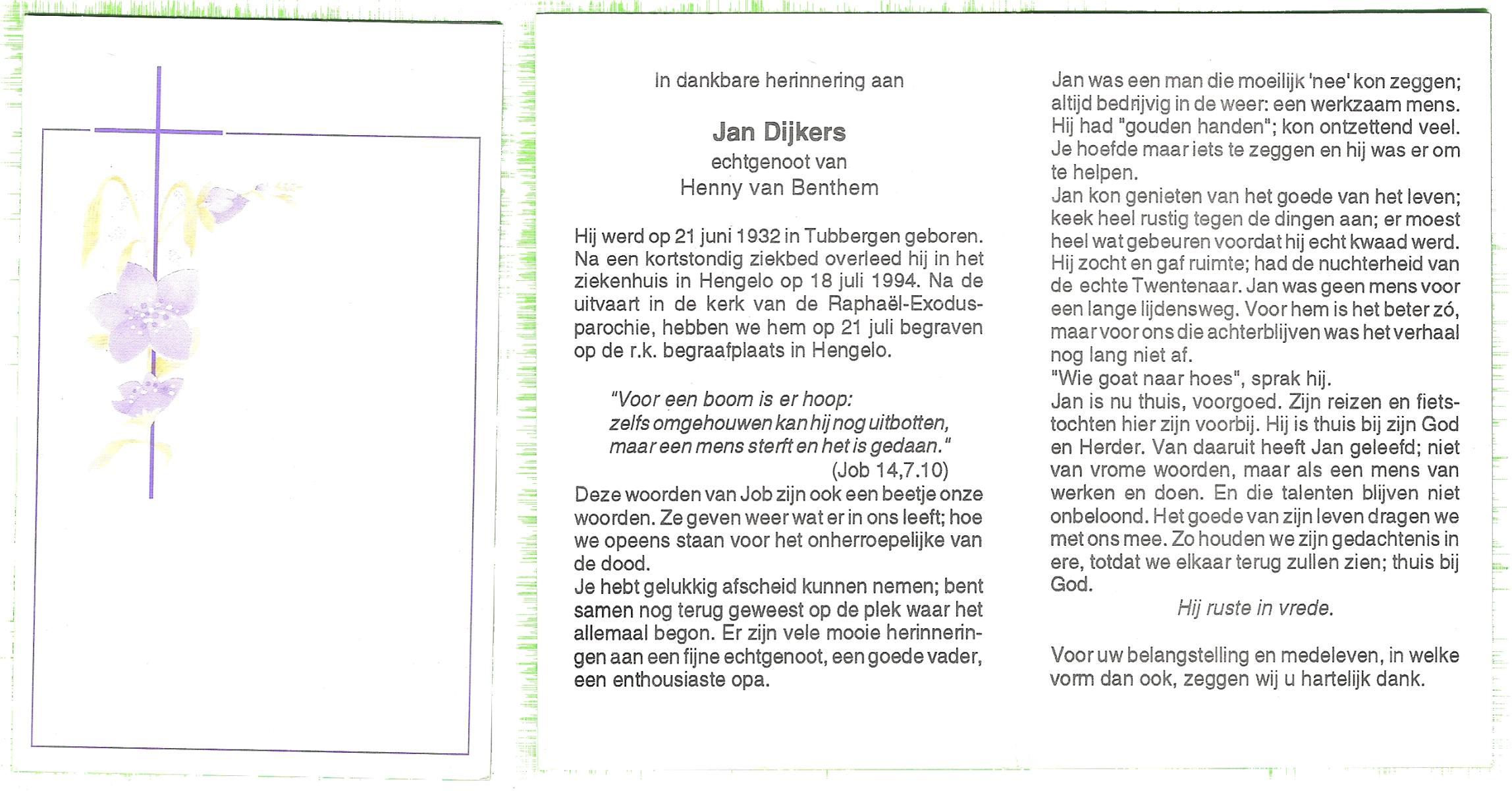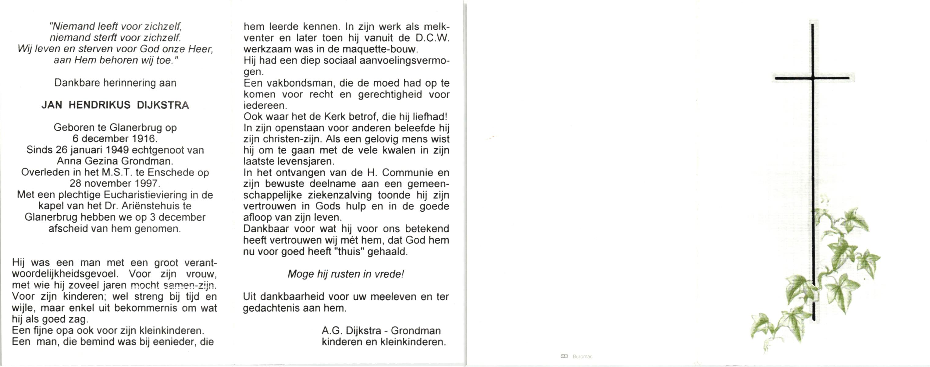 DIJKSTRA, , Jan Hendrikus, geboren op 6-12-1916 te Glanerbrug, overleden op 28-11-1997 te Enschede op 80-jarige leeftijd.