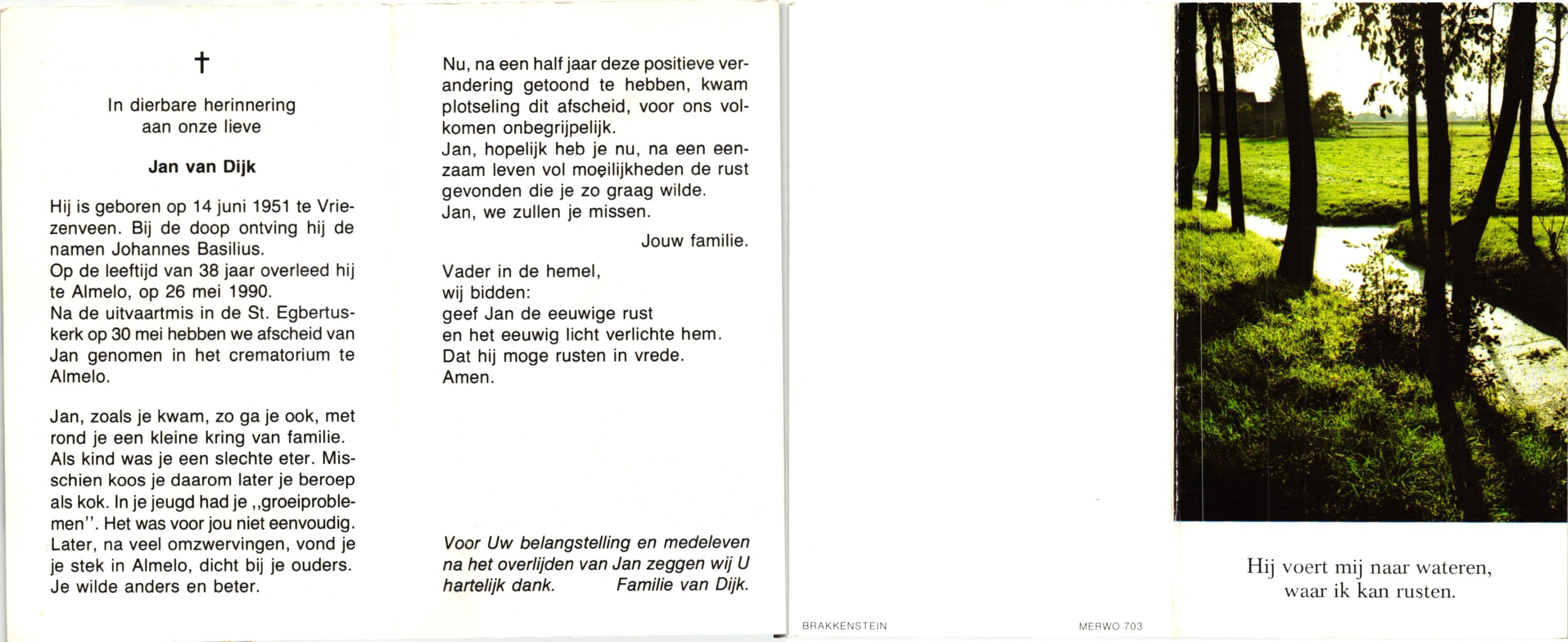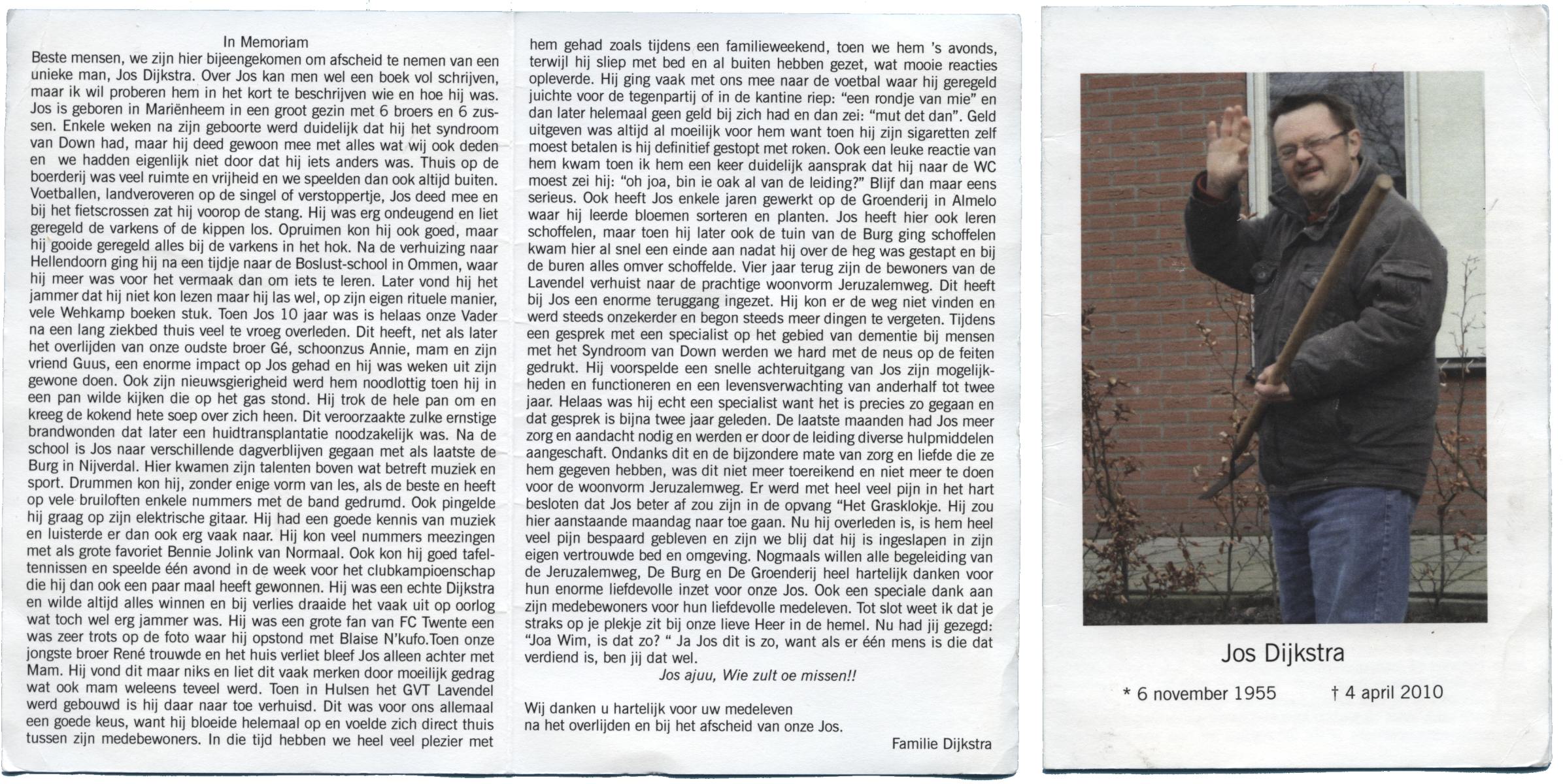DIJKSTRA, Jos, geboren op 6-11-1955 te Marienheem, Raalte, overleden op 4-4-2010 te Hellendoorn, Nijverdal op 54-jarige leeftijd.