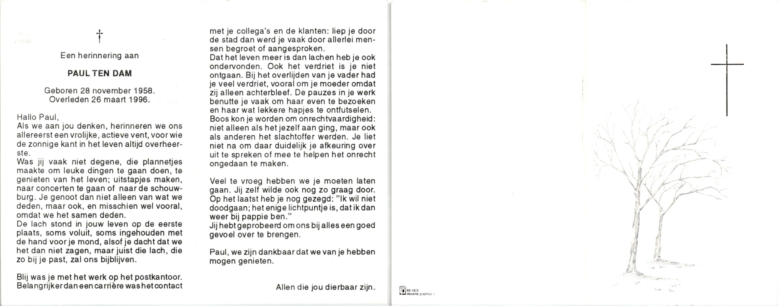 DAM, ten, Paul, geboren op 28-11-1958, overleden op 26-3-1996 op 37-jarige leeftijd.
