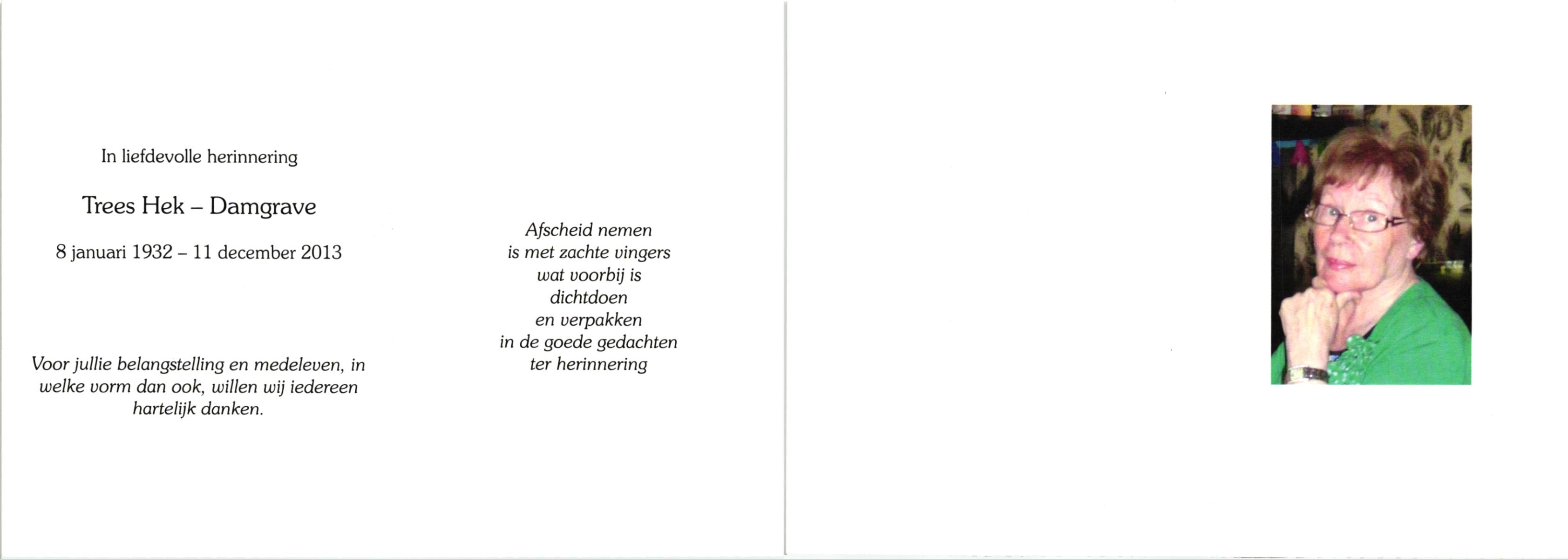DAMGRAVE, , Trees, geboren op 8-1-1932, overleden op 11-12-2013 op 81-jarige leeftijd.