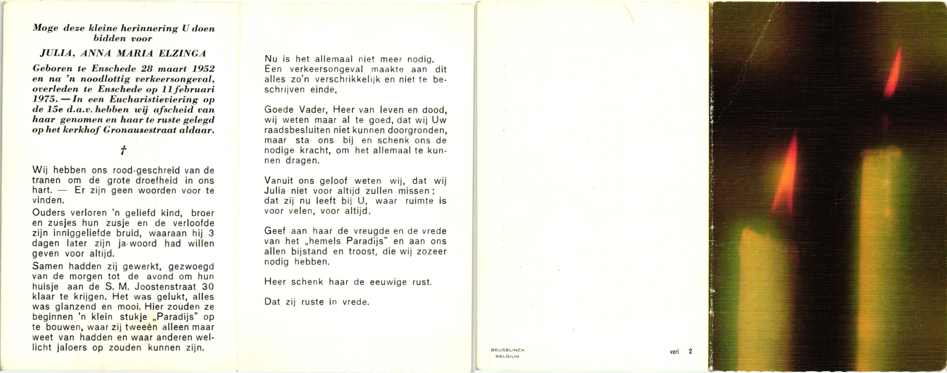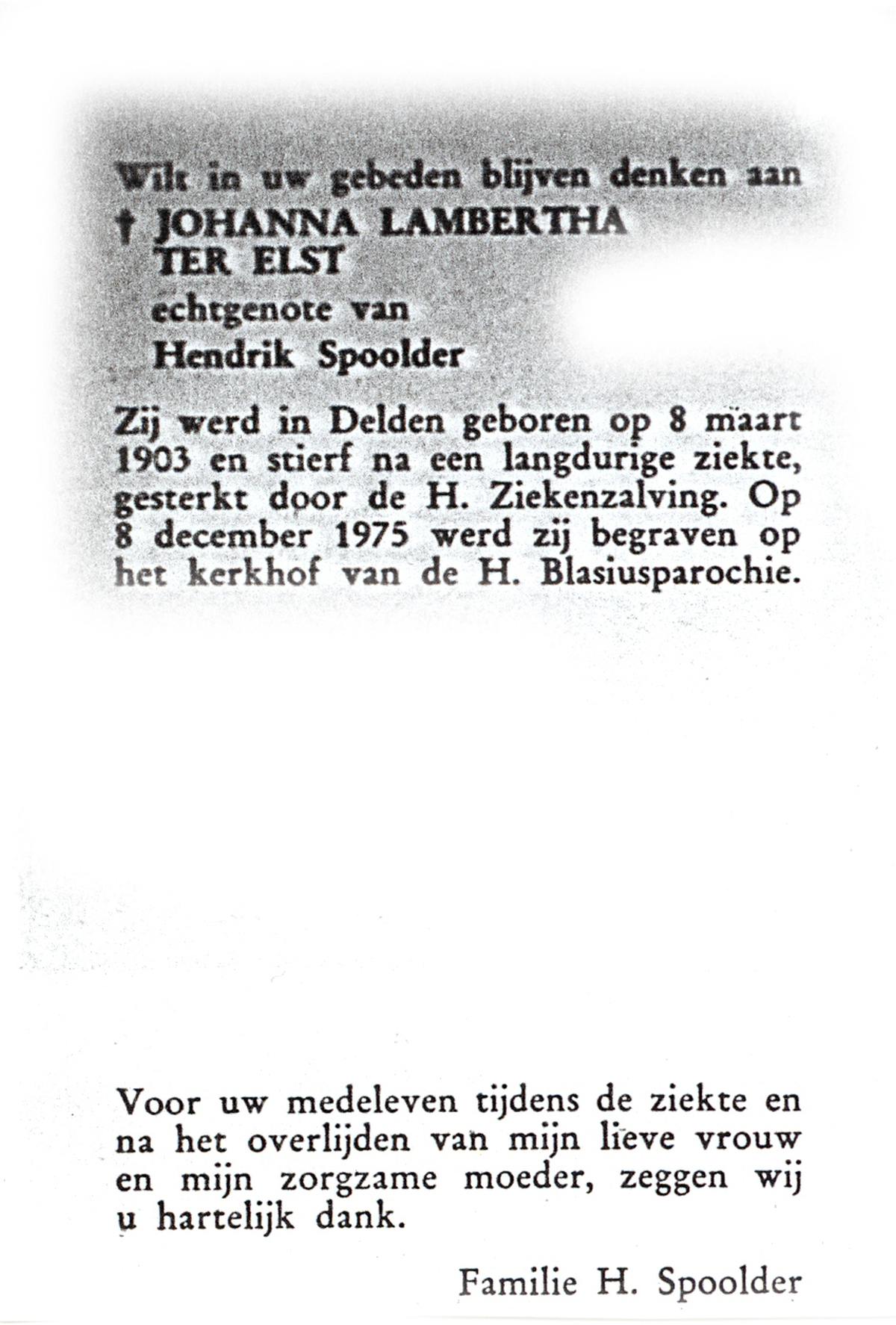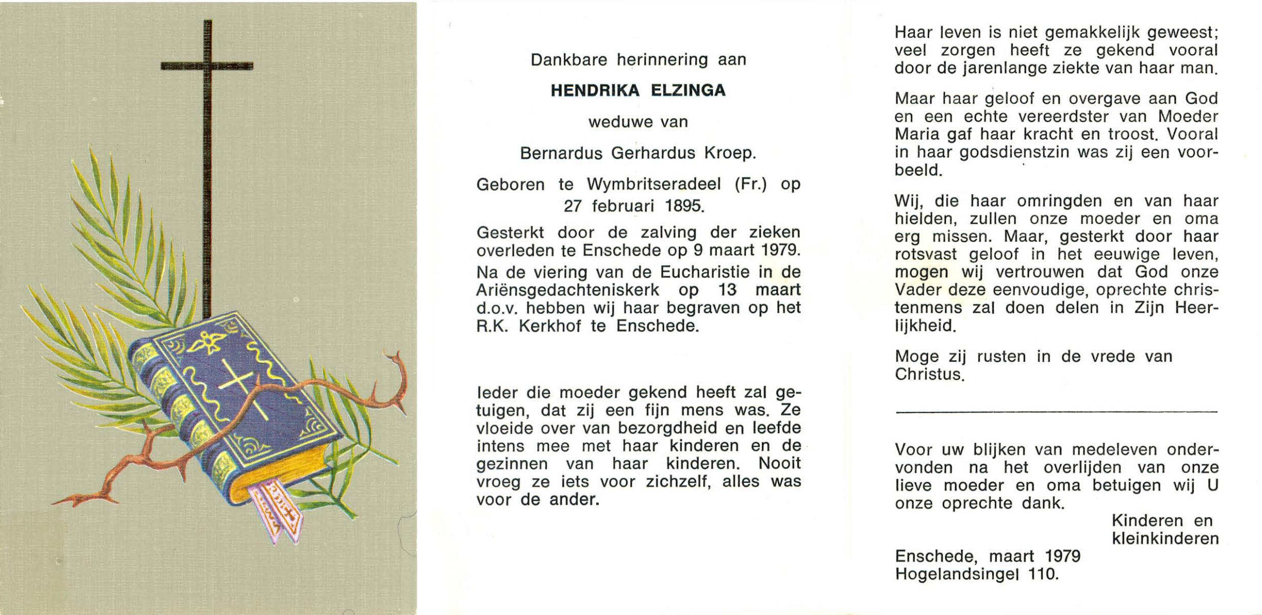 ELFERINK, Johanna Hendrika Engelbertha, geboren op 24-4-1934 te Zenderen, overleden op 9-1-1979 op 44-jarige leeftijd, begraven op 12-1-1979 te Zenderen.