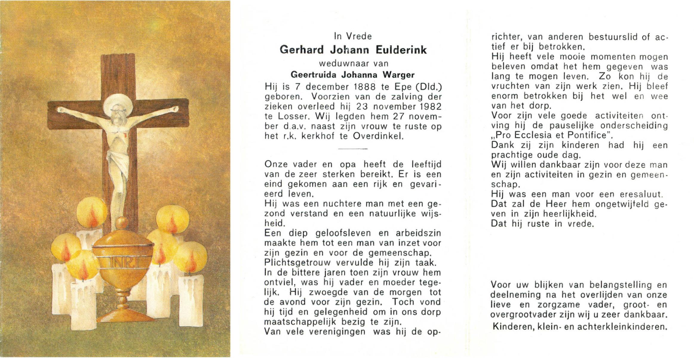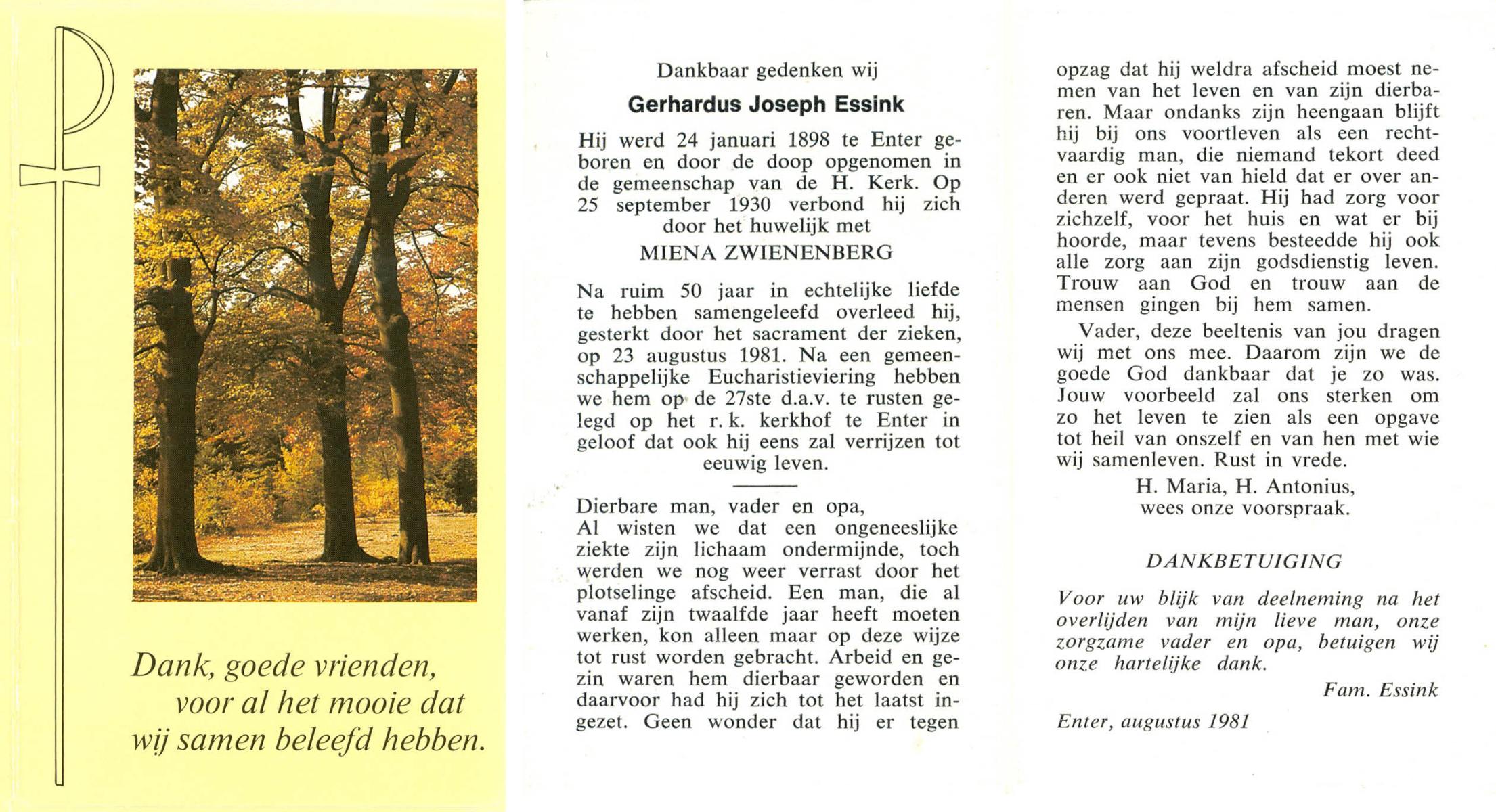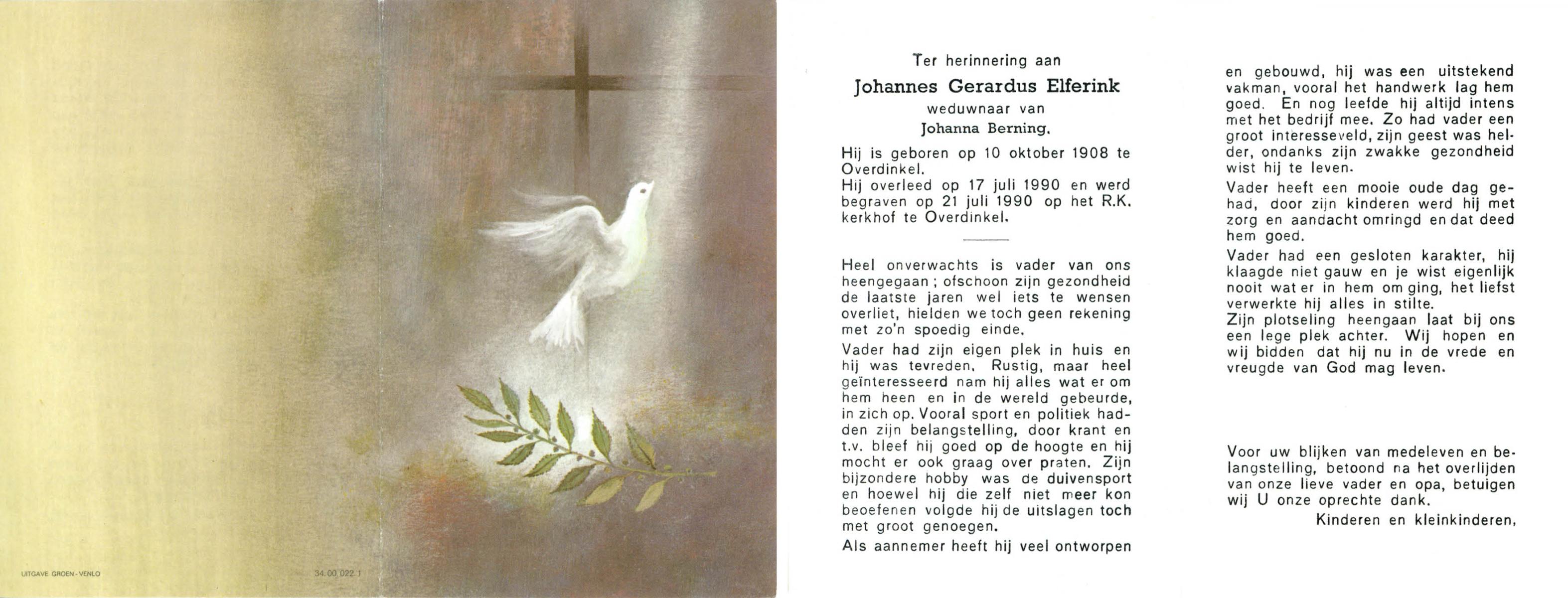 ELFERINK, Johannes Gerardus, geboren op 10-10-1908 te Overdinkel, overleden op 17-7-1990 op 81-jarige leeftijd, begraven op 21-7-1990 te Overdinkel.
