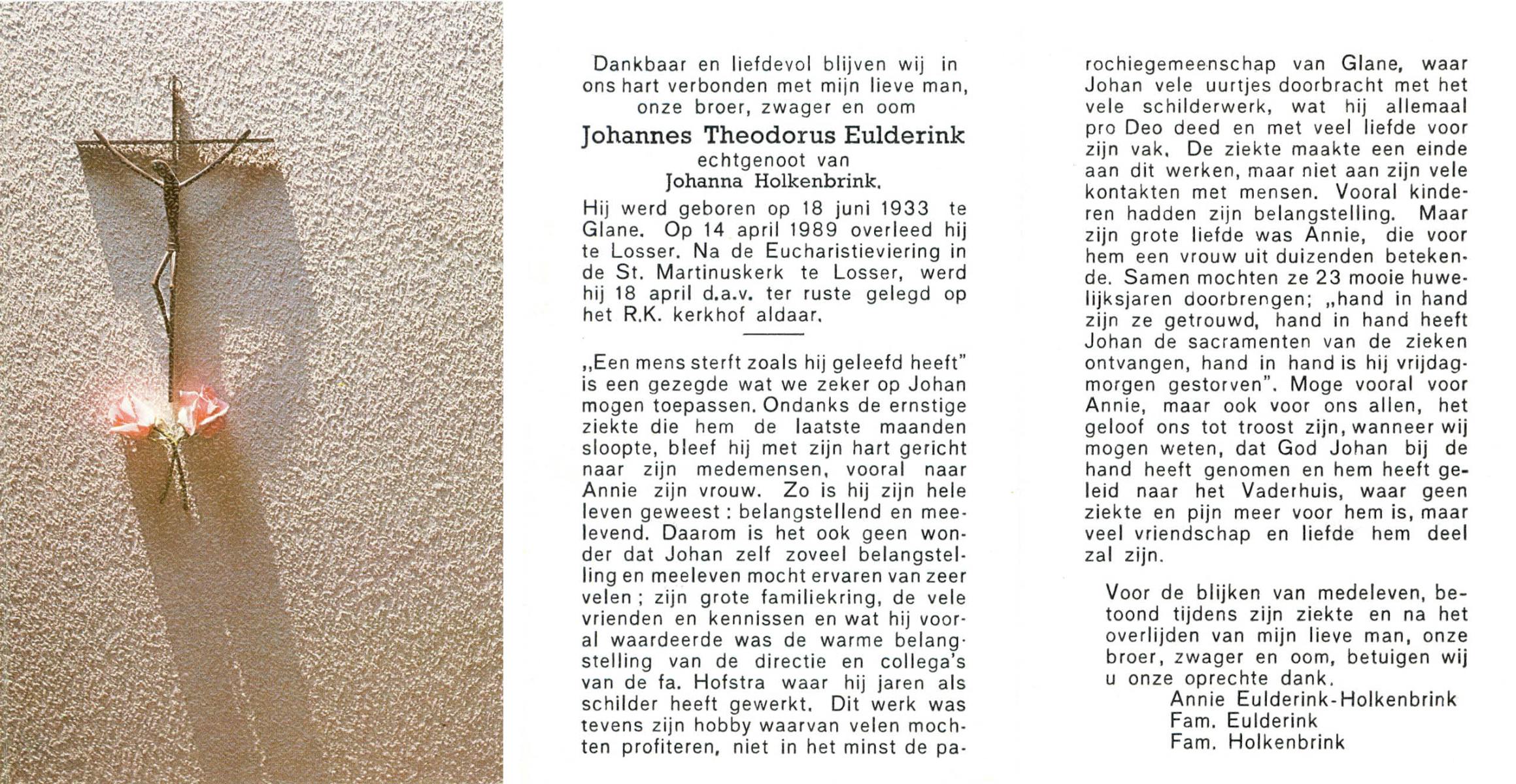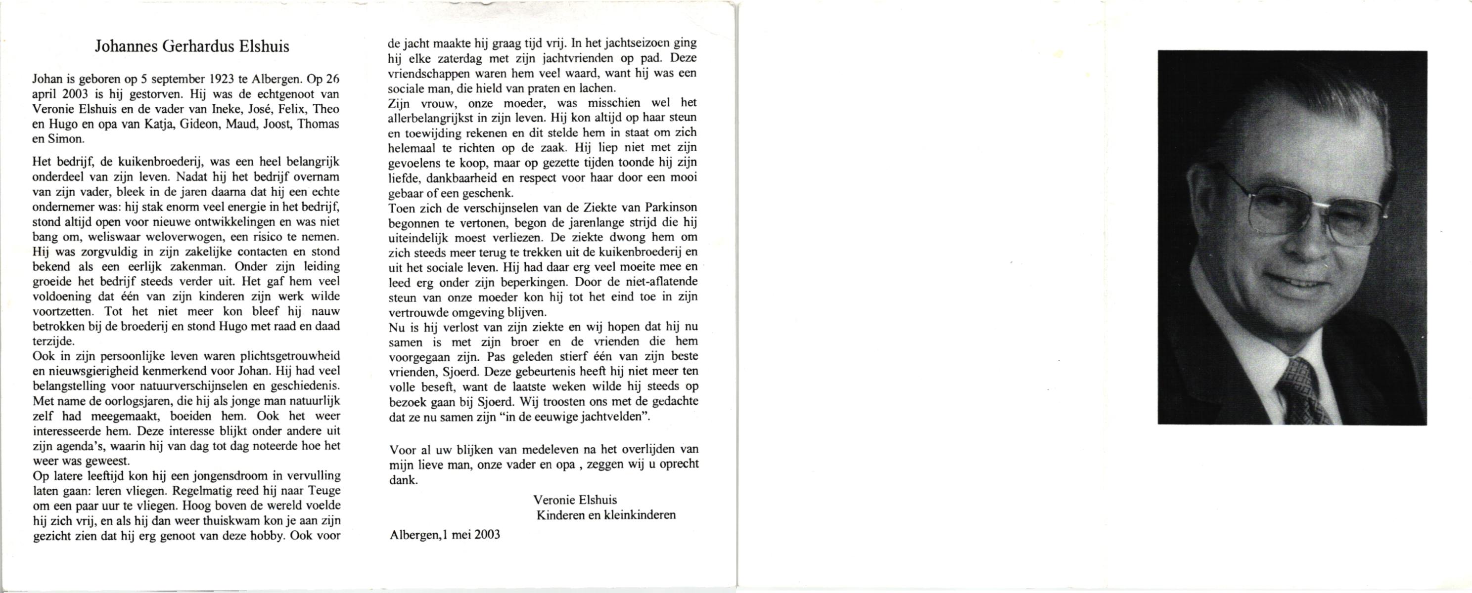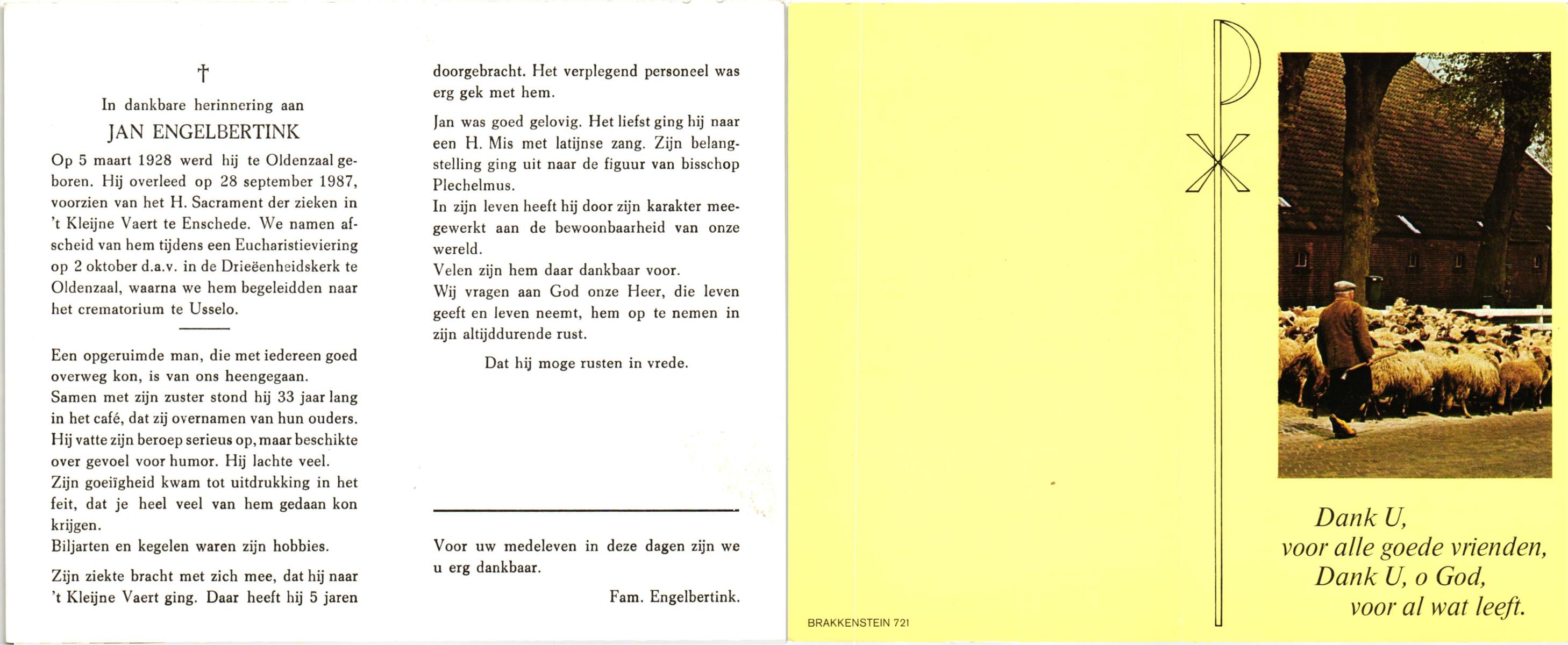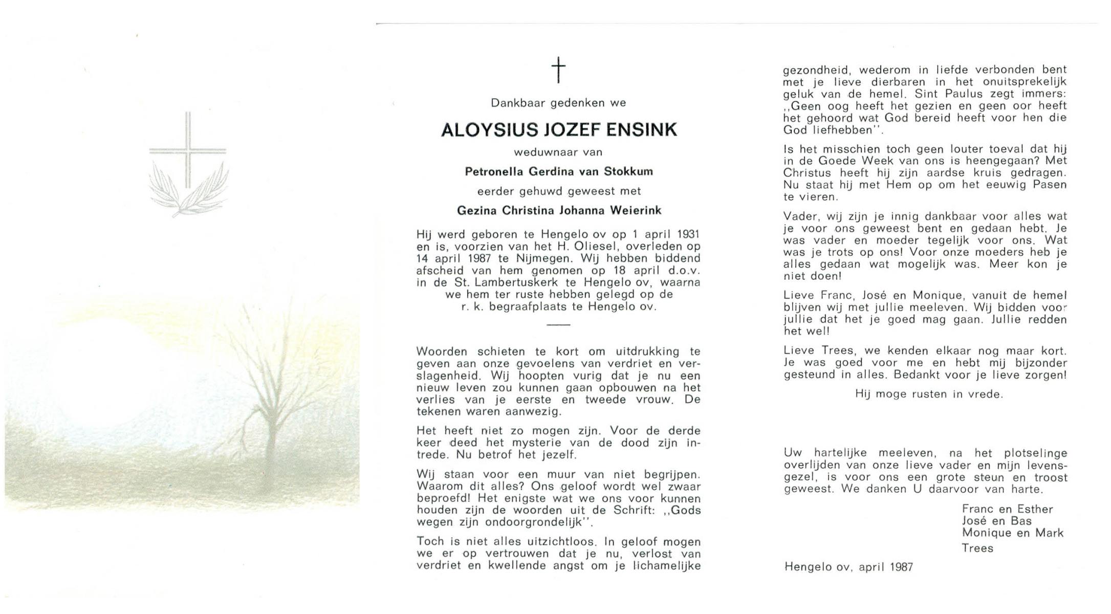 ELFERINK, Johannes Hendrikus, geboren op 14-12-1912 te Losser, overleden op 3-2-1987 te Enschede op 74-jarige leeftijd, begraven op 7-2-1987 te Losser.