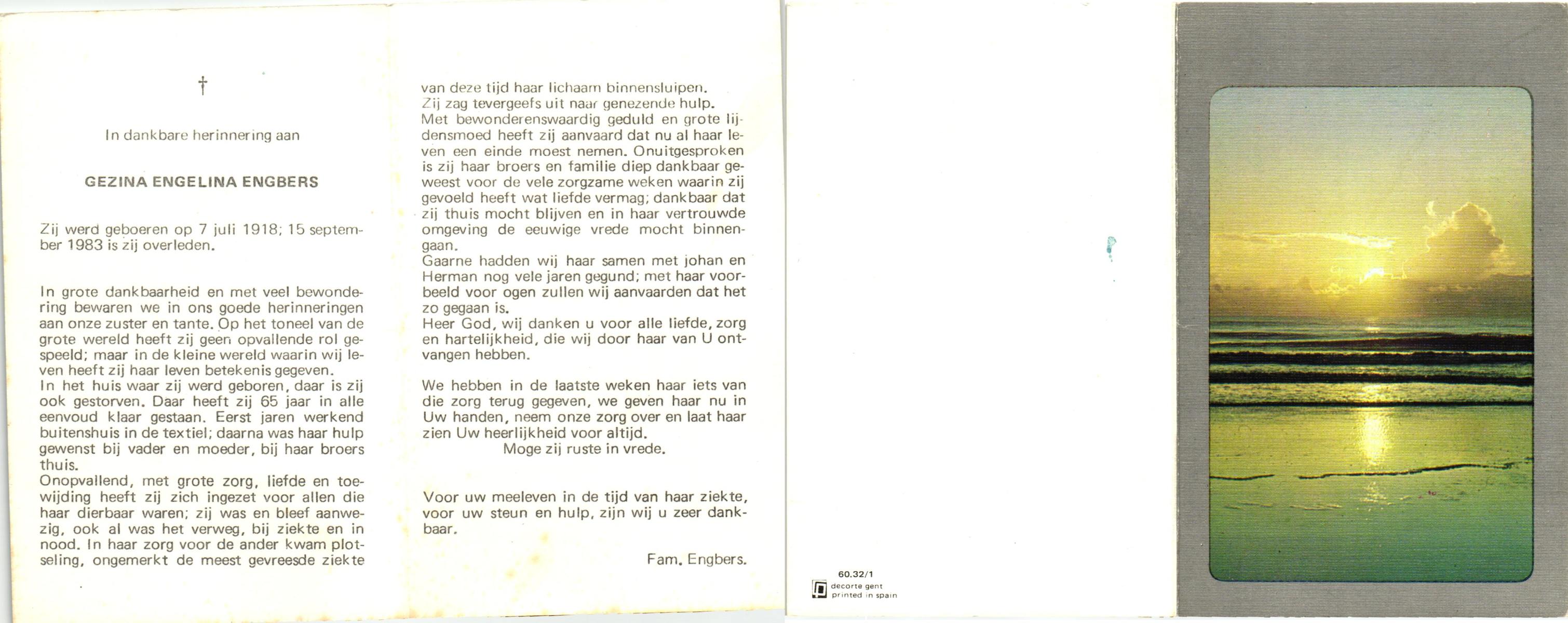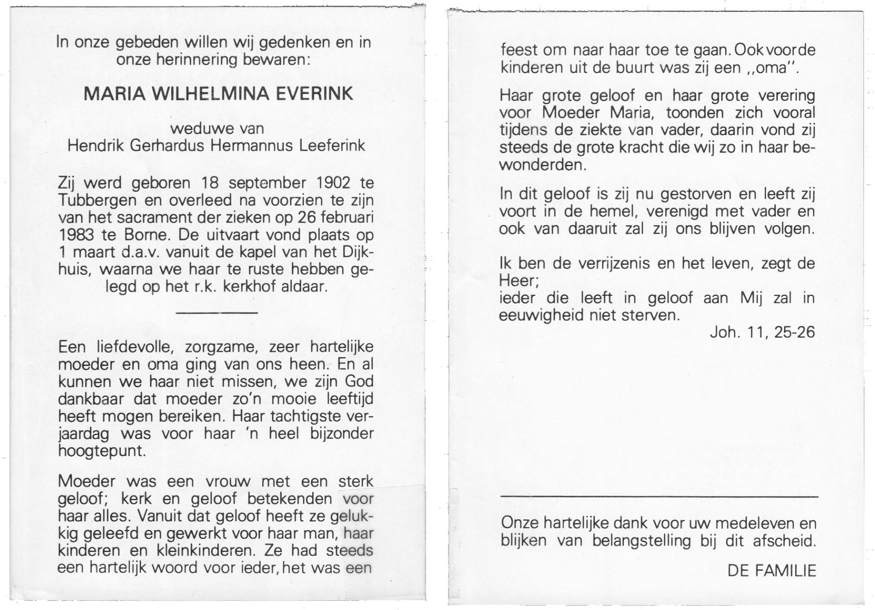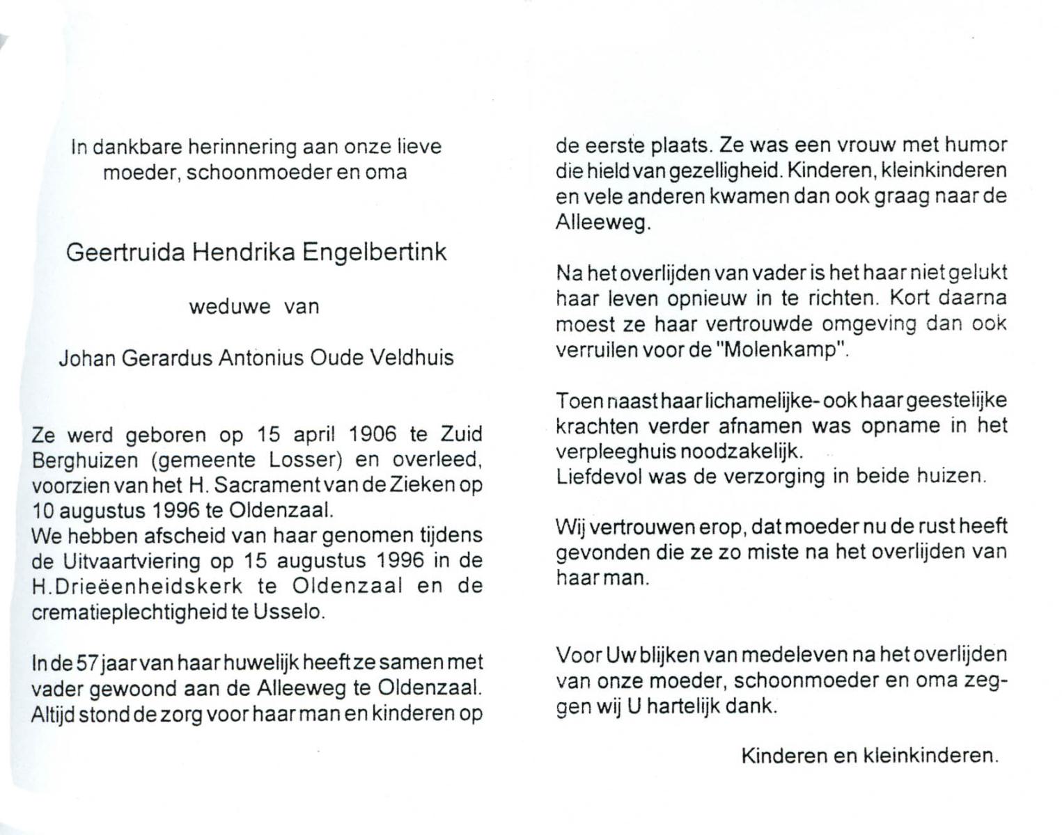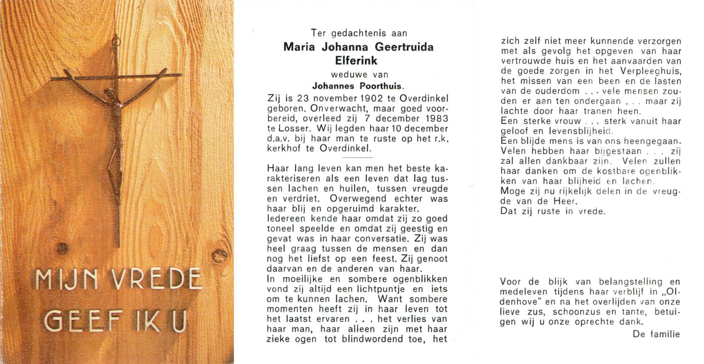 ELFERINK, Maria Johanna Geertruida, geboren op 23-11-1902 te Overdinkel, overleden op 7-12-1983 te Losser op 81-jarige leeftijd, begraven op 10-12-1983 te Overdinkel.