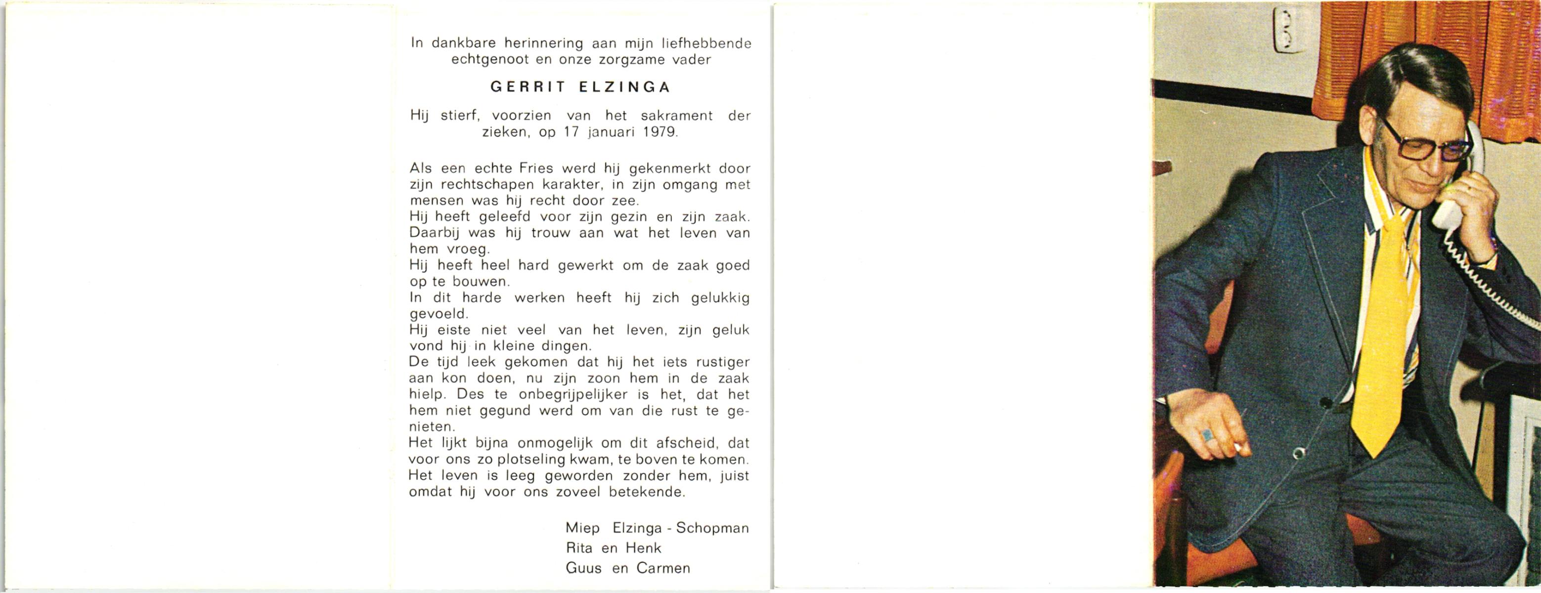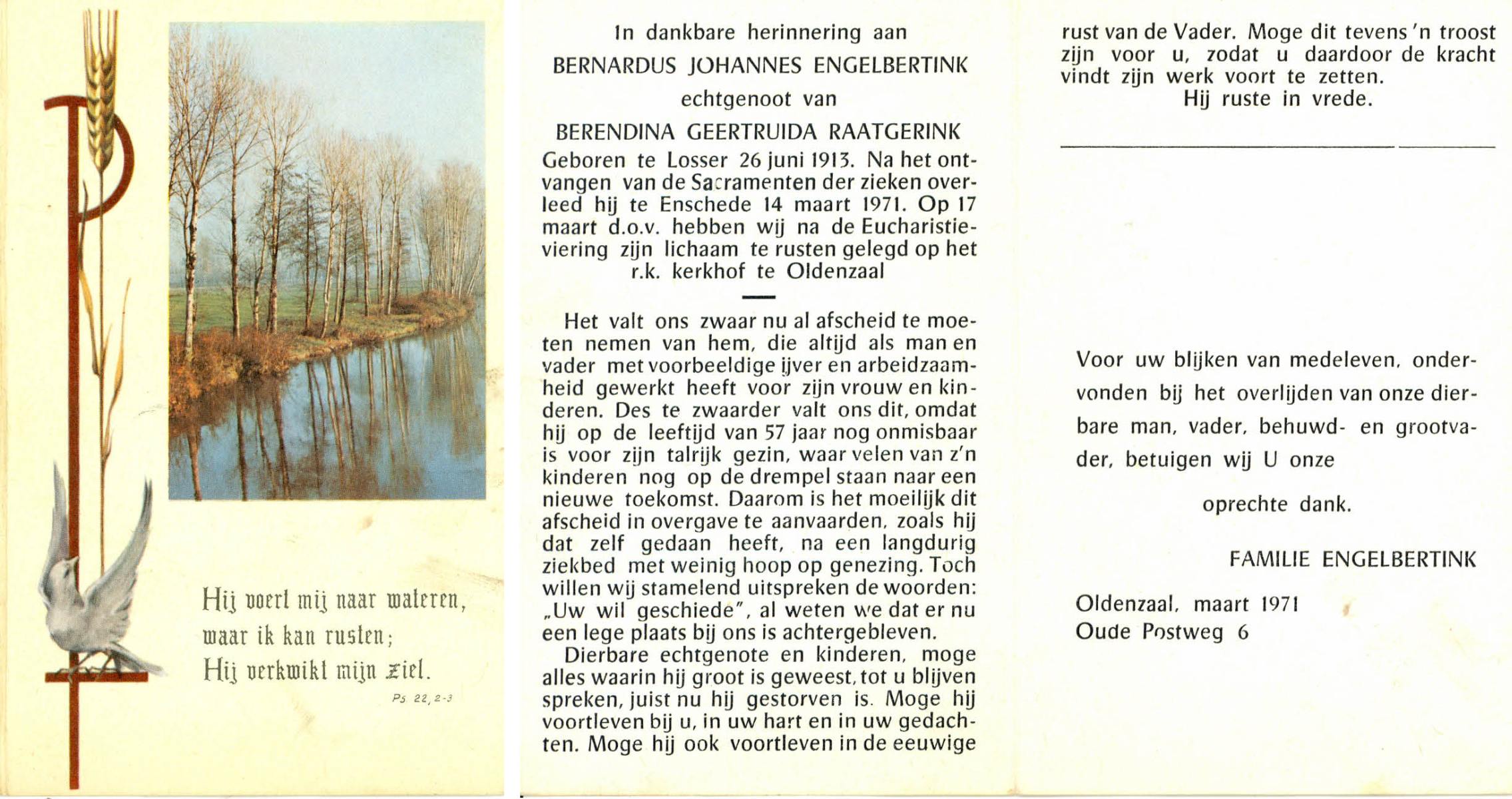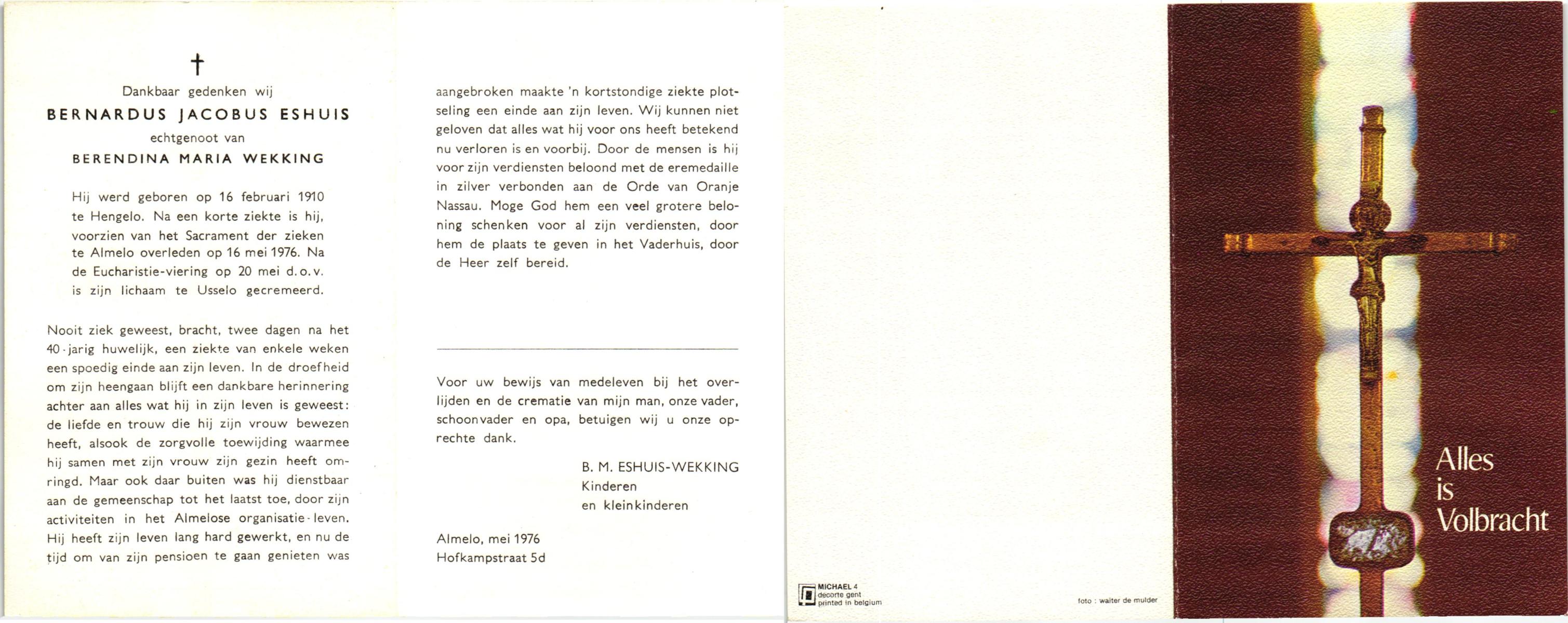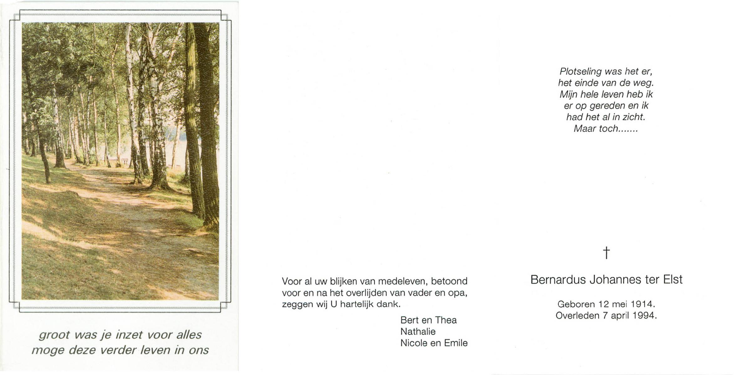 ELFRINK, Bernardus Thomas, geboren op 6-10-1906 te Lichtenvoorde, overleden op 11-11-1979 te Losser op 73-jarige leeftijd, begraven op 15-11-1979 te Losser.