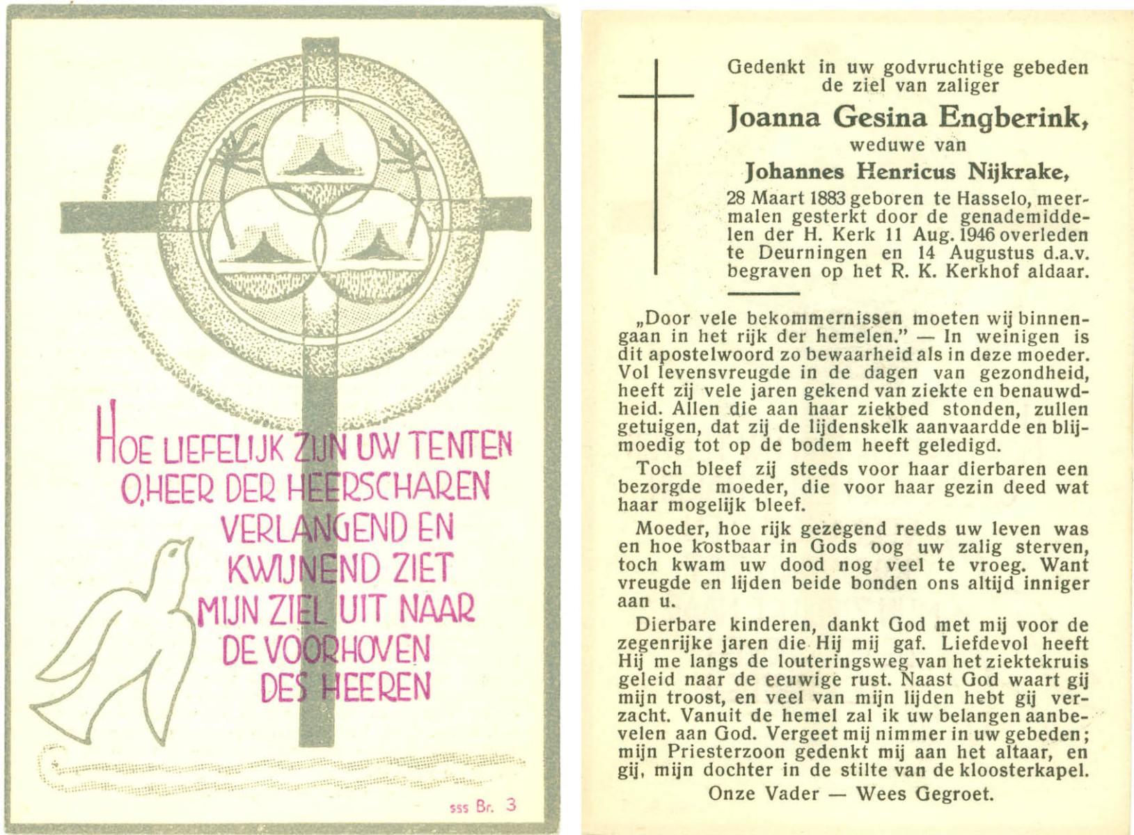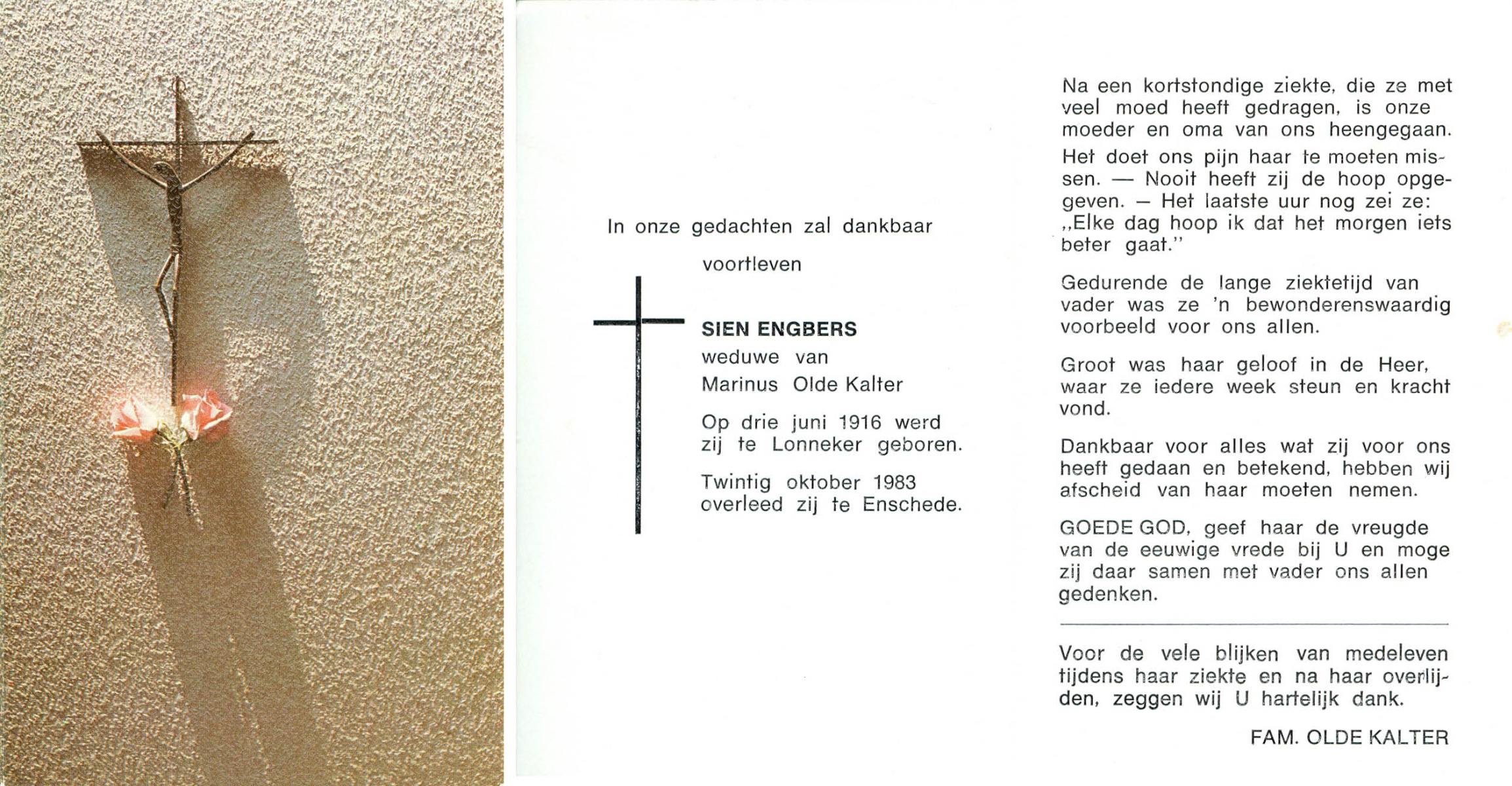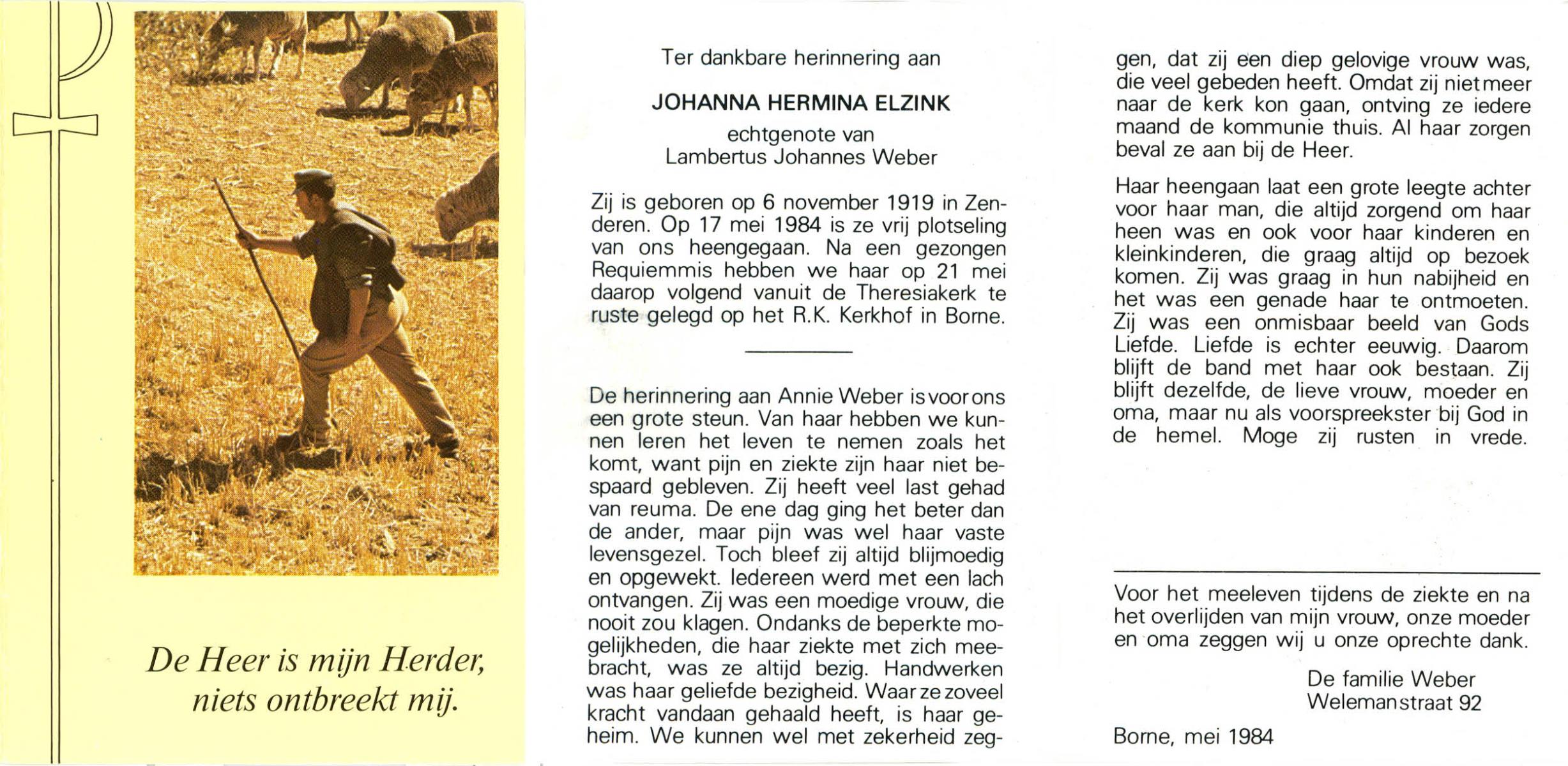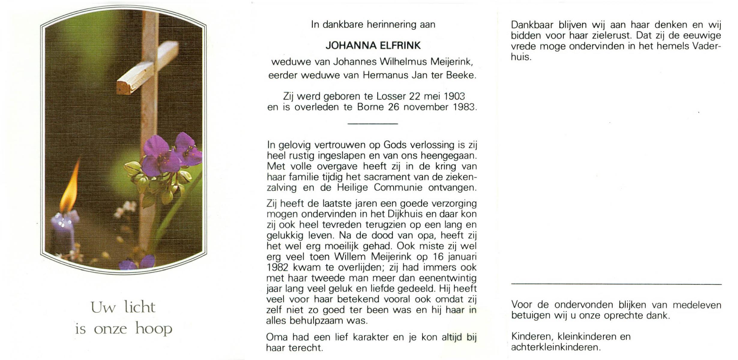 ELFRINK, Johanna, geboren op 22-5-1903 te Losser, overleden op 26-11-1983 te Borne op 80-jarige leeftijd.