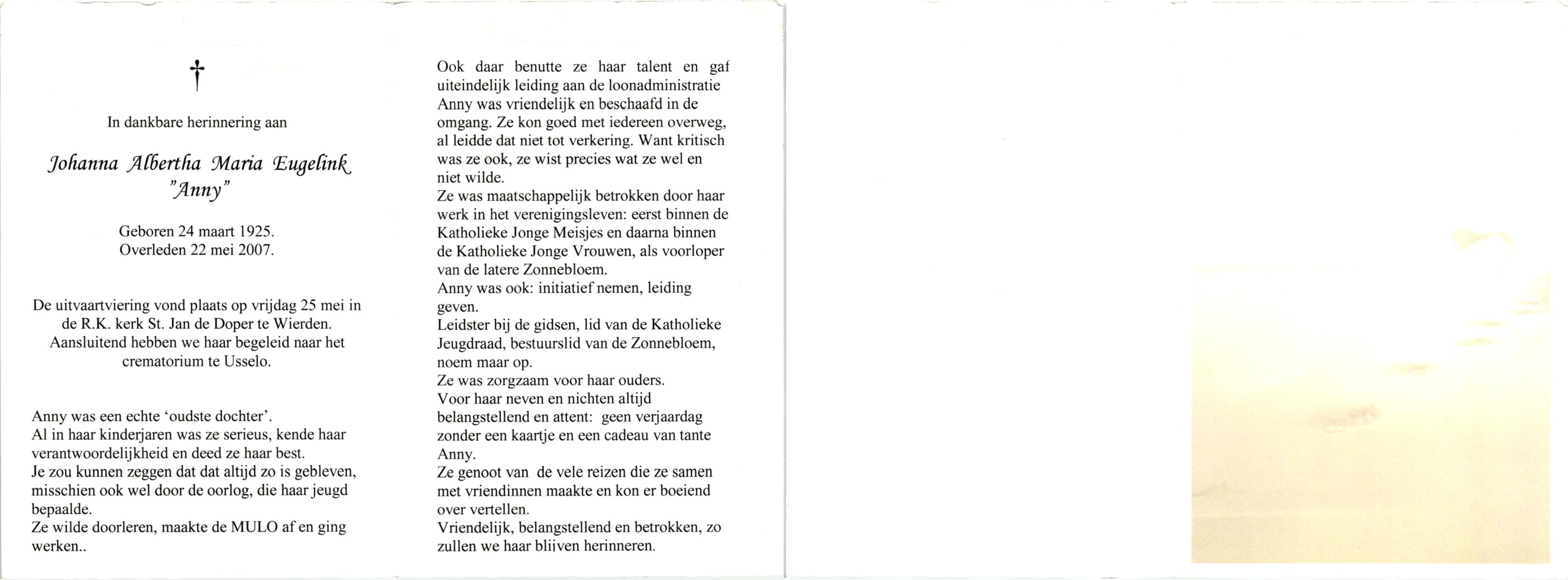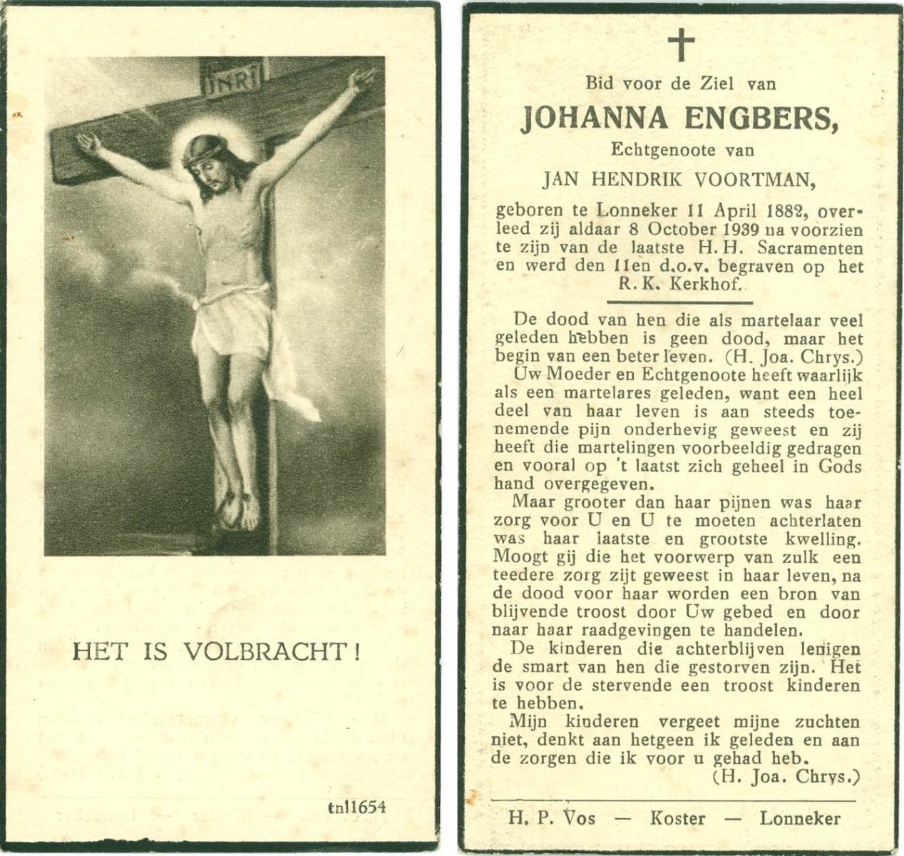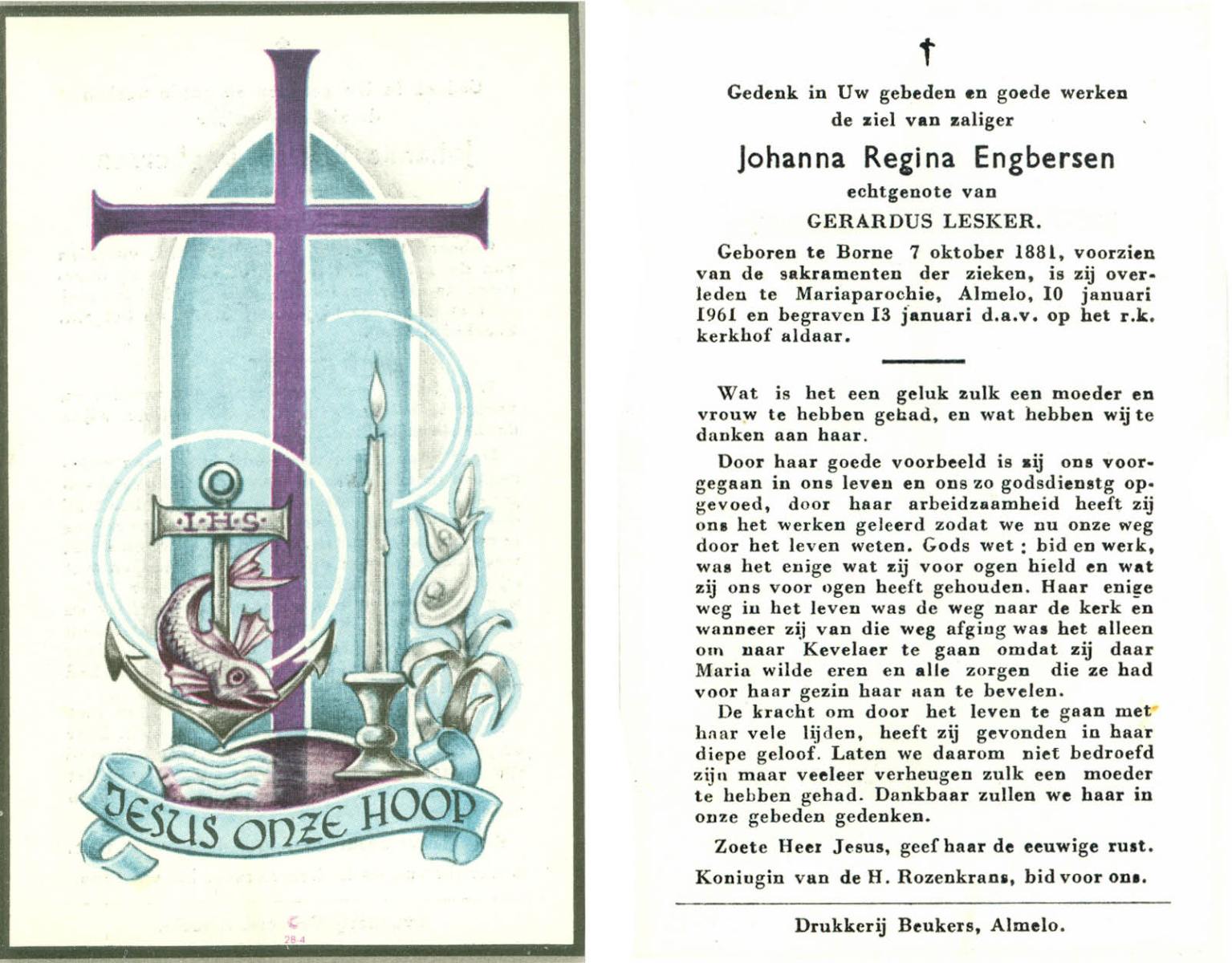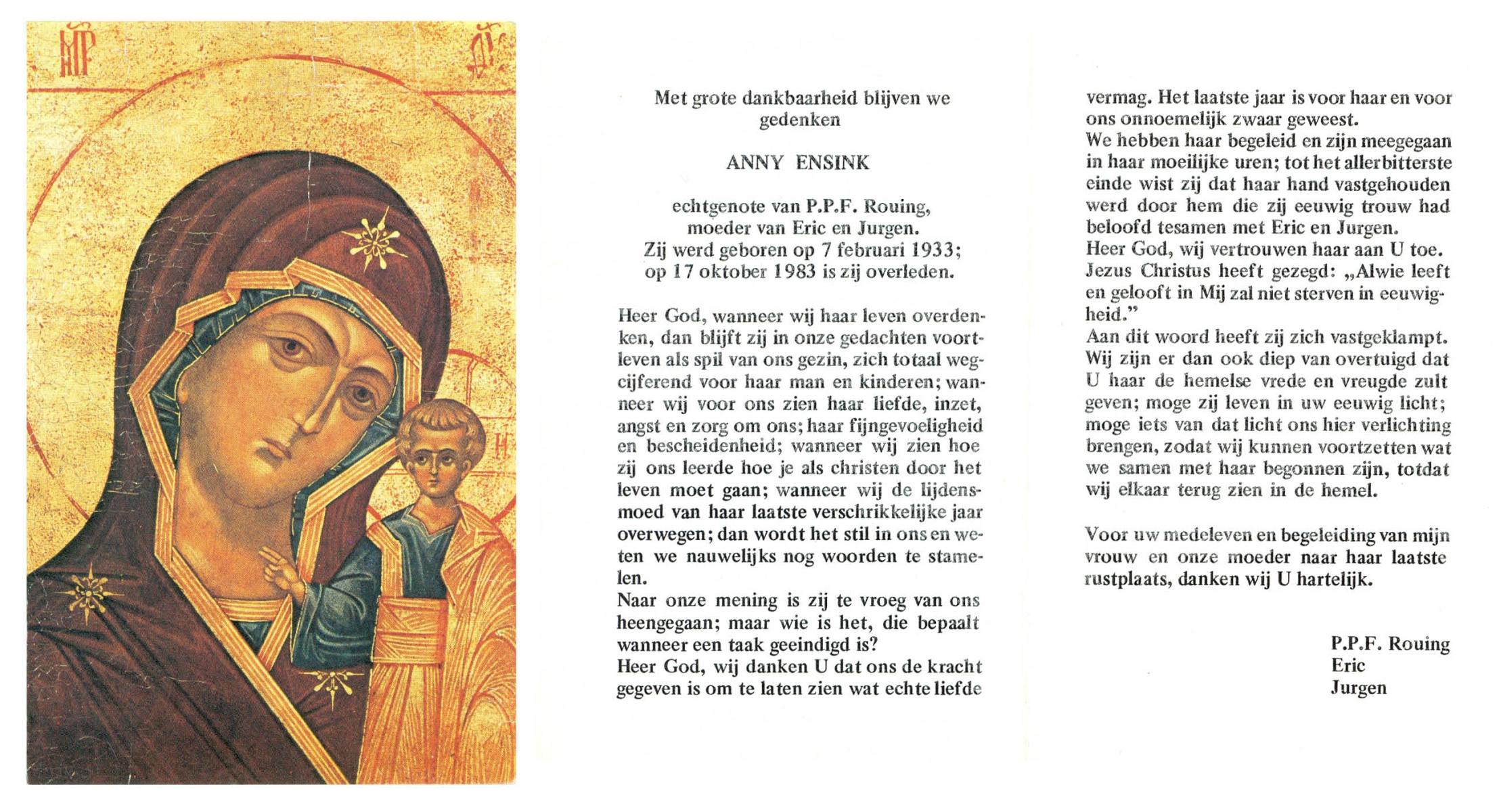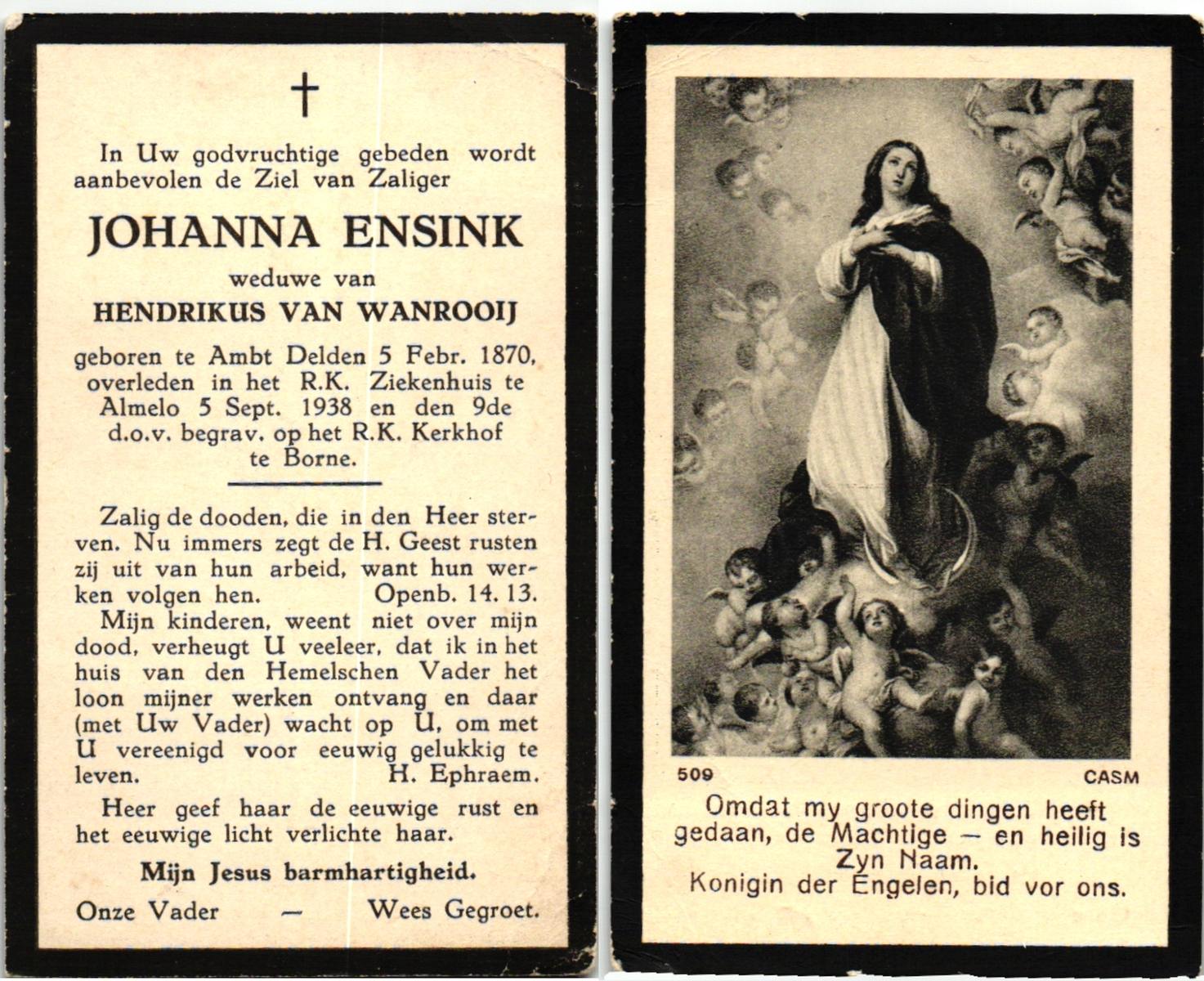 ELFRINK, Johanna, geboren op 22-5-1903 te Losser, overleden op 26-11-1983 te Borne op 80-jarige leeftijd.