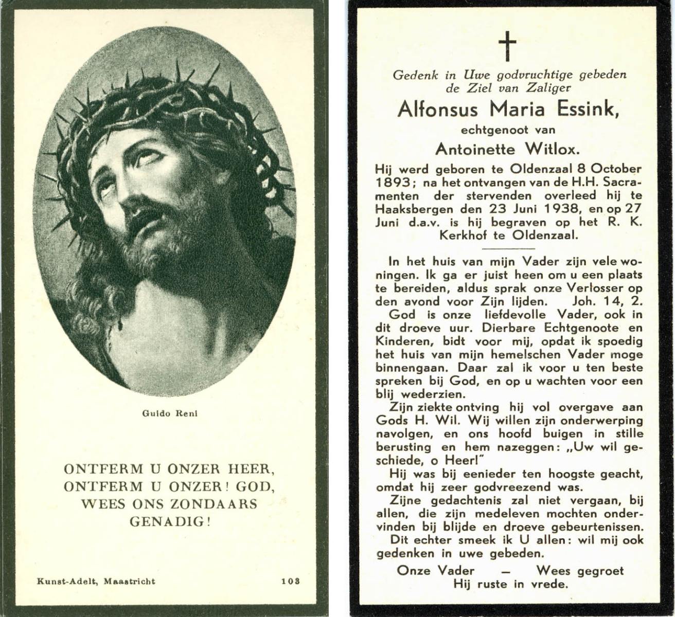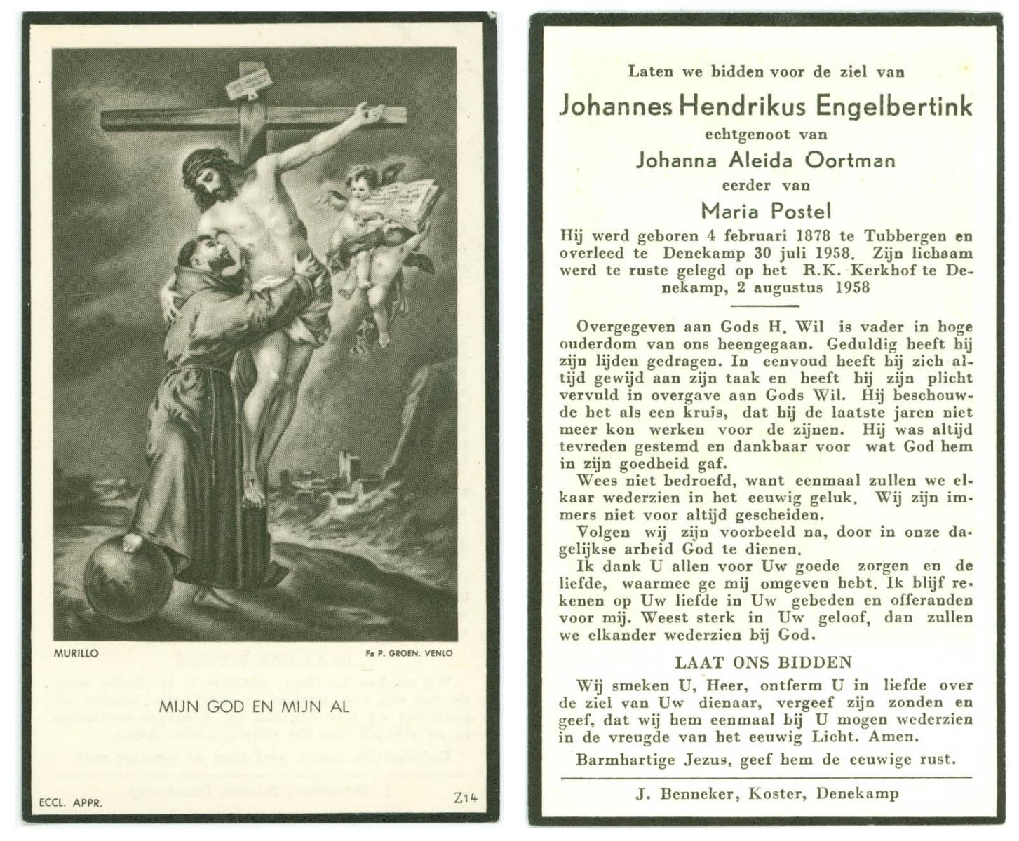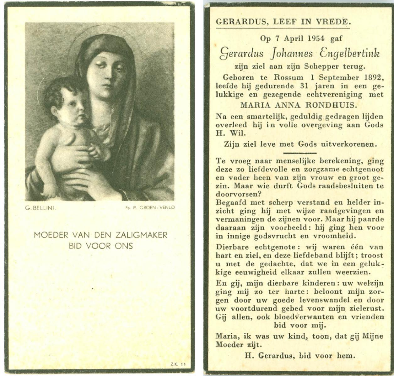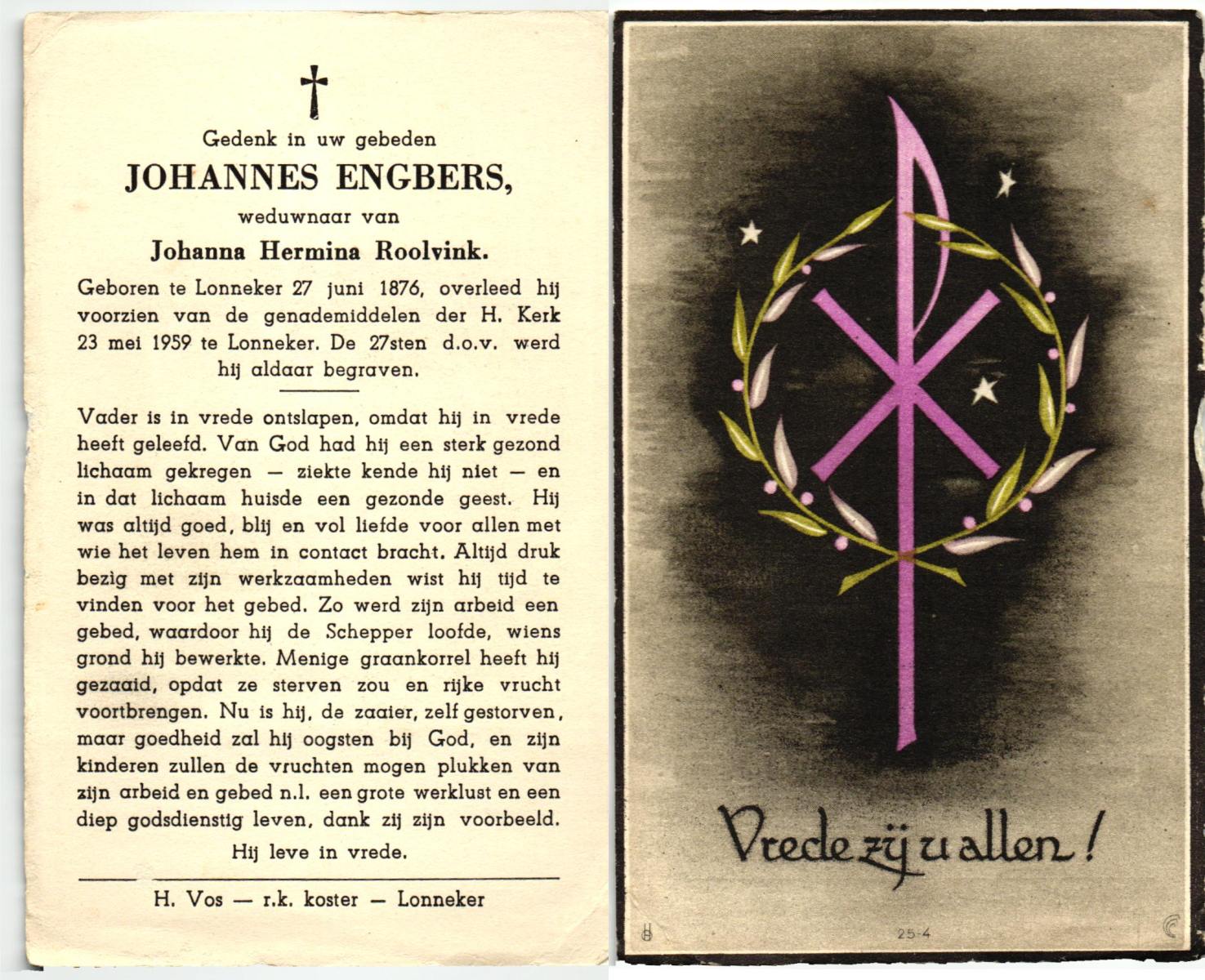 ELFRINK, Johannes, geboren op 30-10-1898 te Losser, overleden op 11-4-1954 te Glane op 55-jarige leeftijd, begraven op 14-4-1954 te Losser.