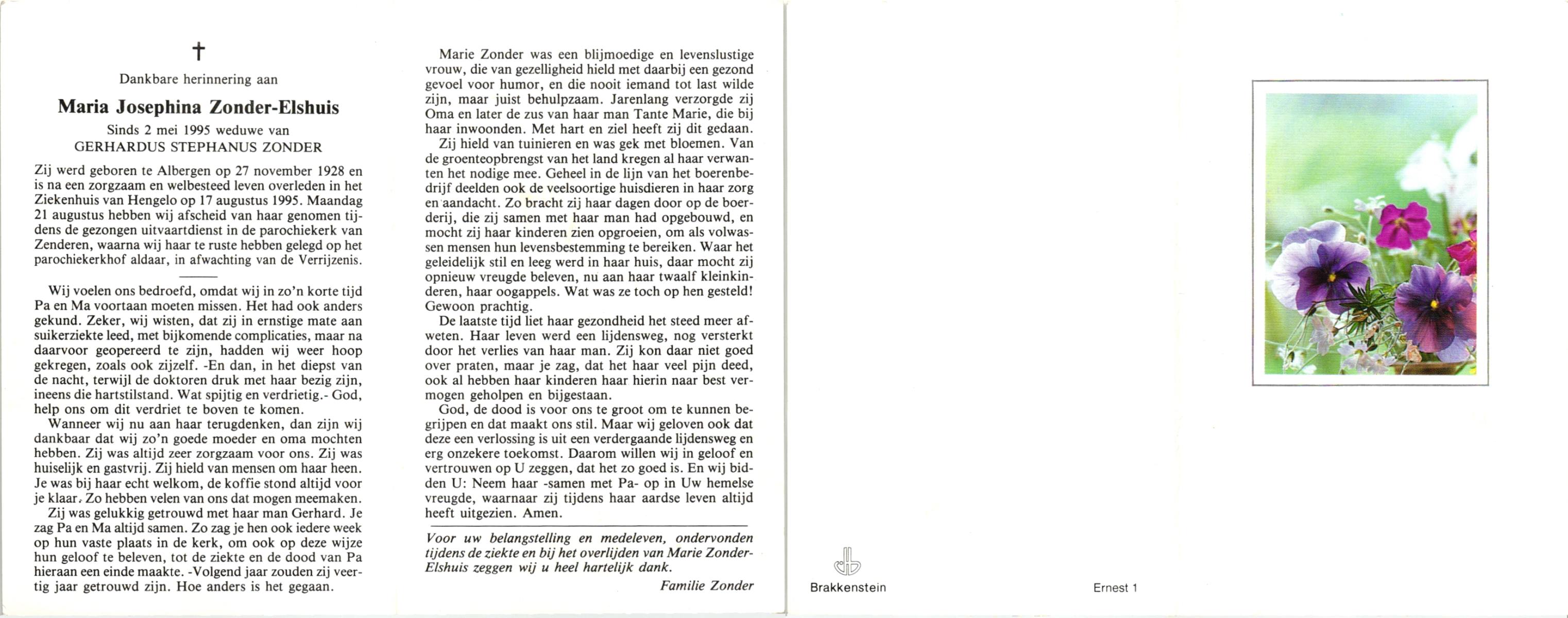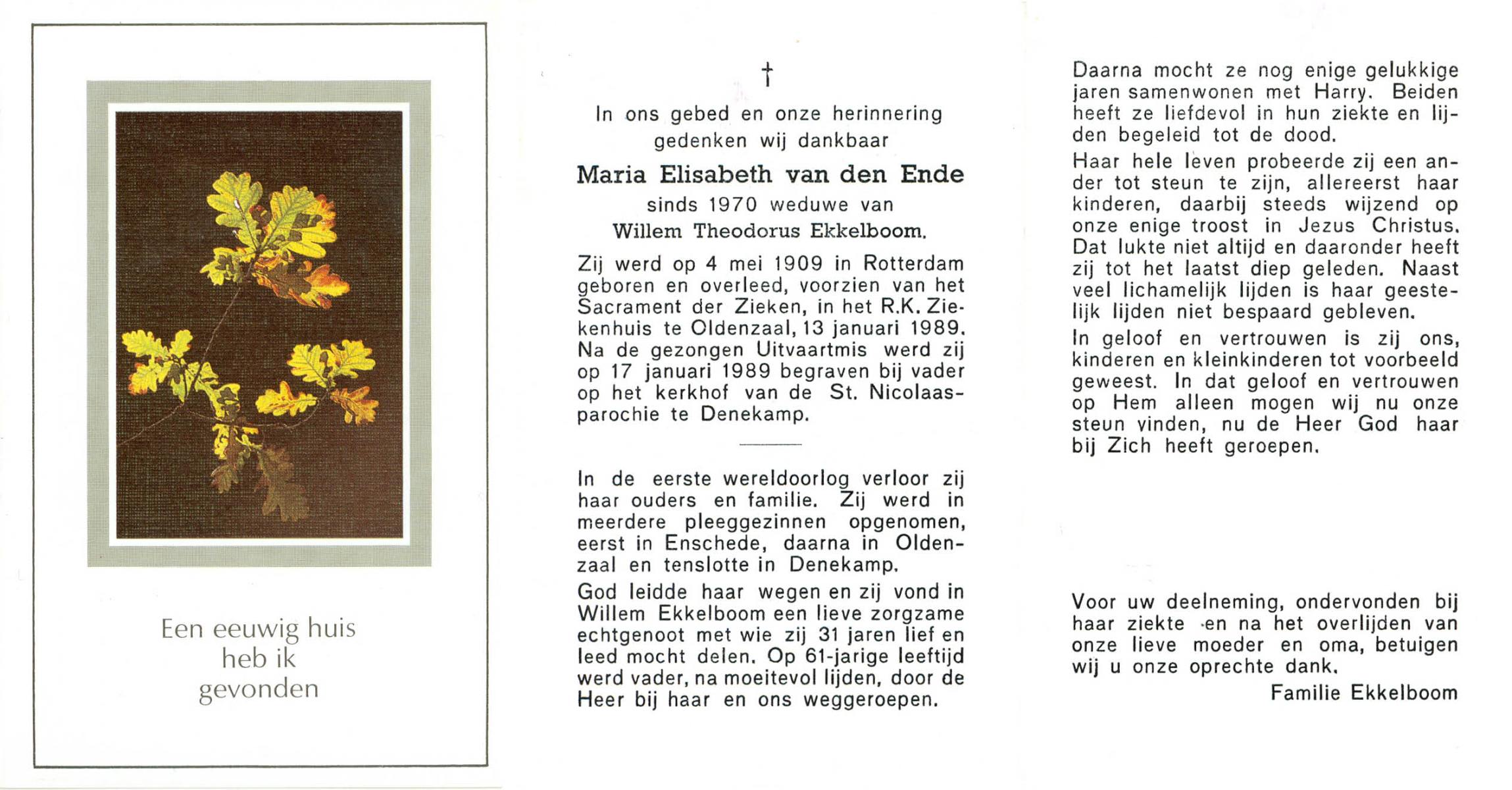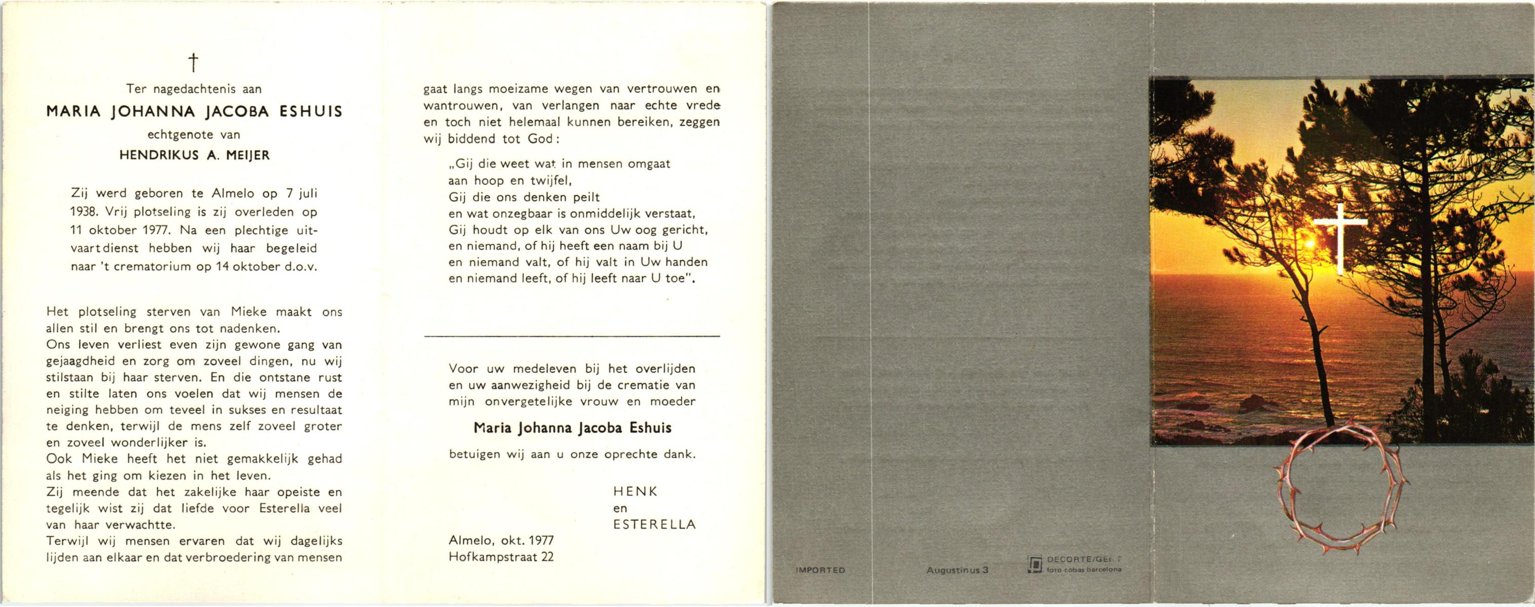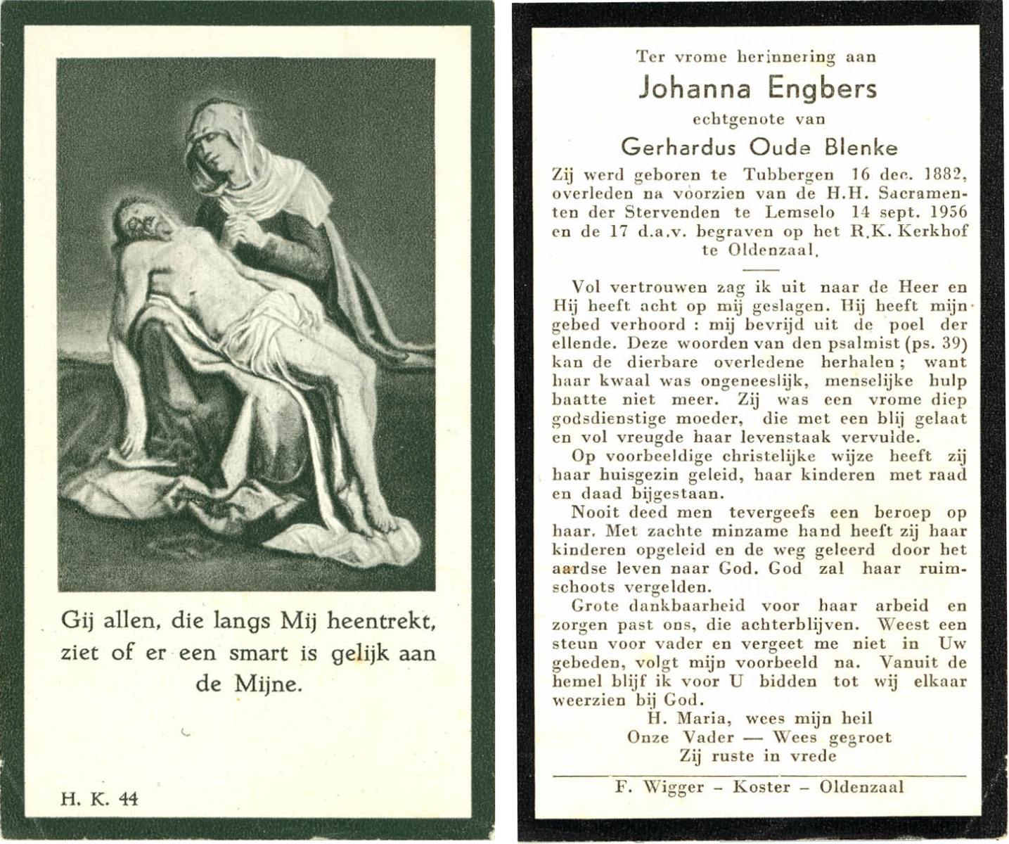 ELHORST, Maria Geertruida, geboren op 12-08-1886 te Zenderen, overleden op 14-8-1971 te Almelo op 85-jarige leeftijd, begraven op 18-8-1971 te Zenderen.