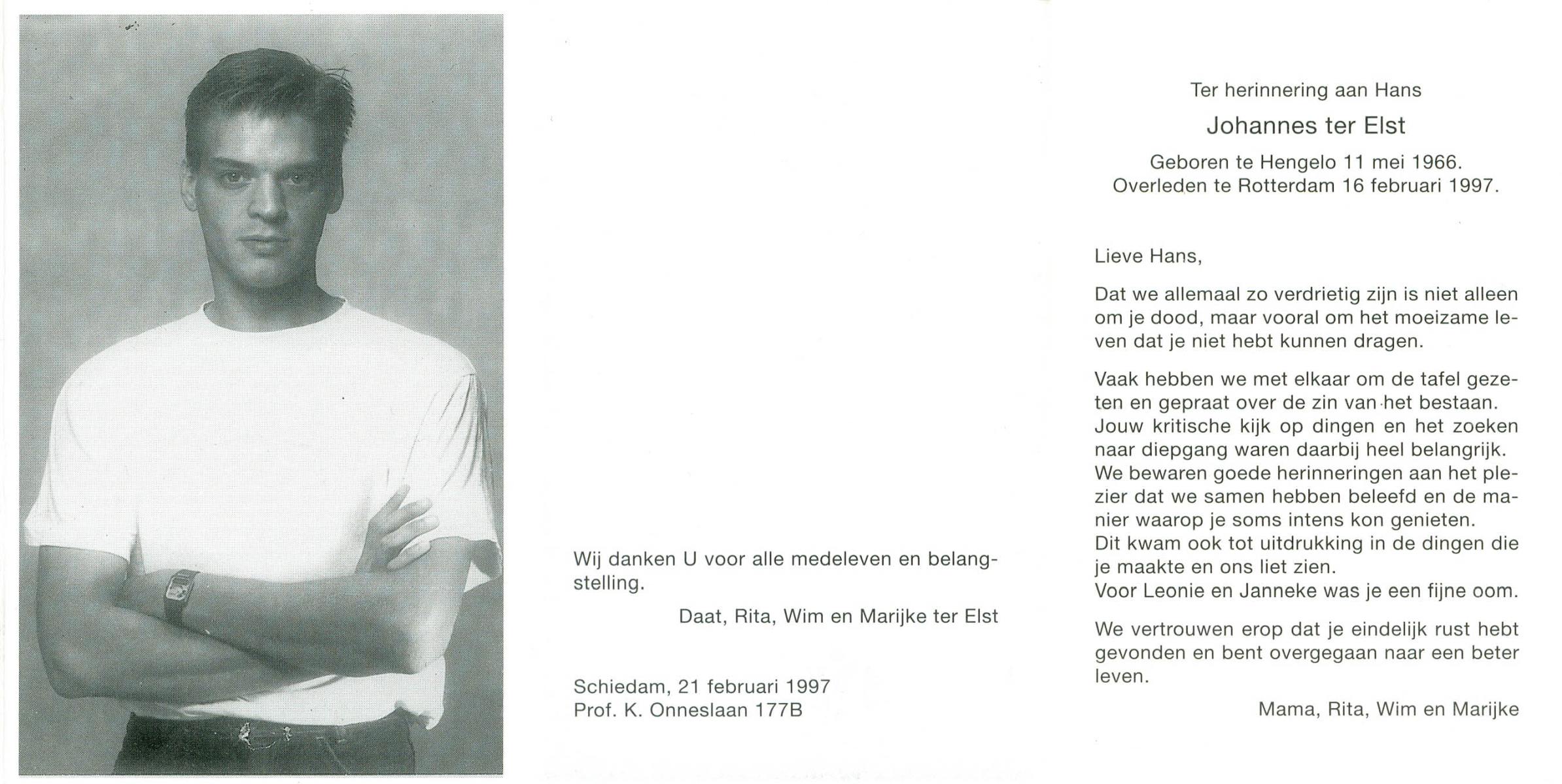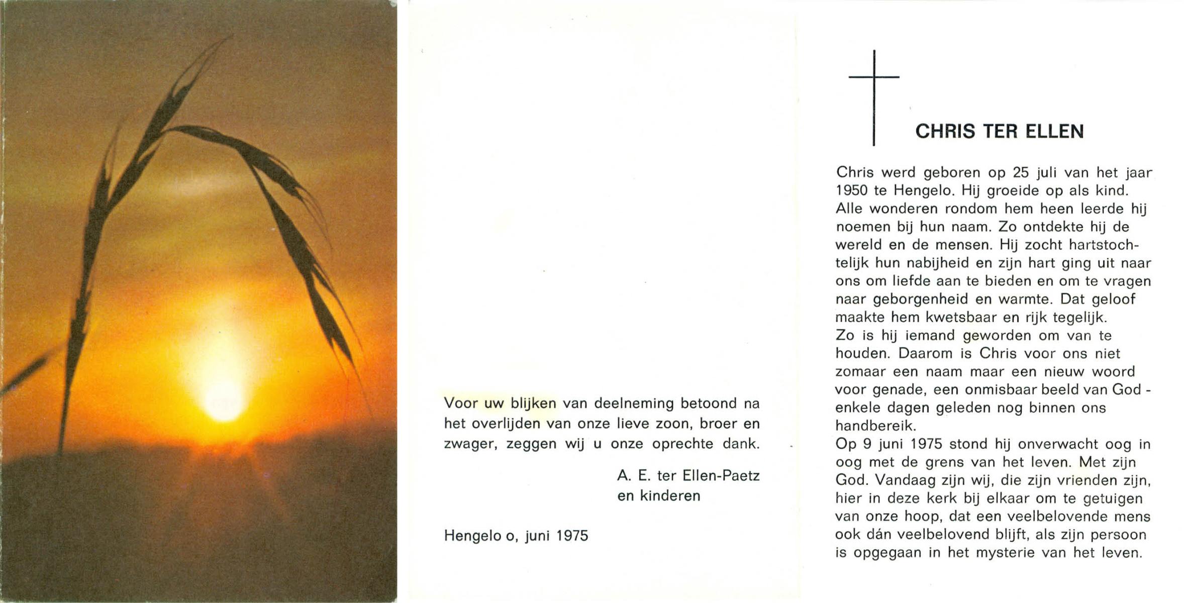 ELLEN, ter, Chris, geboren op 25-7-1950 te Hengelo (O), overleden op 9-6-1975 op 24-jarige leeftijd.