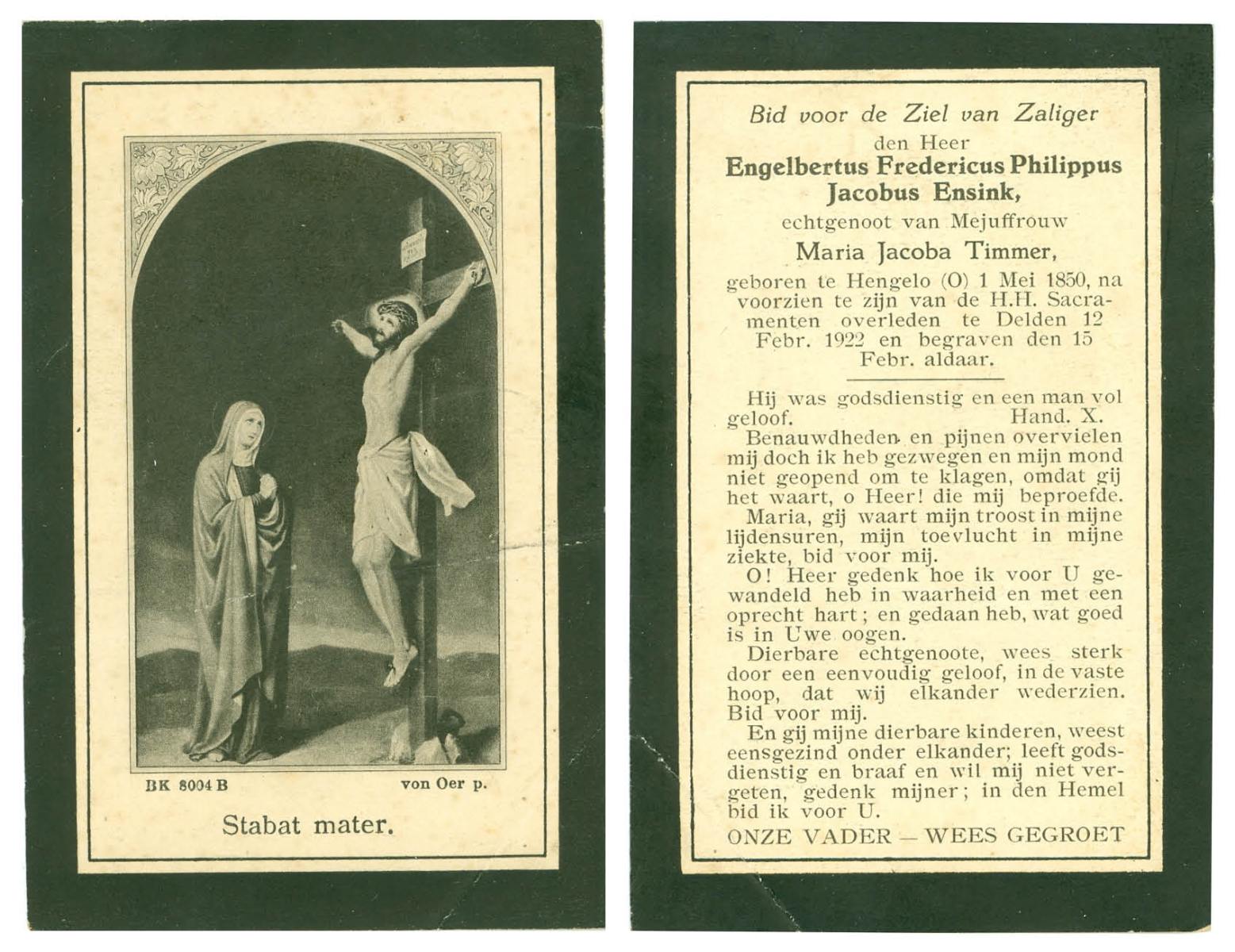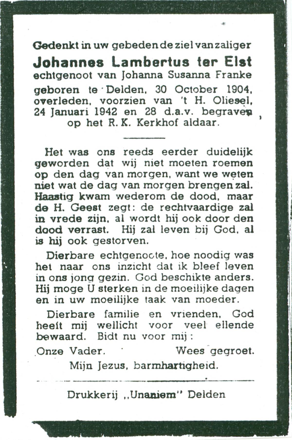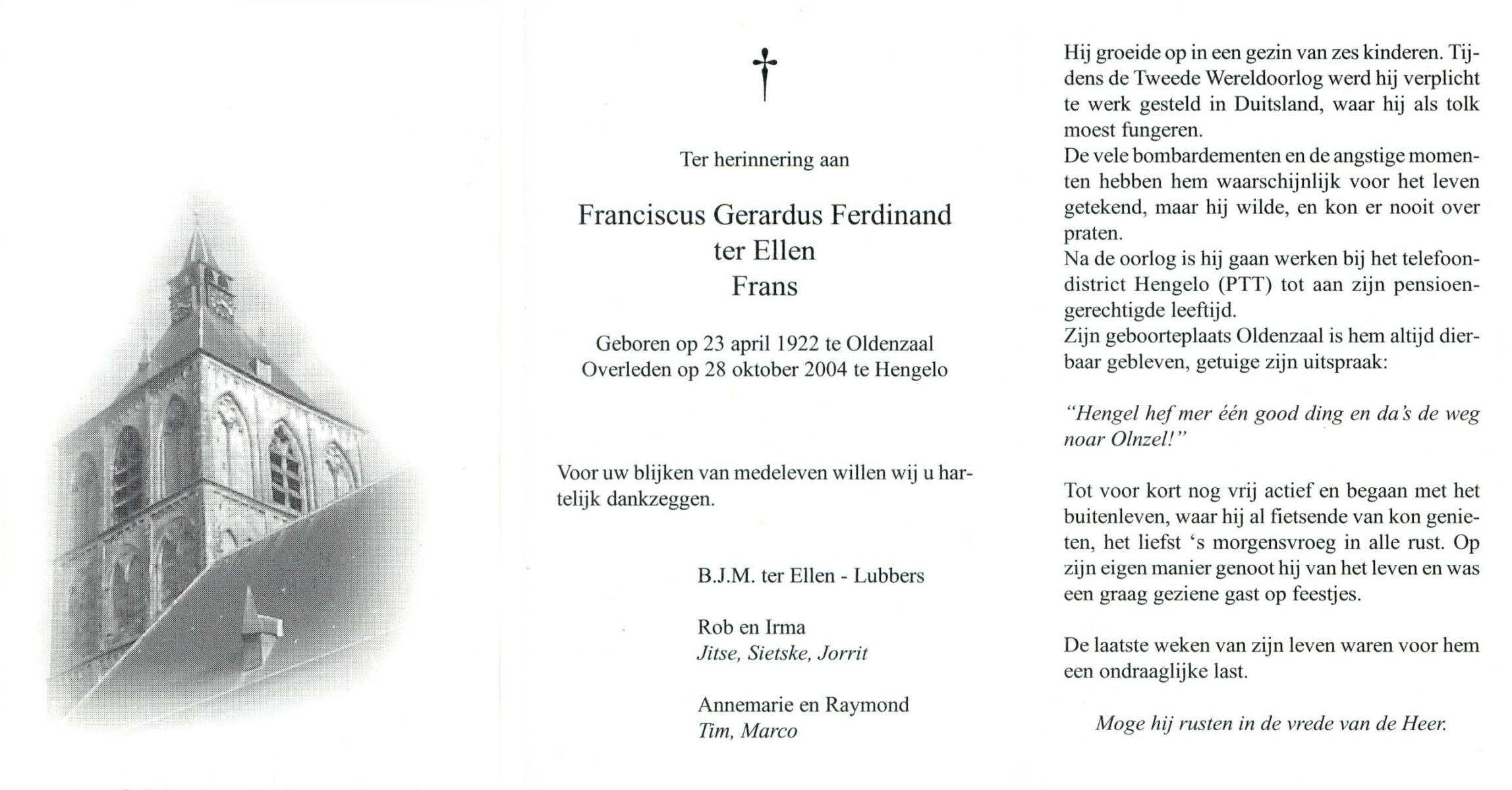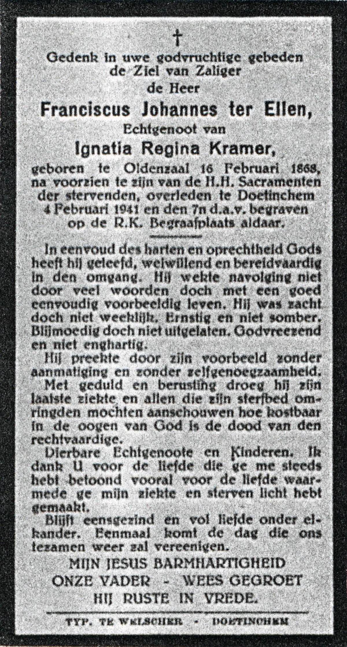 ELLEN, ter, Franciscus Johannes, geboren op 16-02-1868 te Oldenzaal, overleden op 4-2-1941 te Doetinchem op 72-jarige leeftijd, begraven op 7-2-1941 te Doetinchem.