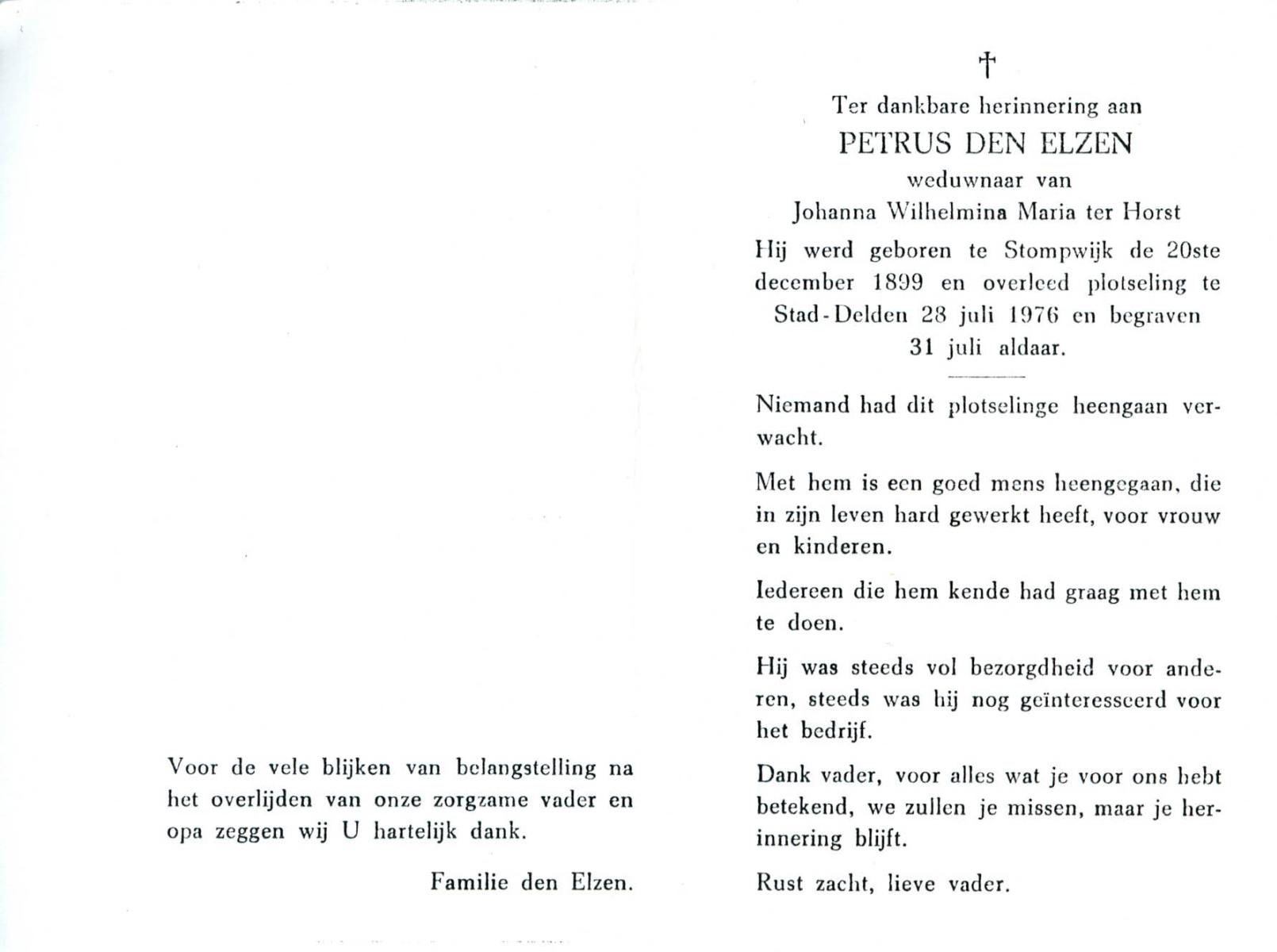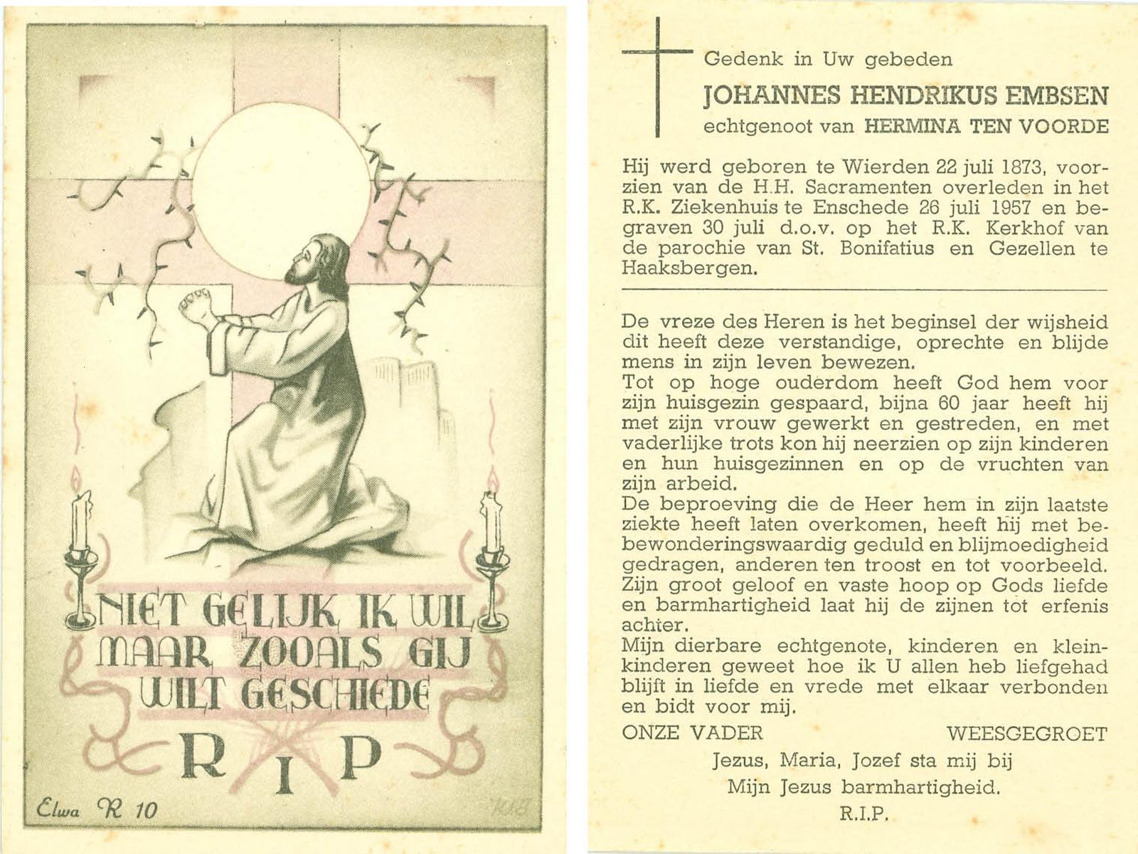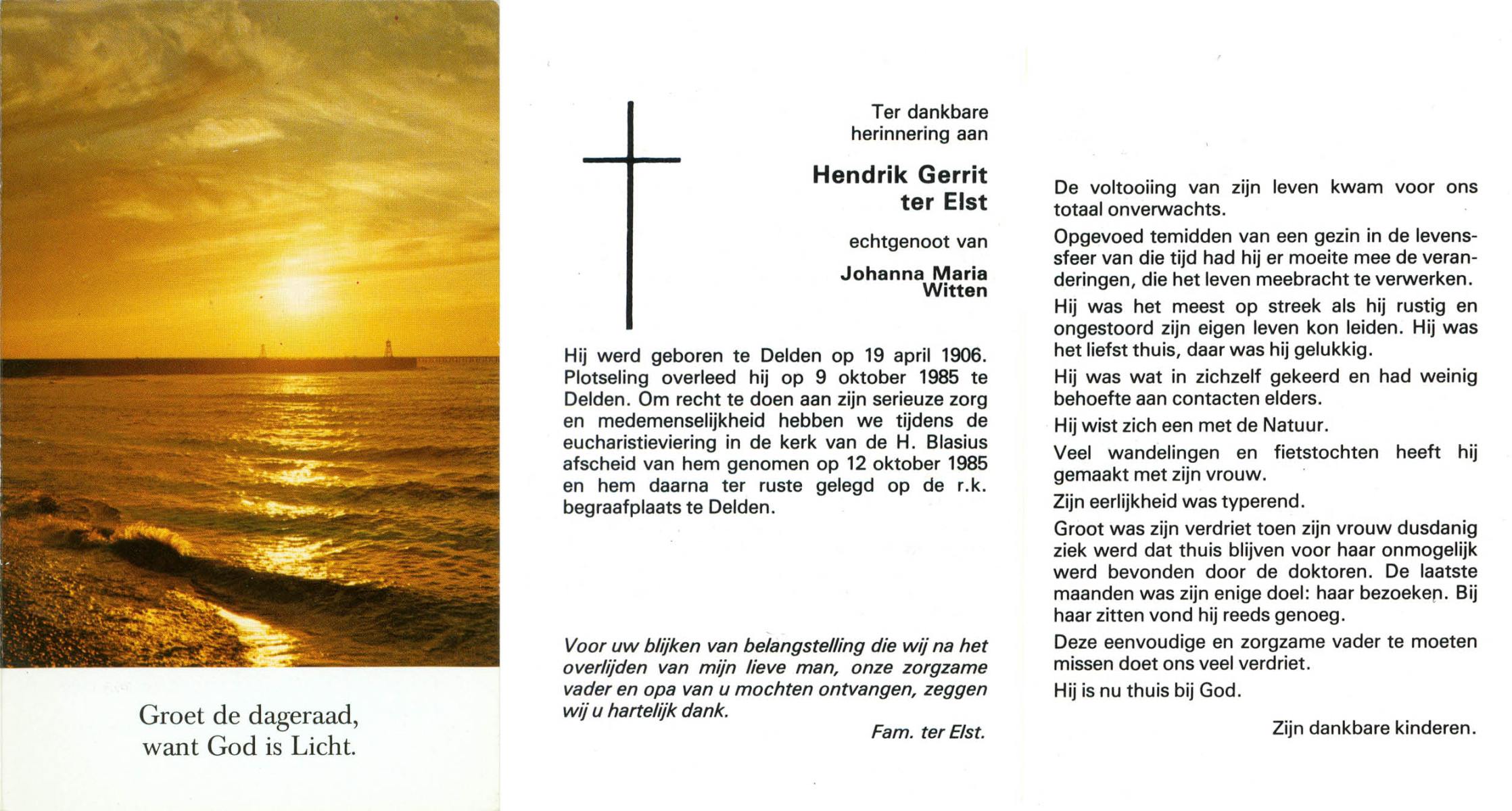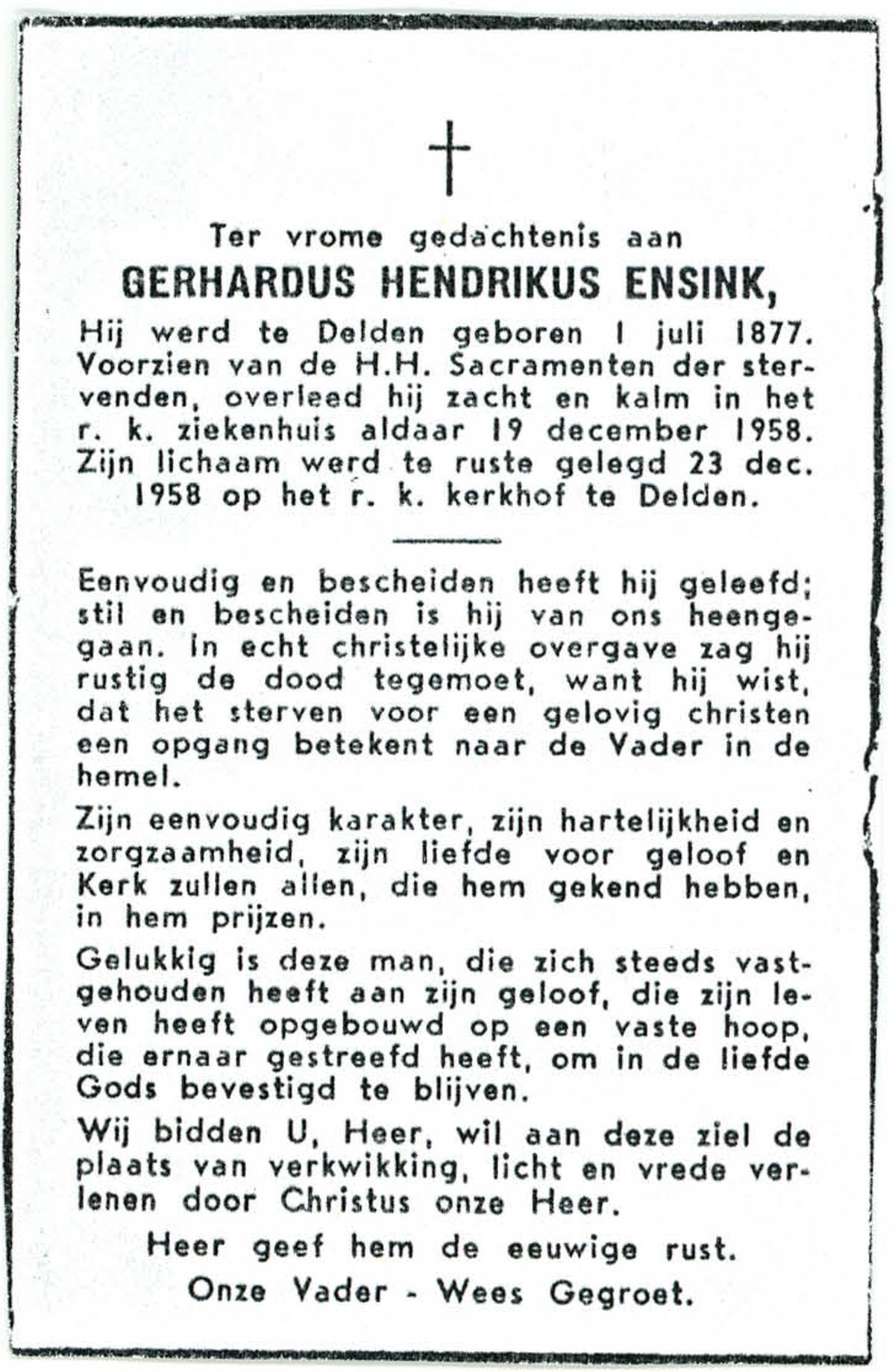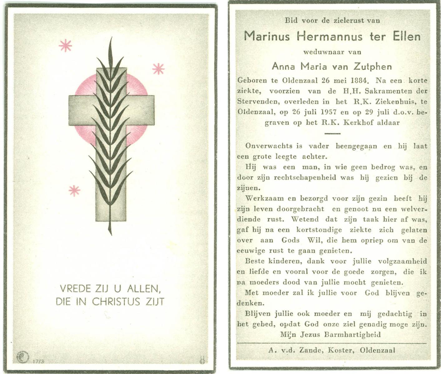ELLEN, ter, Marinus Hermannus, geboren op 26-05-1884 te Oldenzaal, overleden op 26-7-1957 te Oldenzaal op 73-jarige leeftijd, begraven op 29-7-1957 te Oldenzaal.