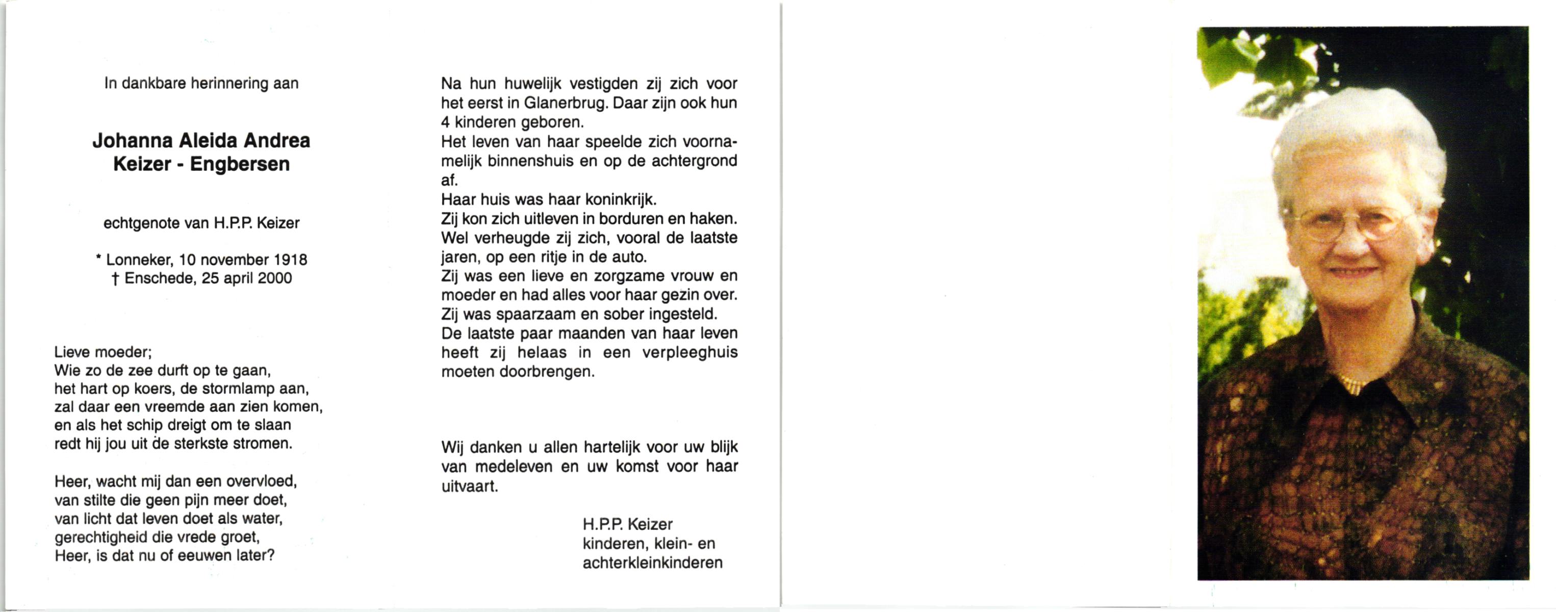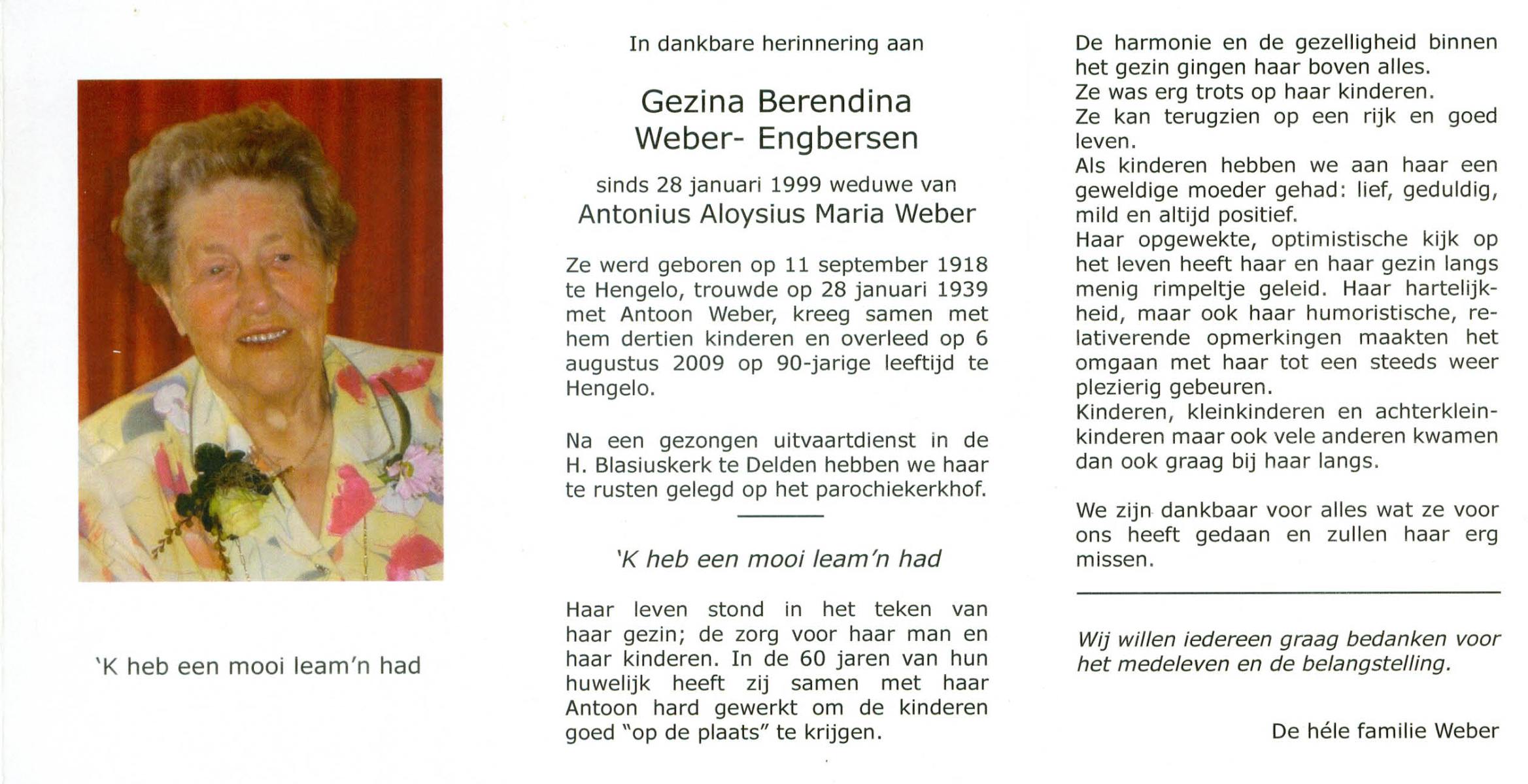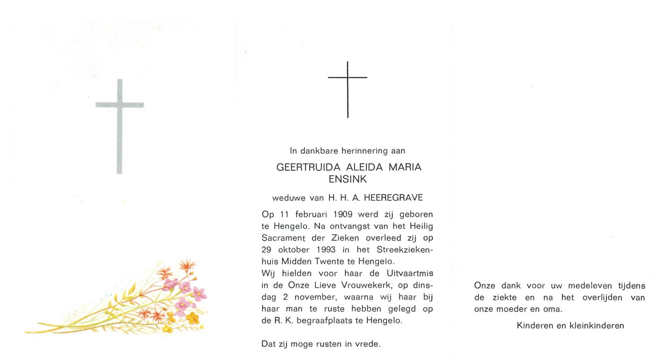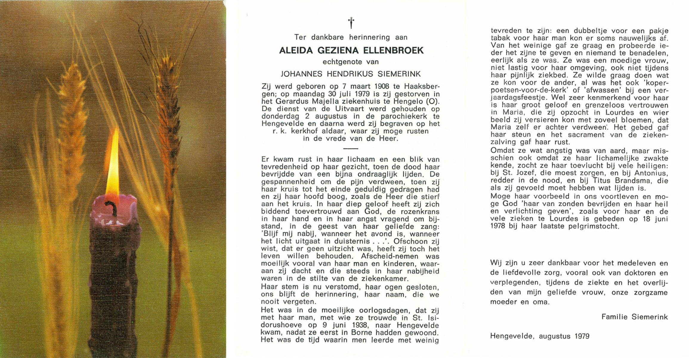 ELLENBROEK, Aleida Geziena, geboren op 7-3-1908 te Haaksbergen, overleden op 30-7-1979 te Hengelo (Ov.) op 71-jarige leeftijd, begraven op 2-8-1979 te Hengevelde.