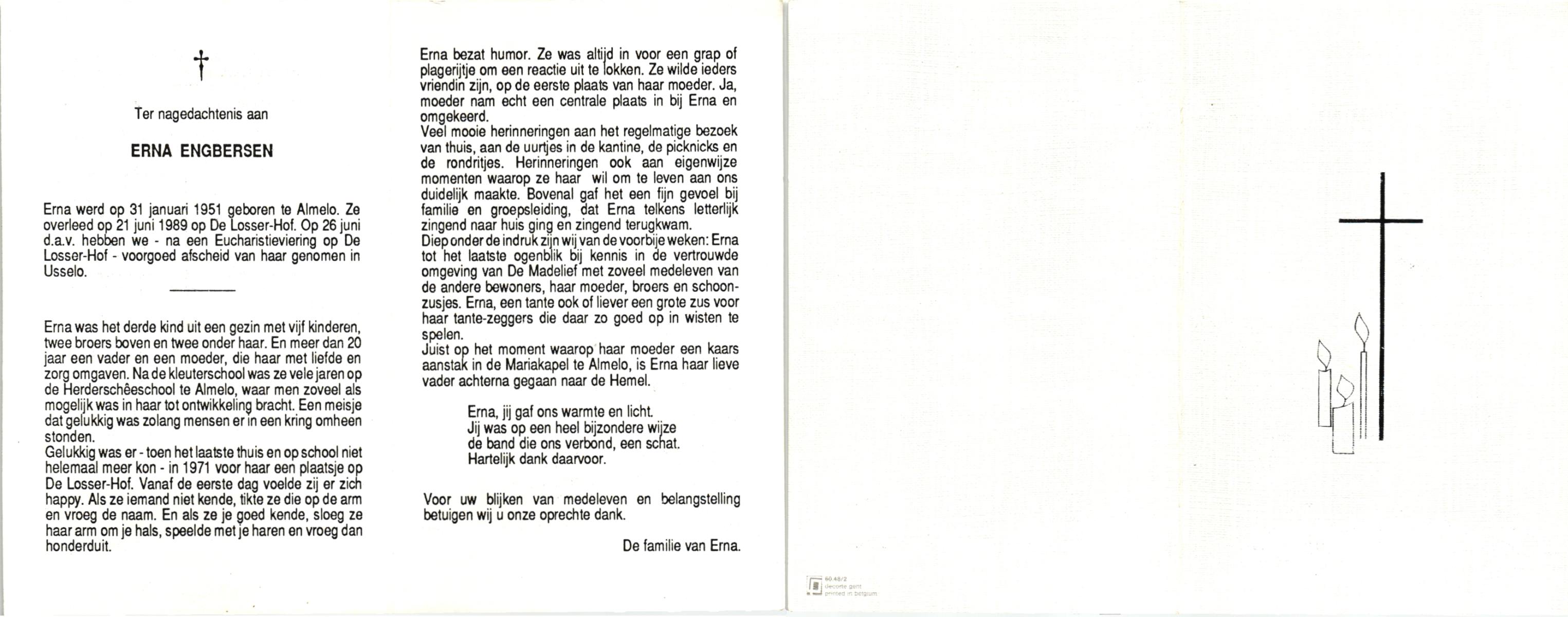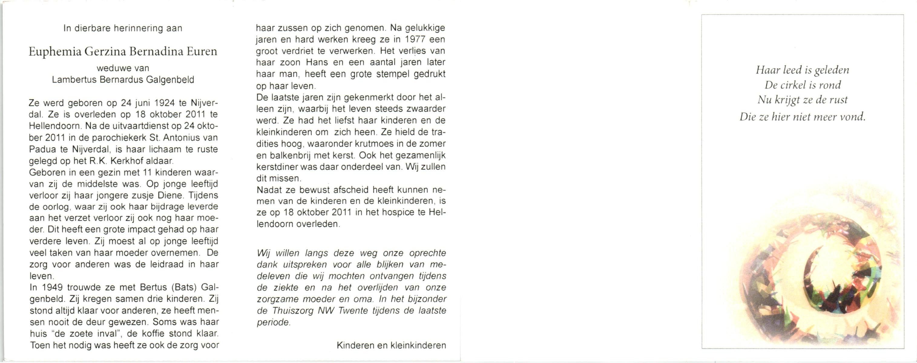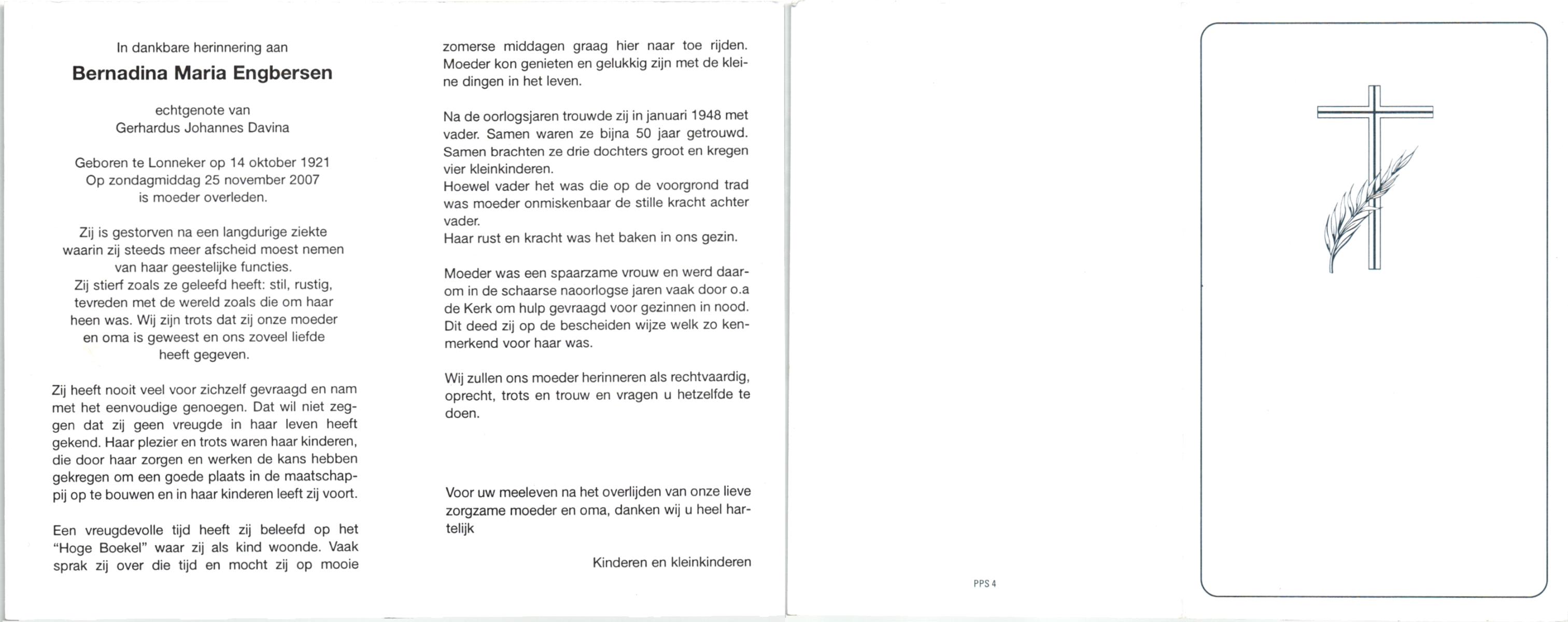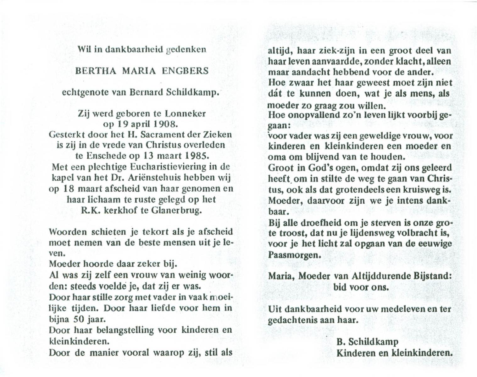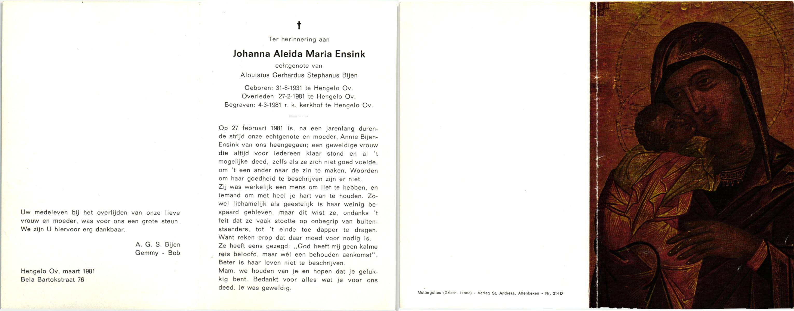 ELLENBROEK, Berendina Maria, geboren op 16-09-1897 te Borne, overleden op 15-4-1984 te Borne op 86-jarige leeftijd, begraven op 19-4-1984 te Borne.