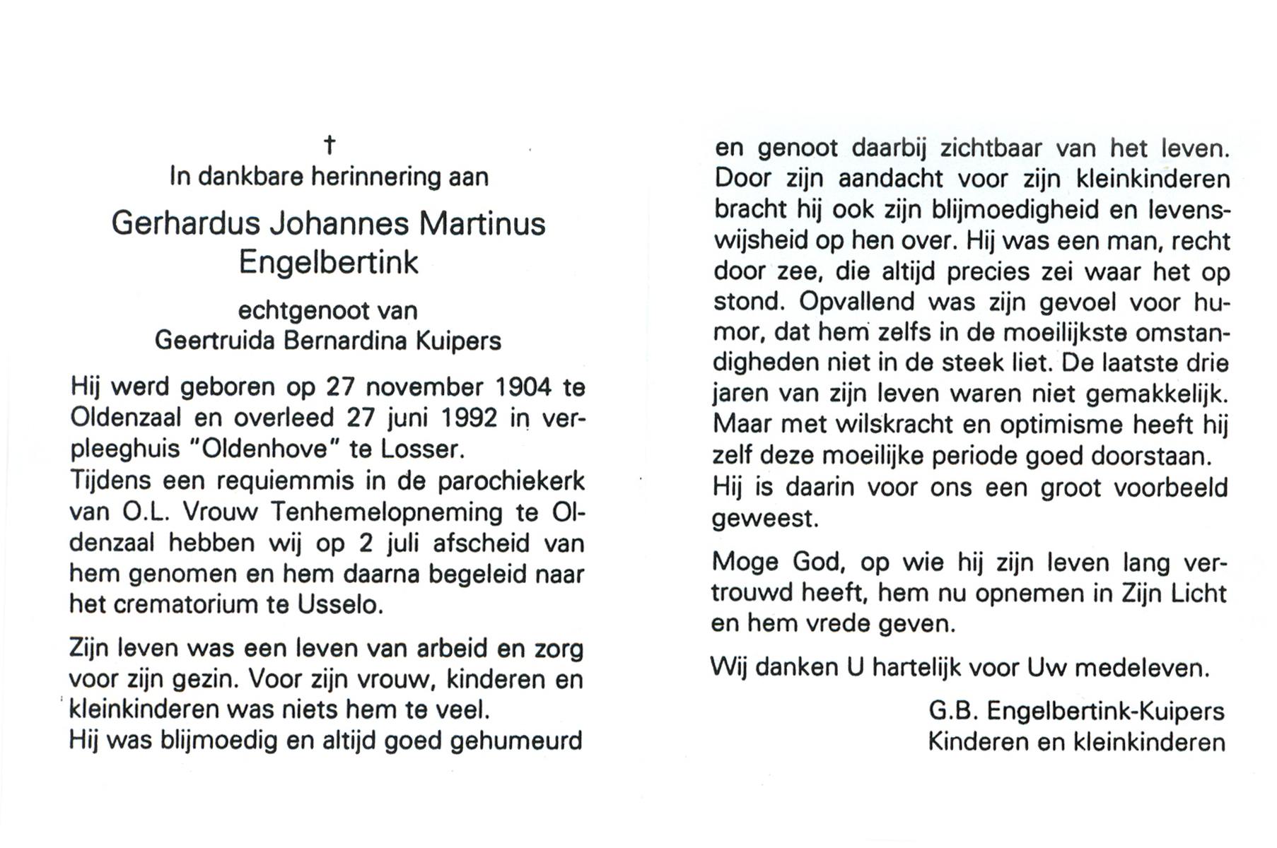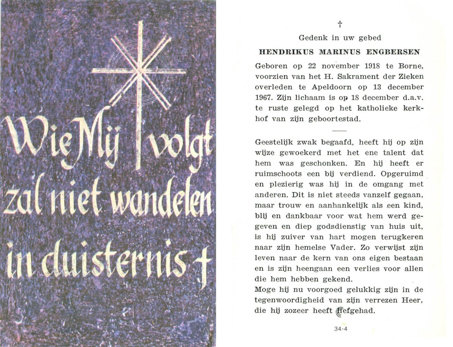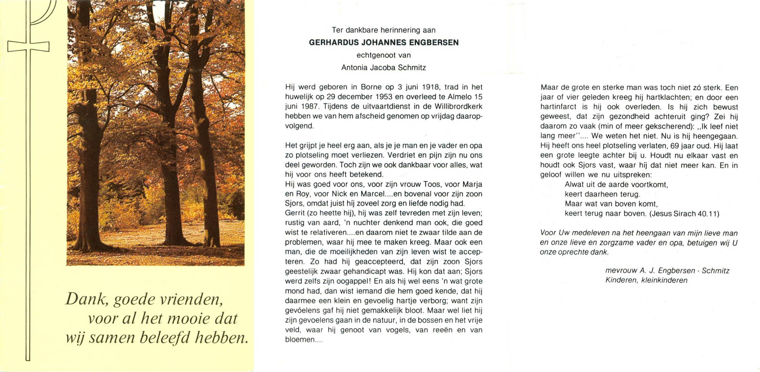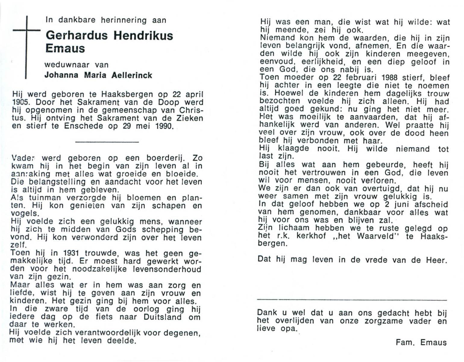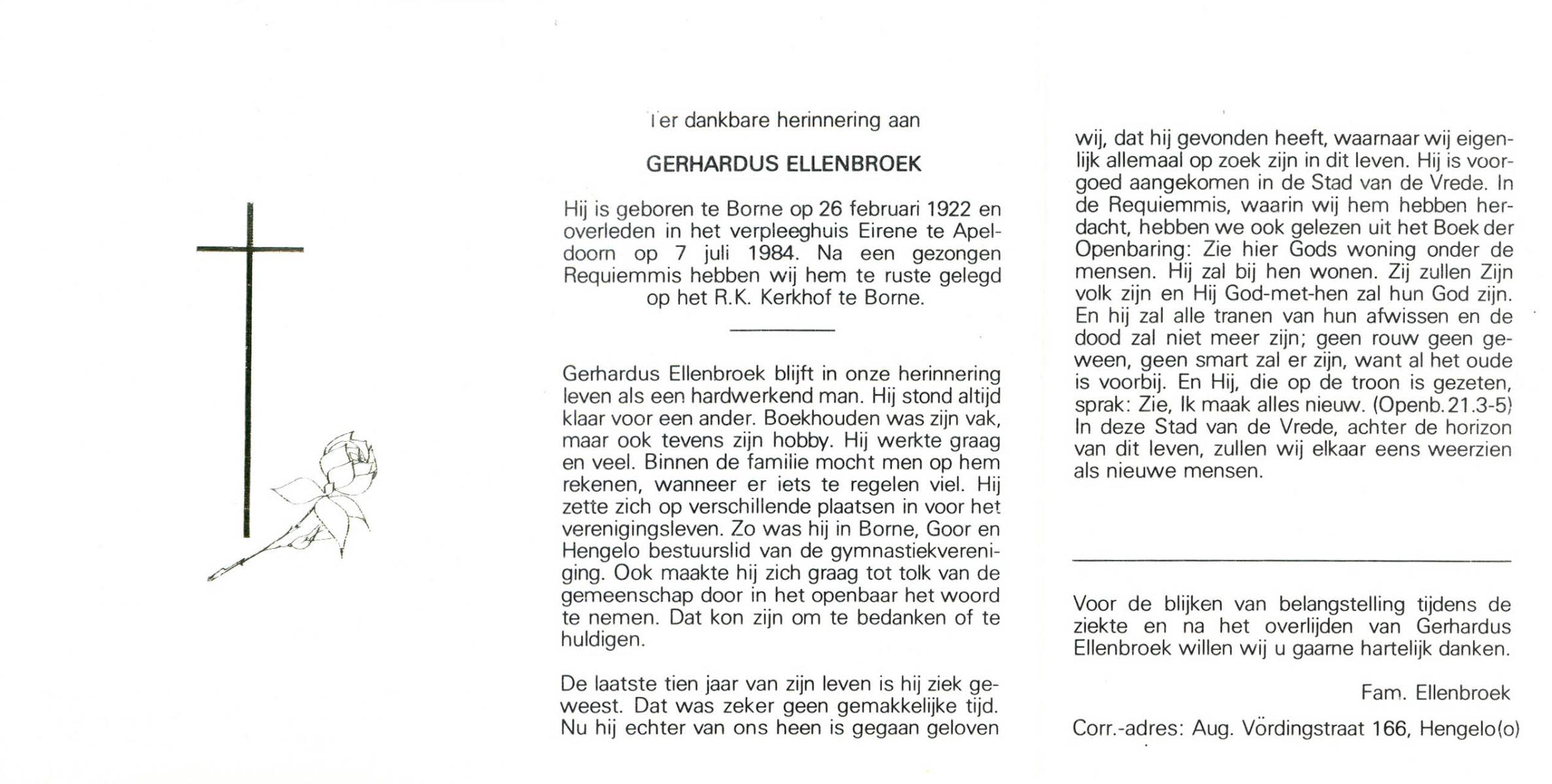 ELLENBROEK, Gerhardus, geboren op 26-2-1922 te Borne, overleden op 7-7-1984 te Apeldoorn op 62-jarige leeftijd, begraven te Borne.