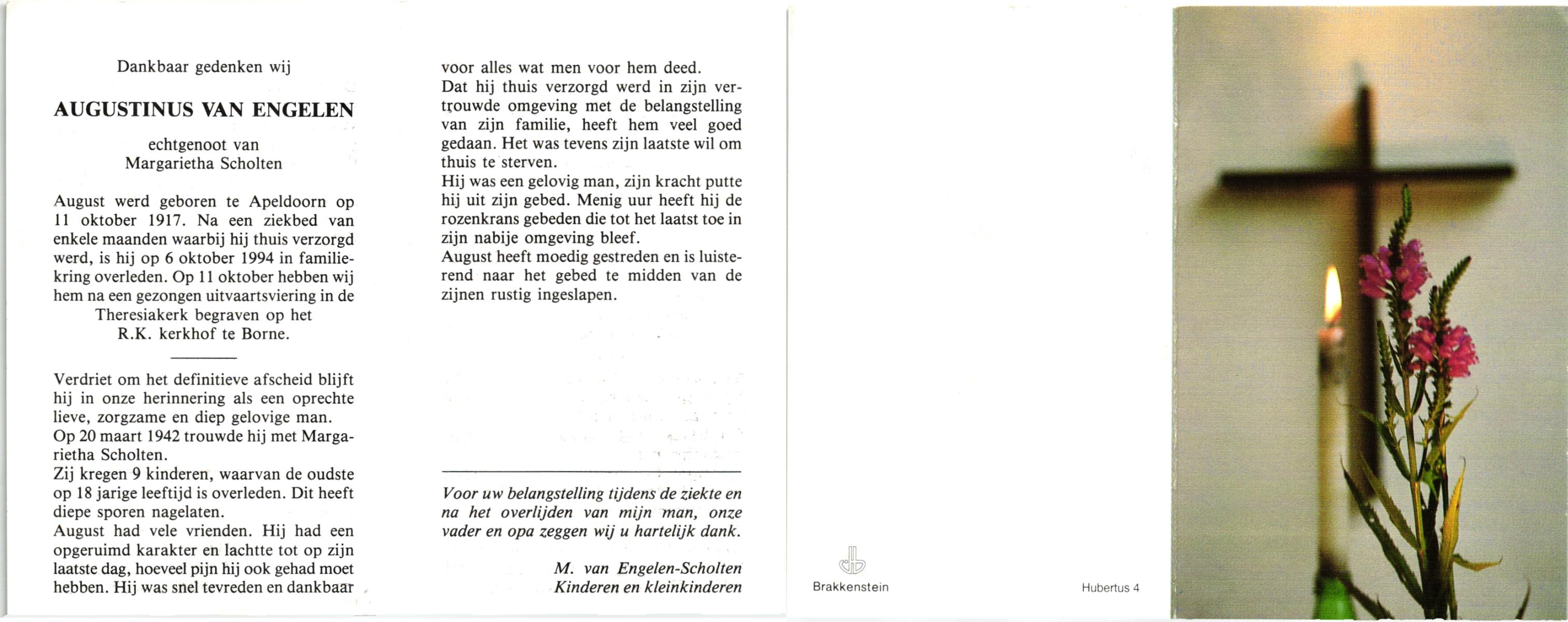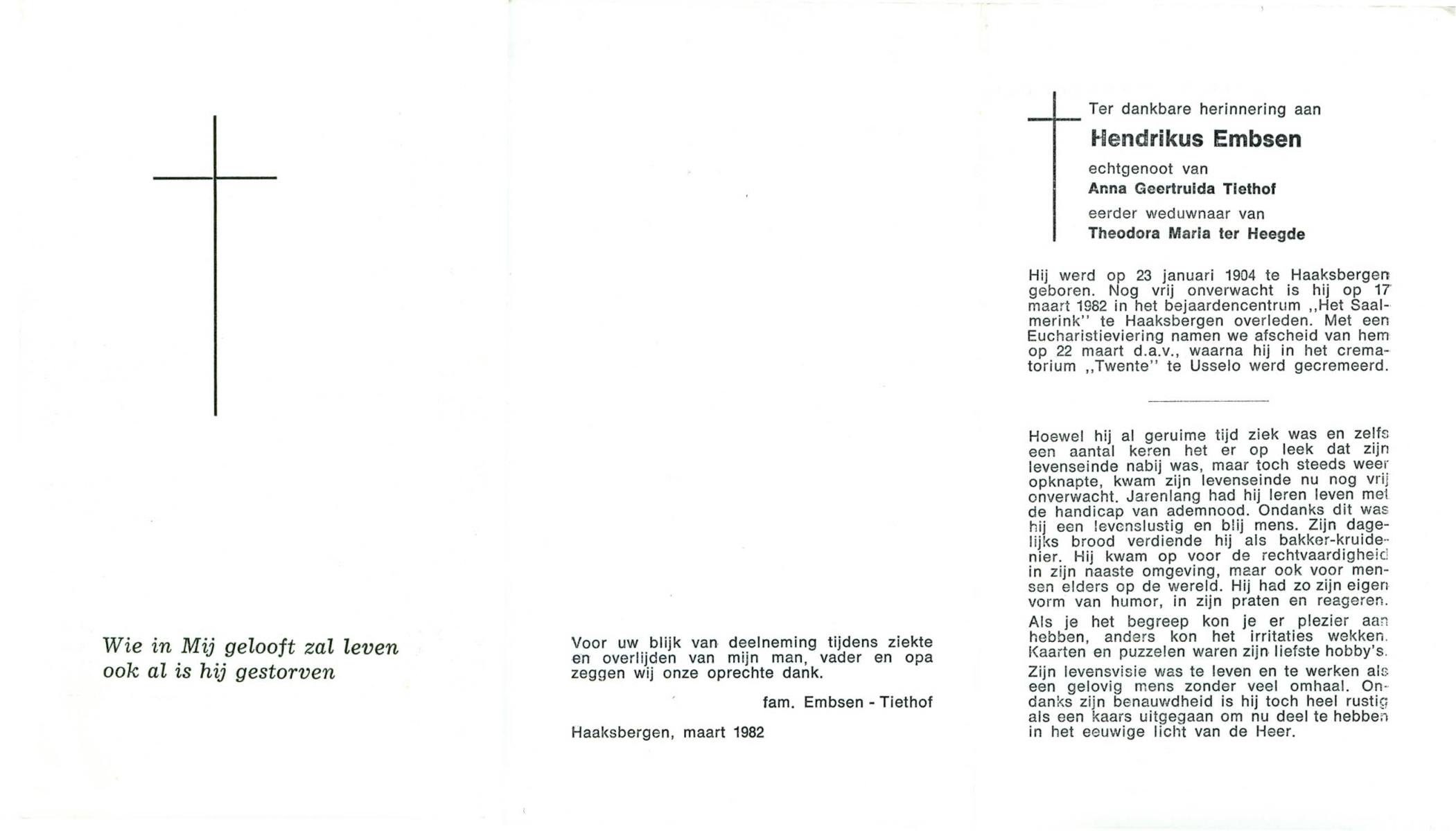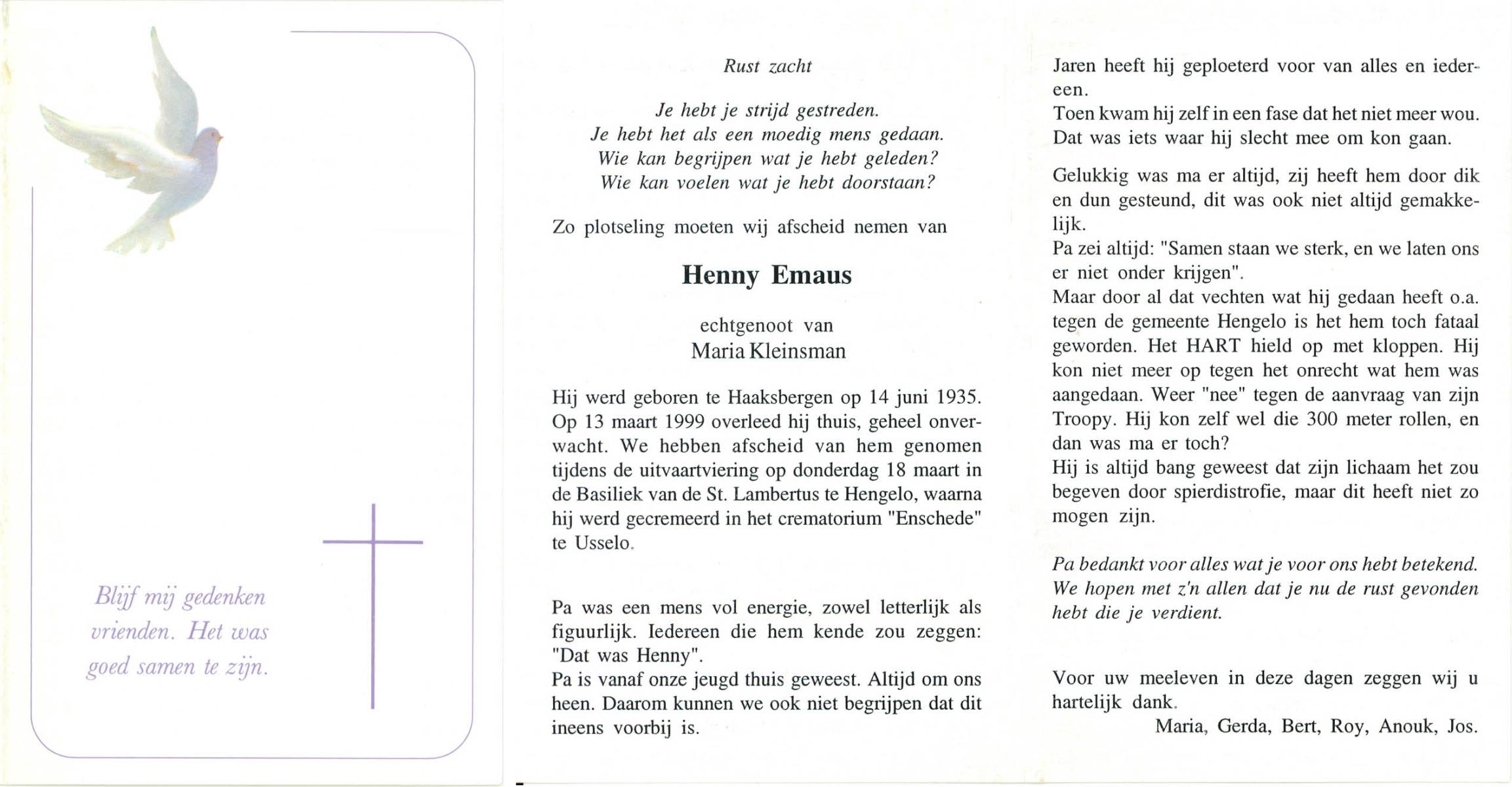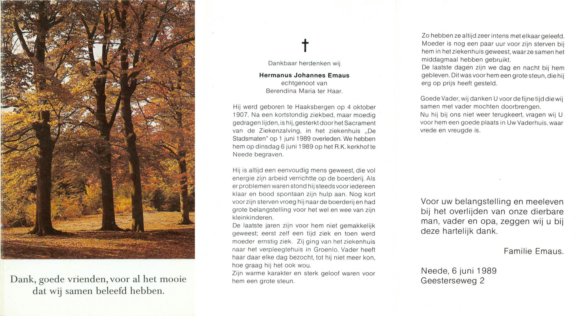 ELLENBROEK, Hermannus Antonius, geboren op 29-10-1916 te Borne, overleden op 22-10-1999 op 82-jarige leeftijd, begraven op 26-10-1999 te Borne.