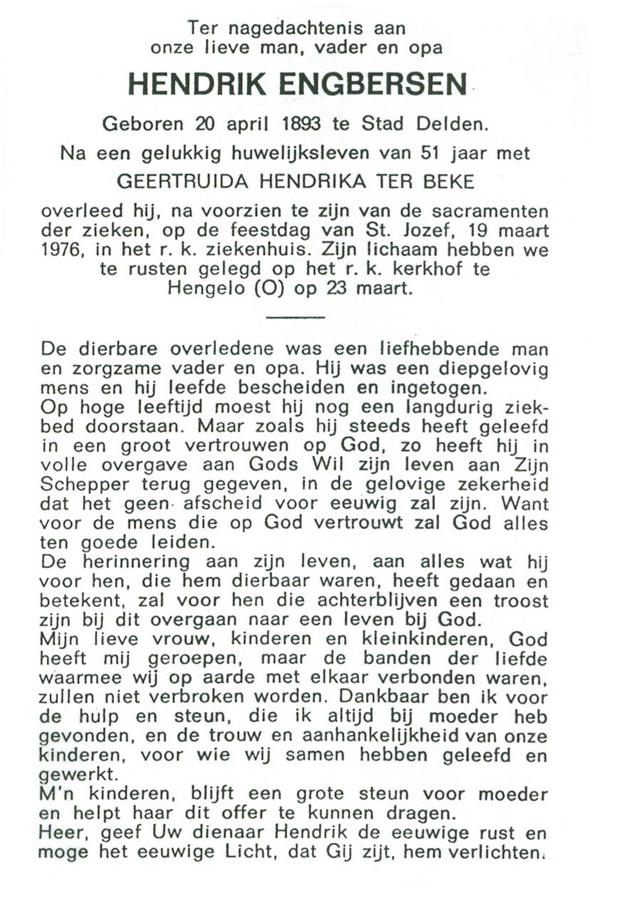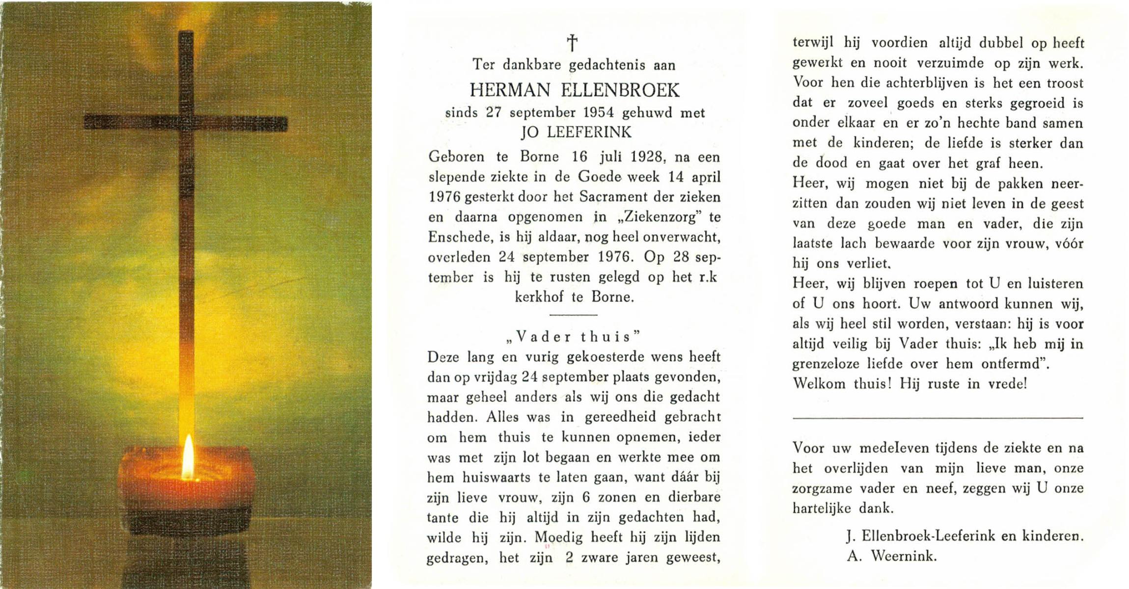 ELLENBROEK, Herman, geboren op 16-7-1928 te Borne, overleden op 14-4-1976 te Enschede op 47-jarige leeftijd, begraven op 28-9-1976 te Borne.