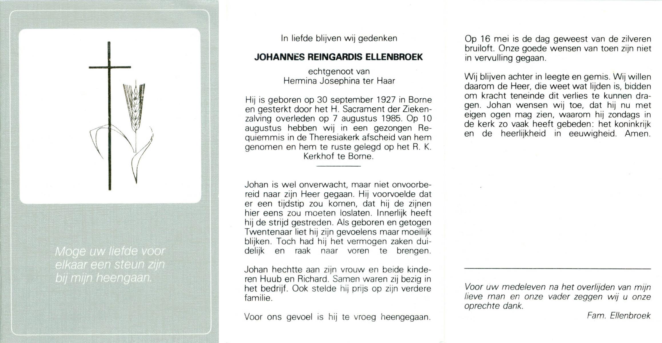 ELLENBROEK, Johannes Reingardis, geboren op 30-9-1927 te Borne, overleden op 7-8-1985 op 57-jarige leeftijd, begraven te Borne.