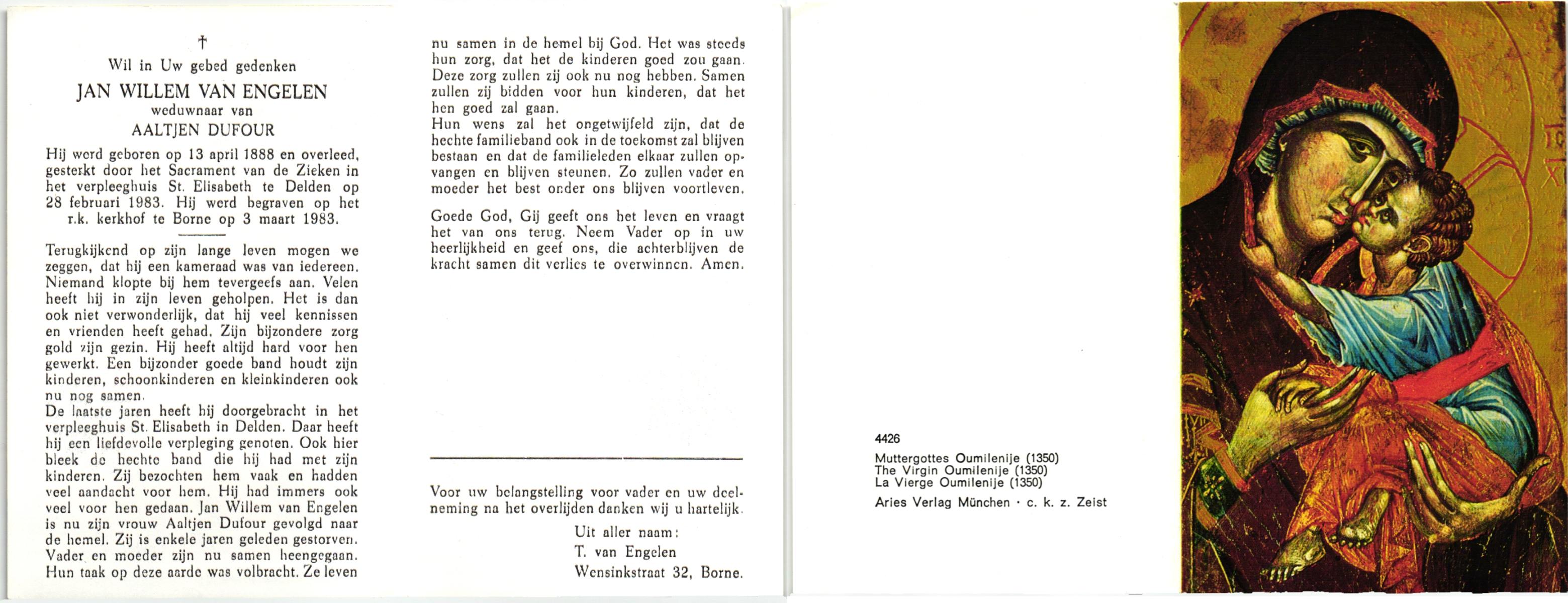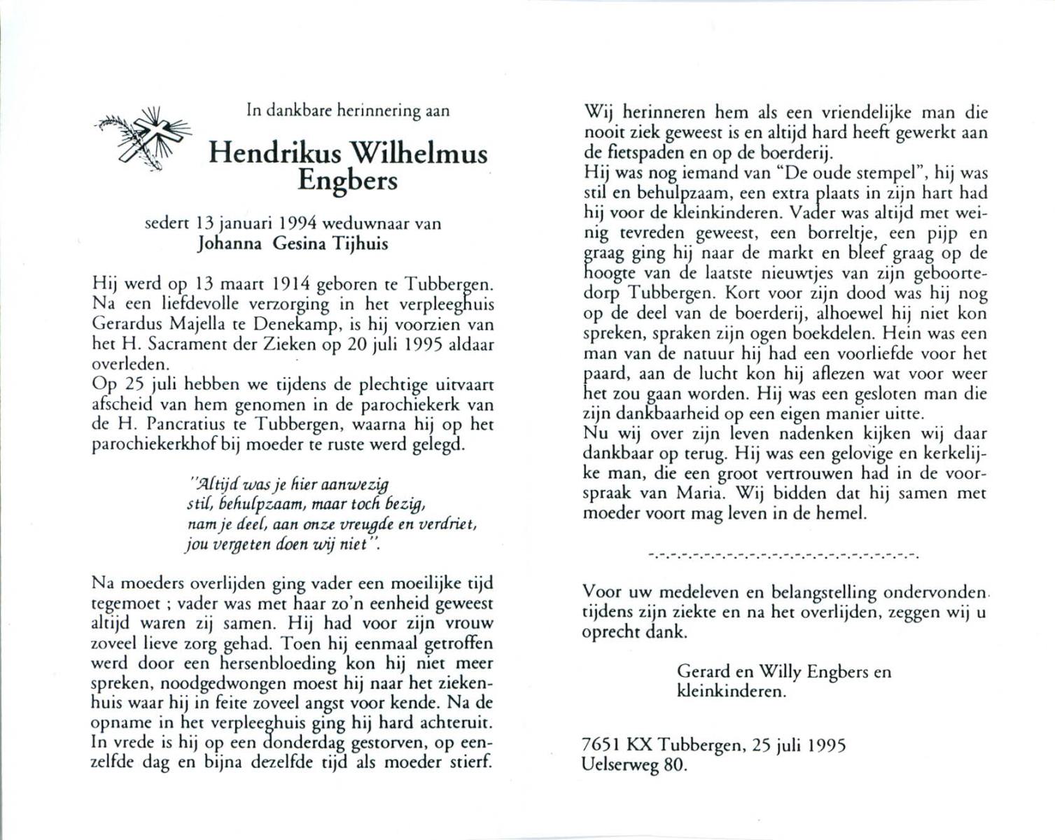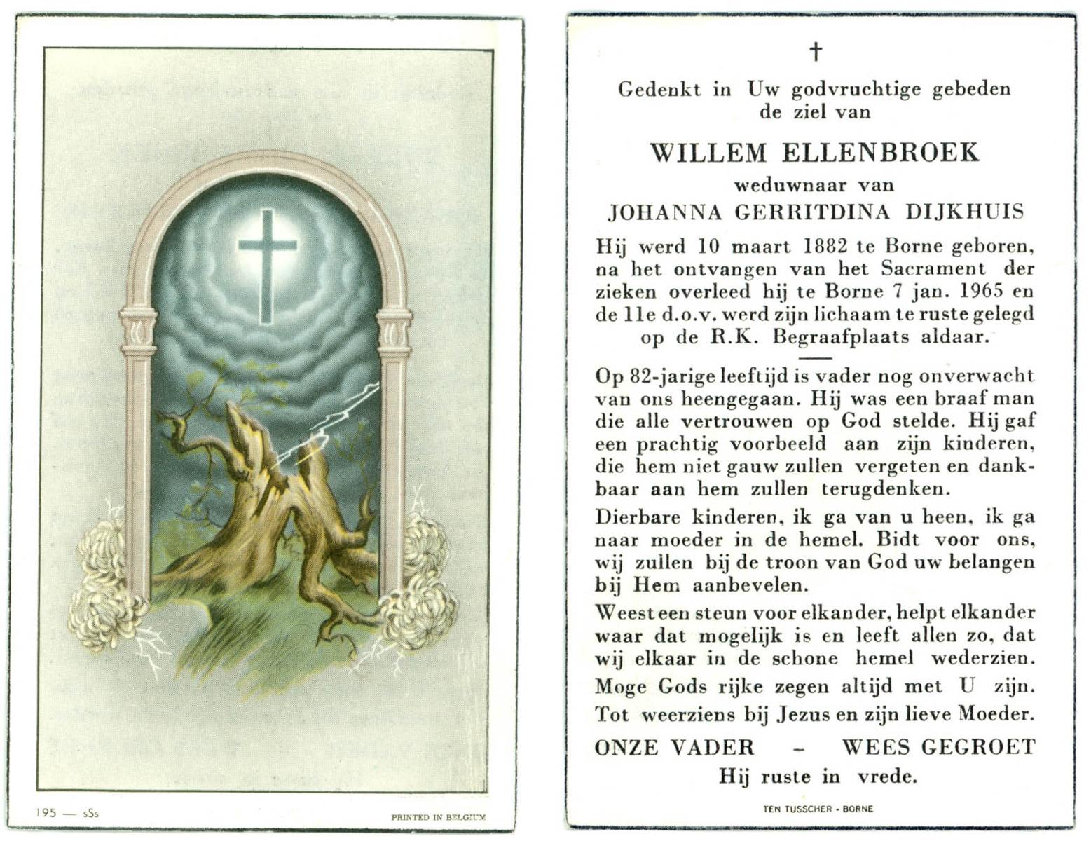 ELLENBROEK, Willem, geboren op 10-03-1882 te Borne, overleden op 7-1-1965 te Borne op 82-jarige leeftijd, begraven op 11-1-1965 te Borne.