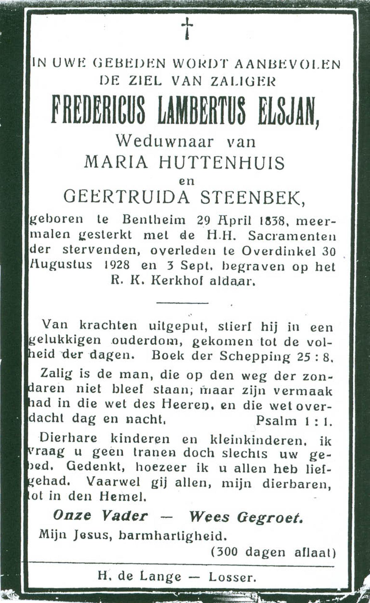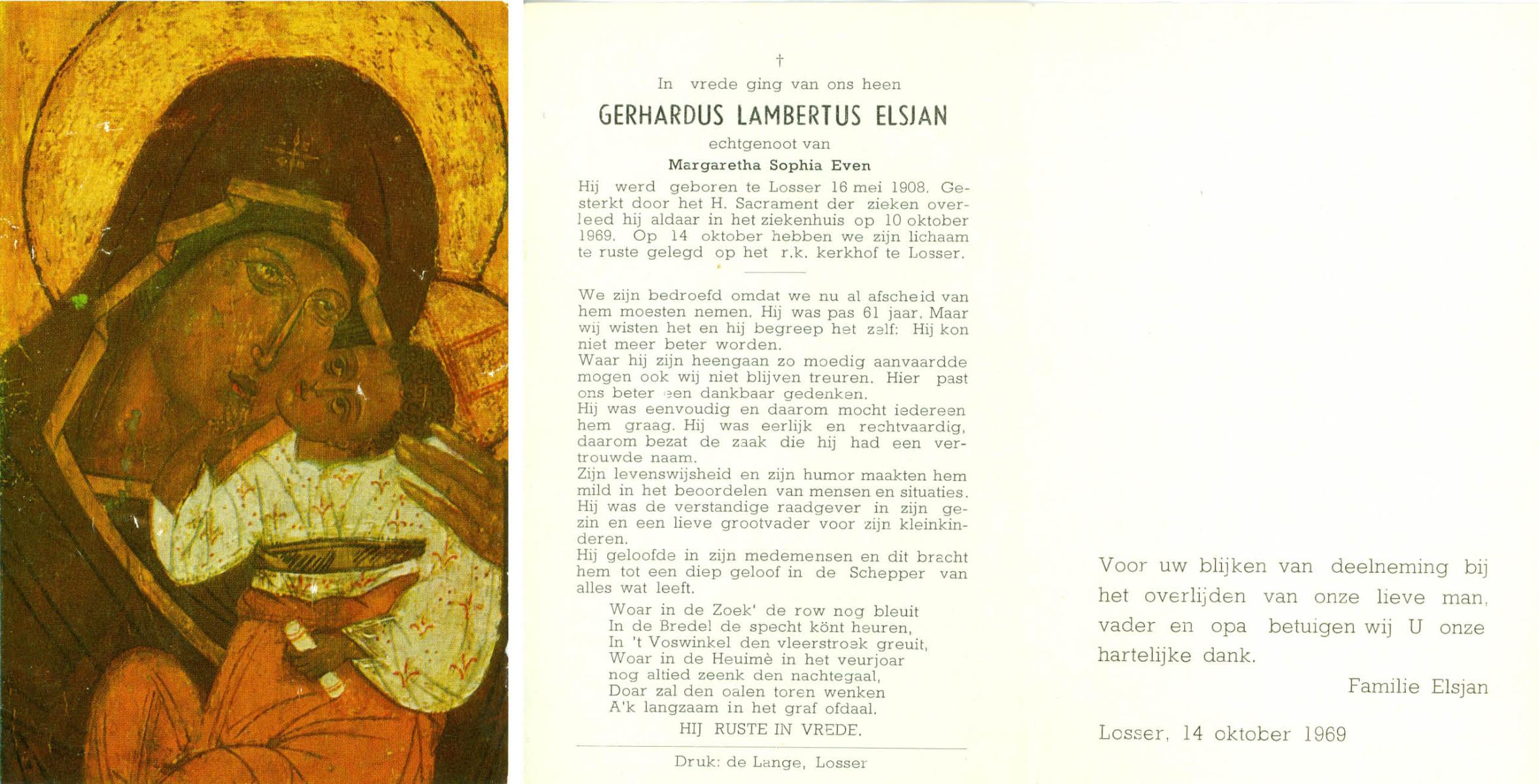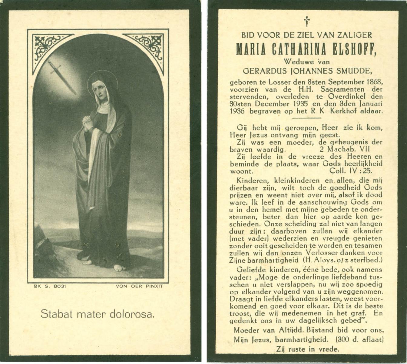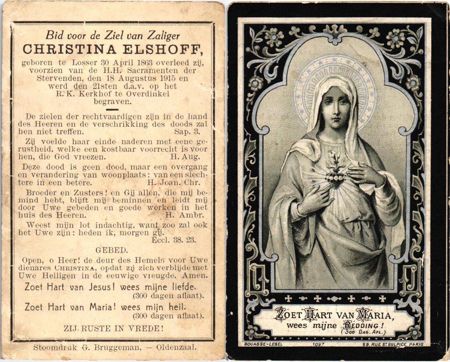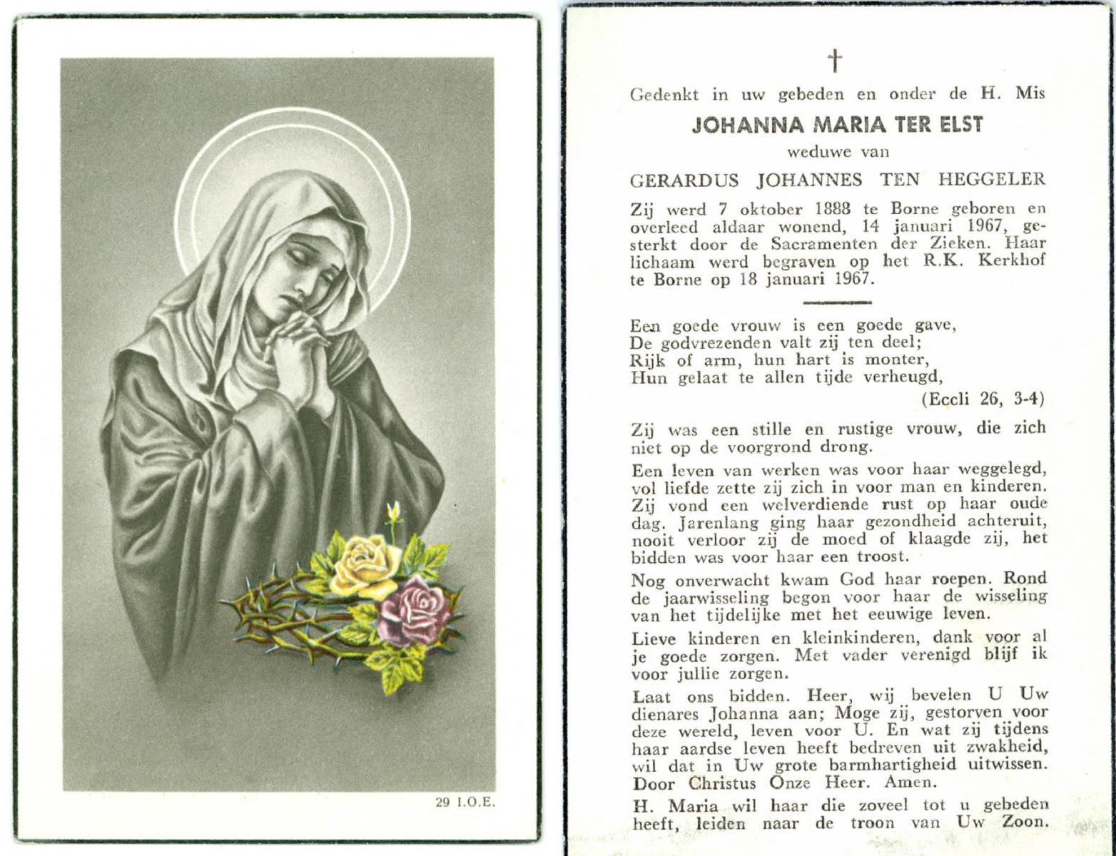 ELS, Maria, geboren op 13-06-1898 te Losser, overleden op 2-3-1988 te Overdinkel op 89-jarige leeftijd, begraven op 5-3-1988 te Overdinkel R.K.kerkhof.