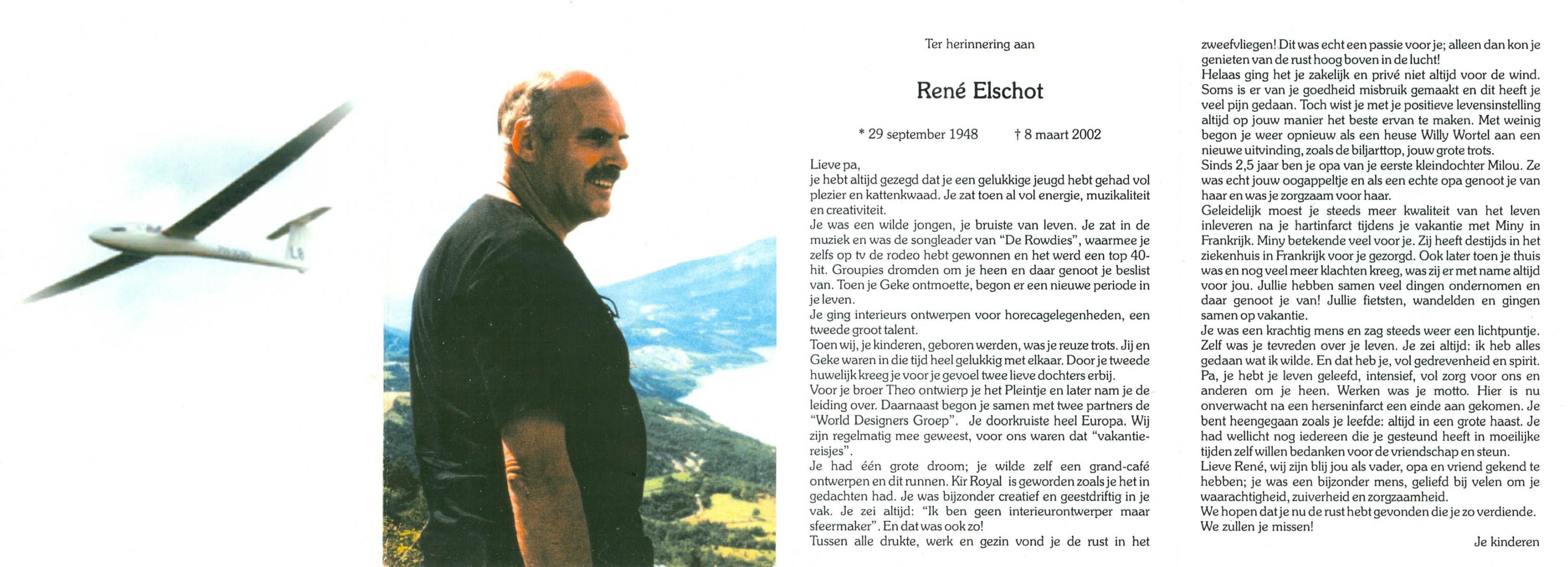ELSCHOT, René, geboren op 29-9-1948, overleden op 8-3-2002 op 53-jarige leeftijd.