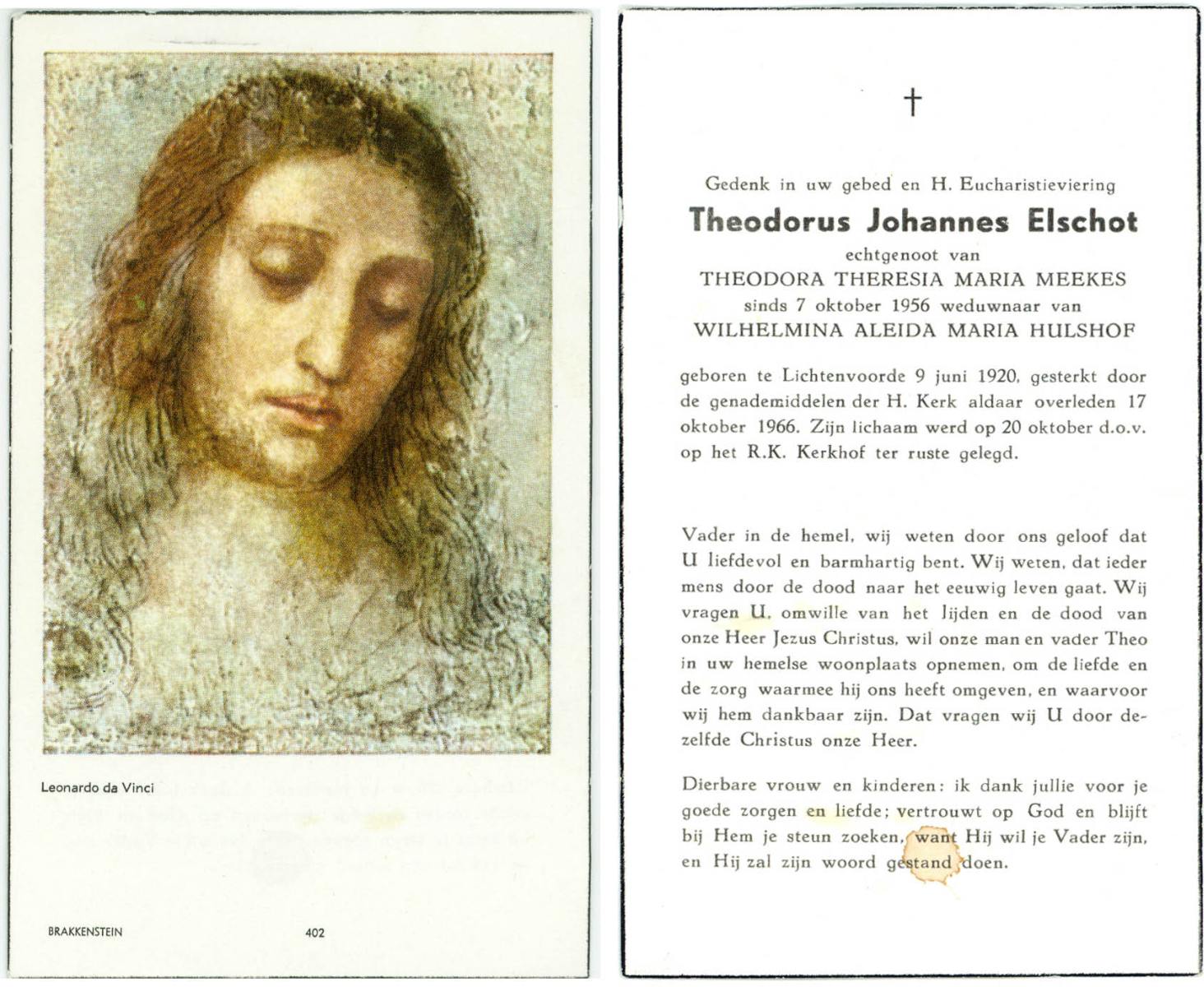 ELSCHOT, Theodorus Johannes, geboren op 9-6-1920 te Lichtenvoorde, overleden op 17-10-1966 op 46-jarige leeftijd, begraven op 20-10-1966.