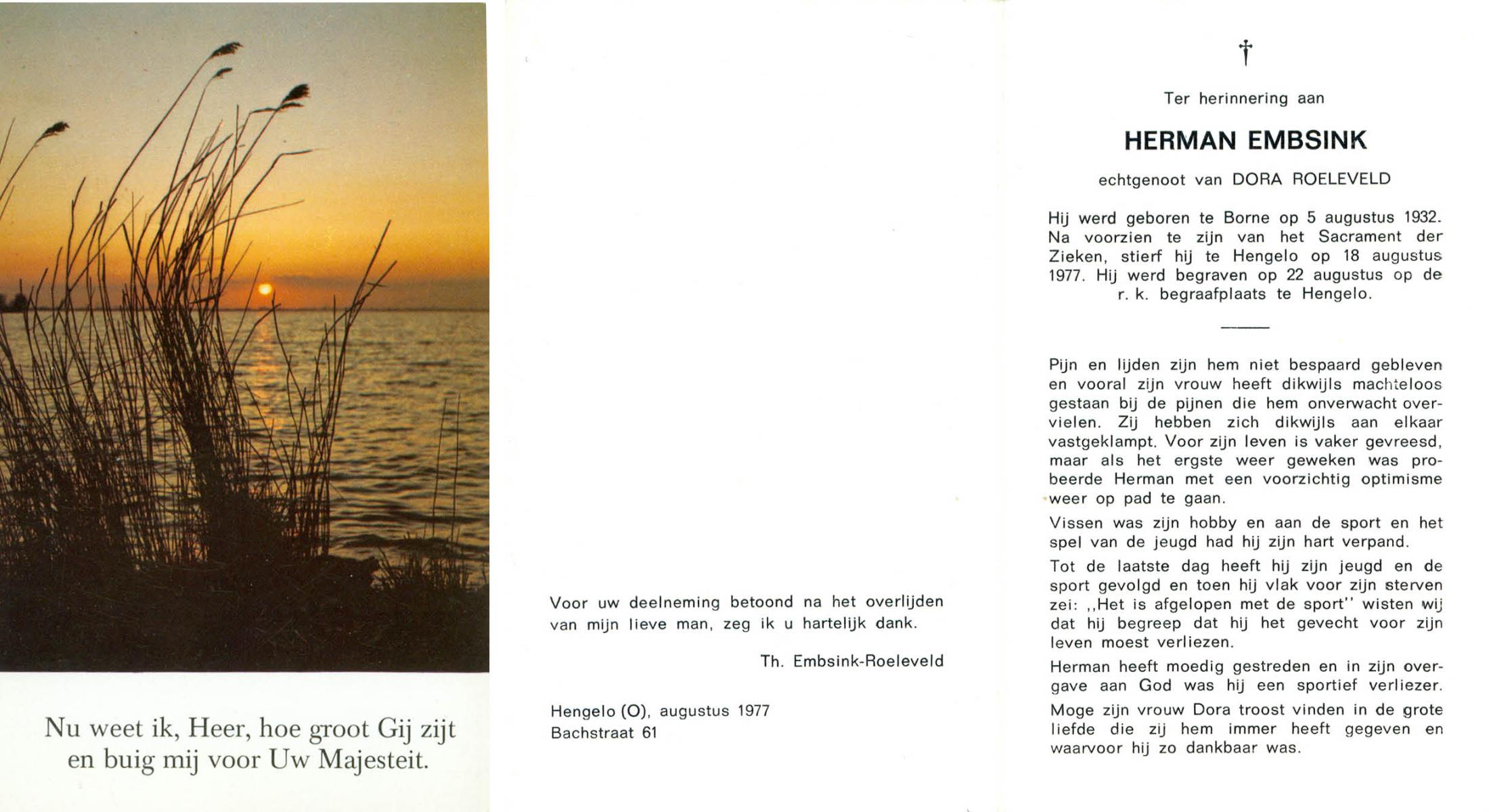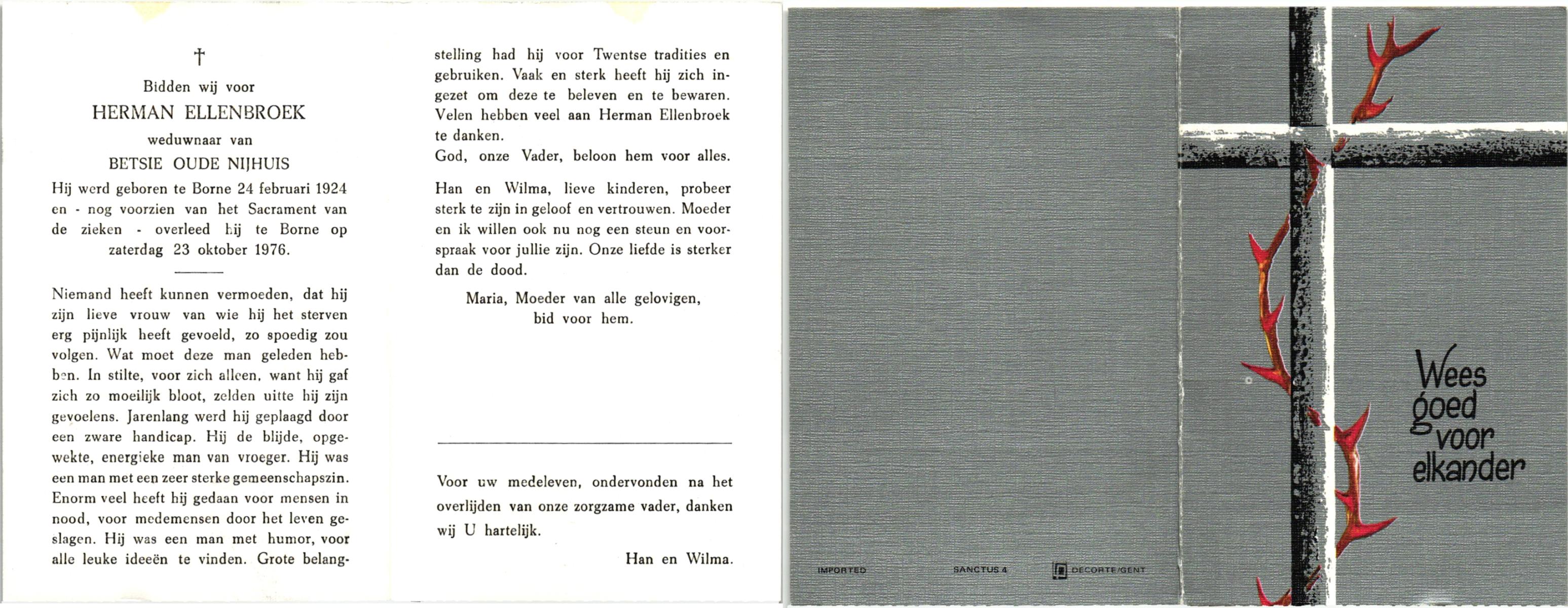 ELLENBROEK, , Herman, geboren op 24-2-1924 te Borne, overleden op 23-10-1976 te Borne op 52-jarige leeftijd.