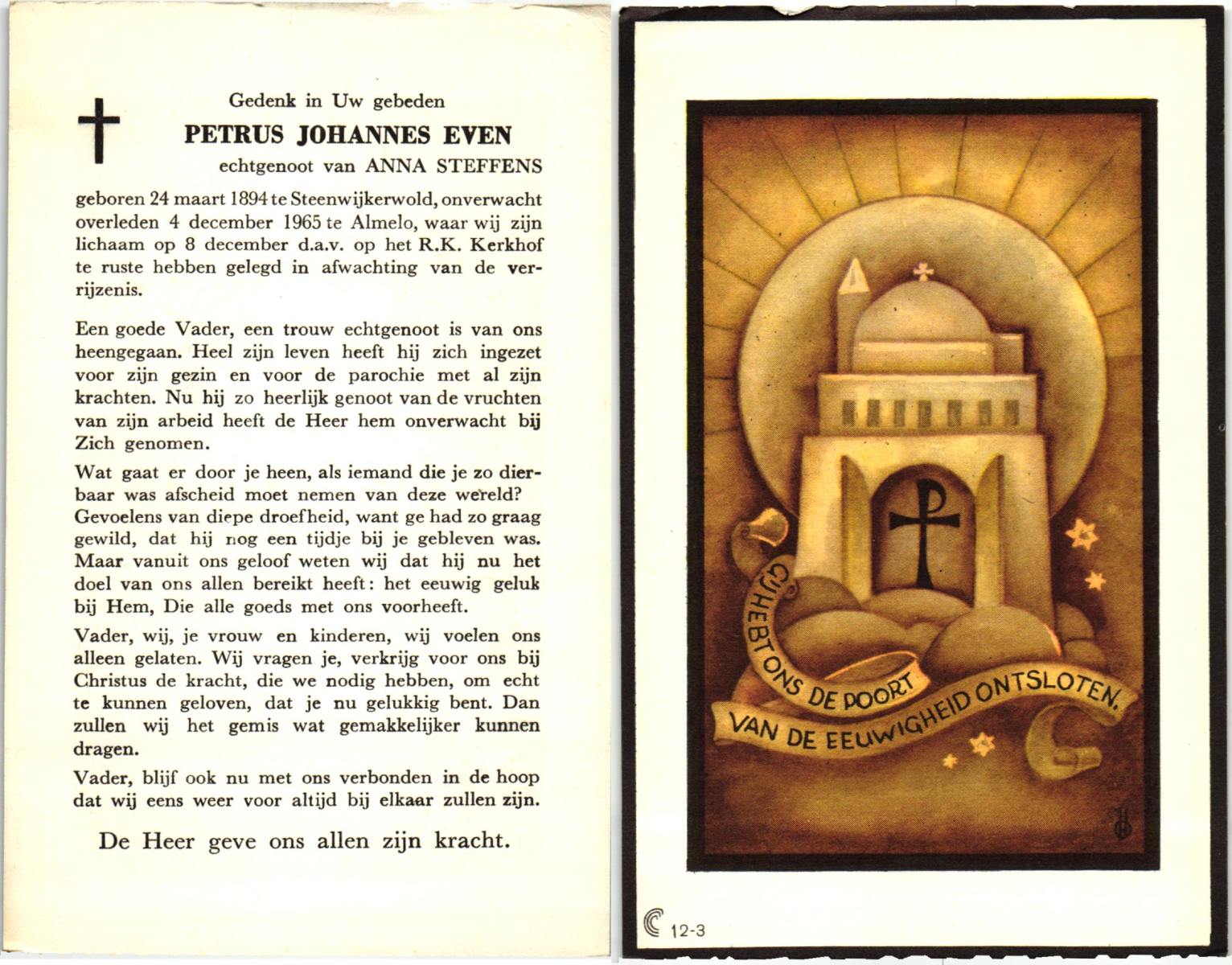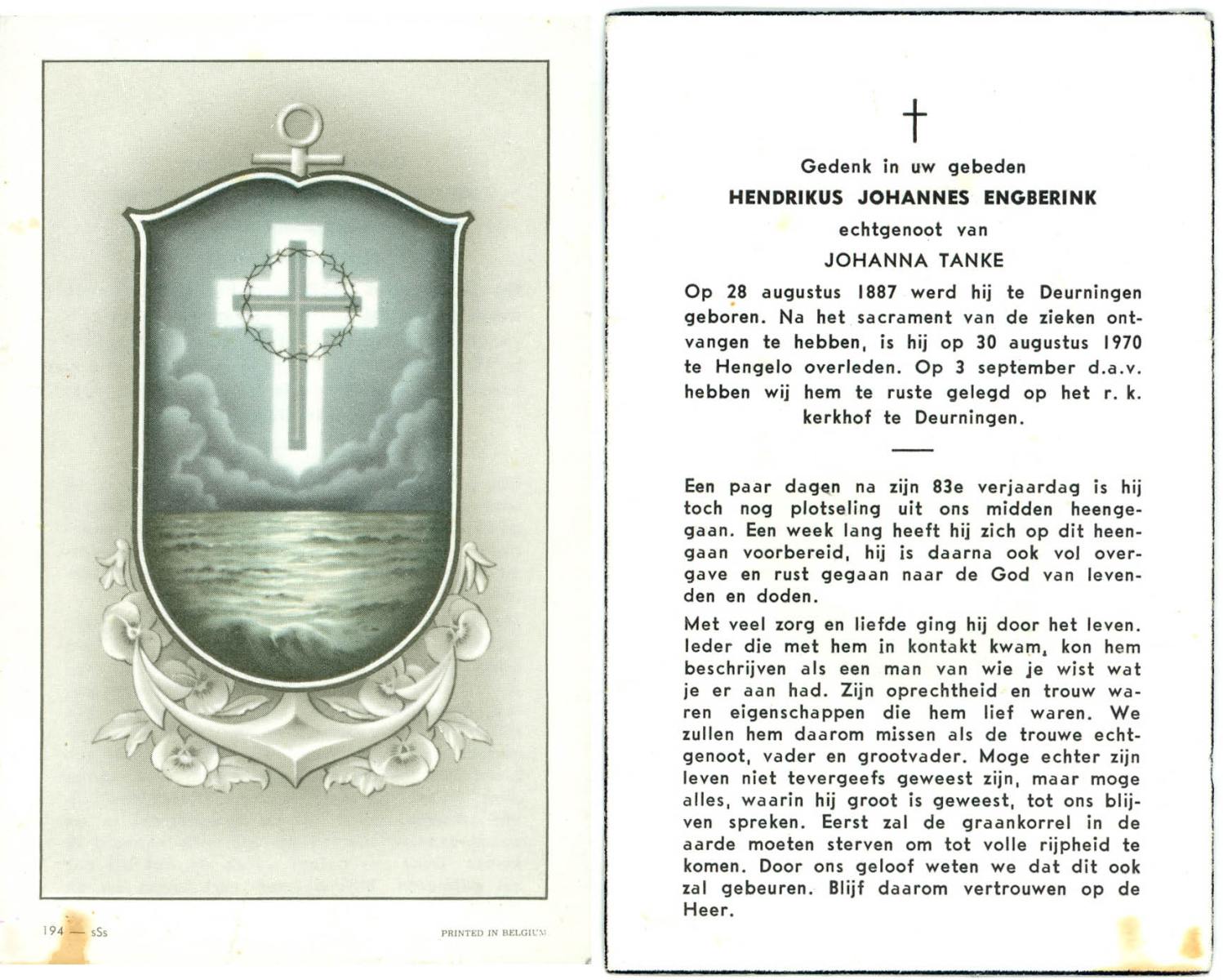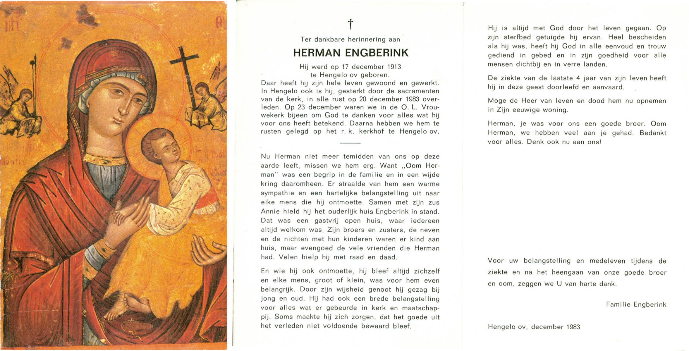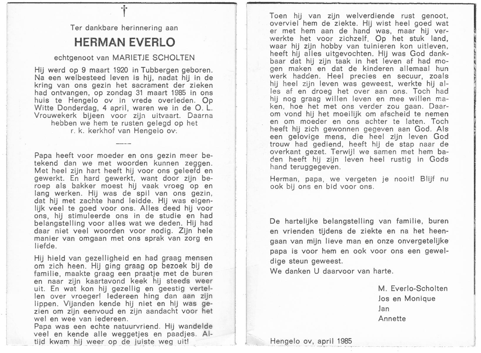 EVERTMAN, Hermannus Johannes, geboren op 10-5-1908 te Losser, overleden op 17-9-1983 op 75-jarige leeftijd, begraven op 22-9-1983 te Losser.