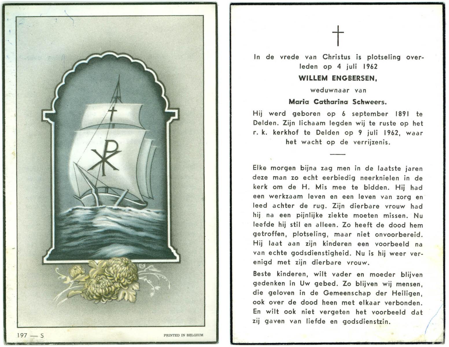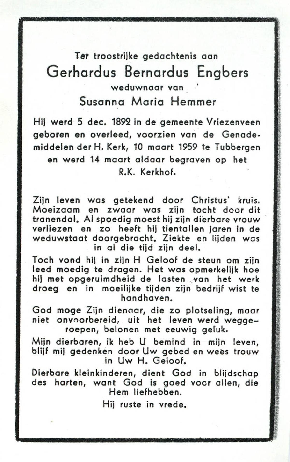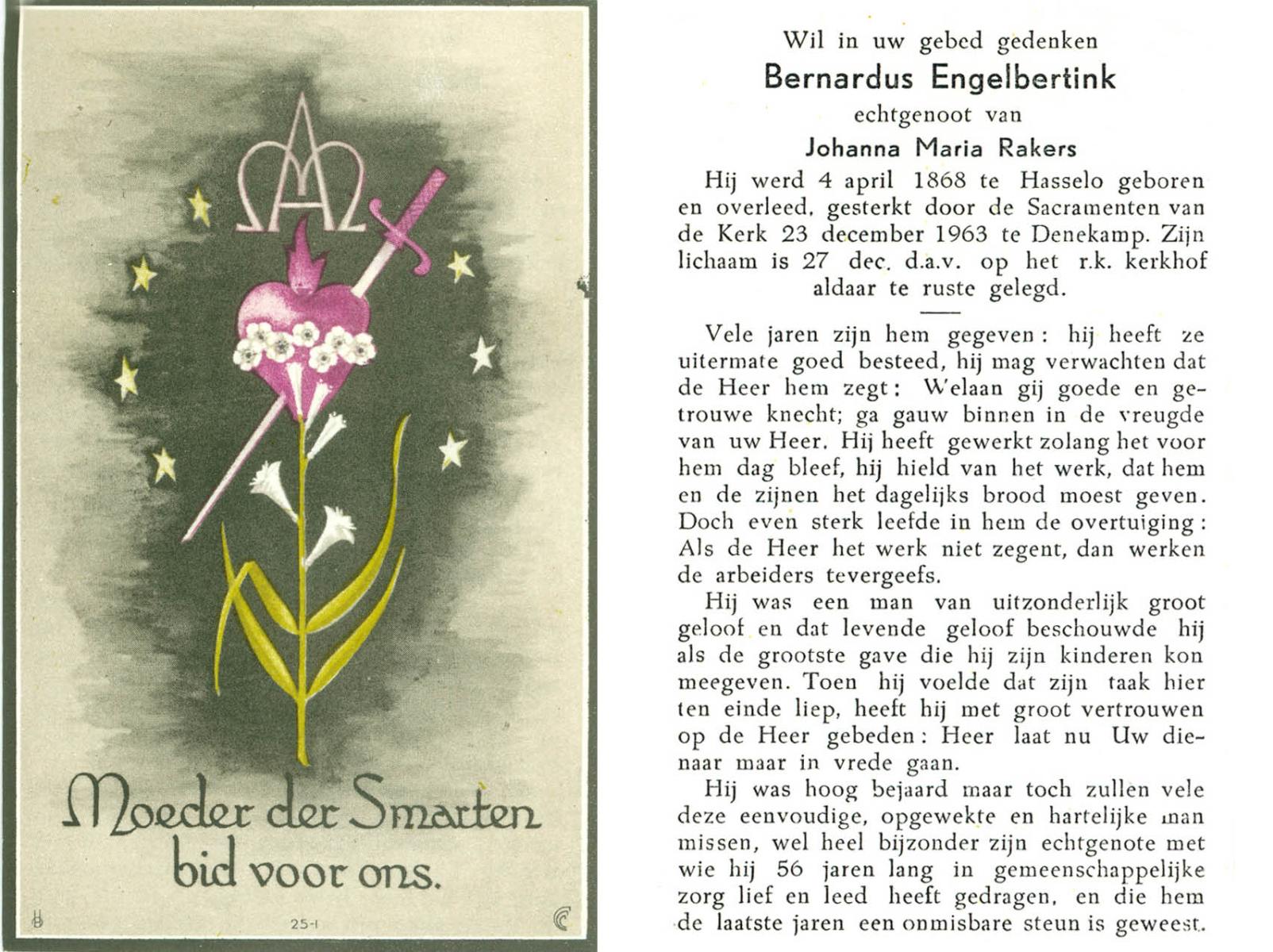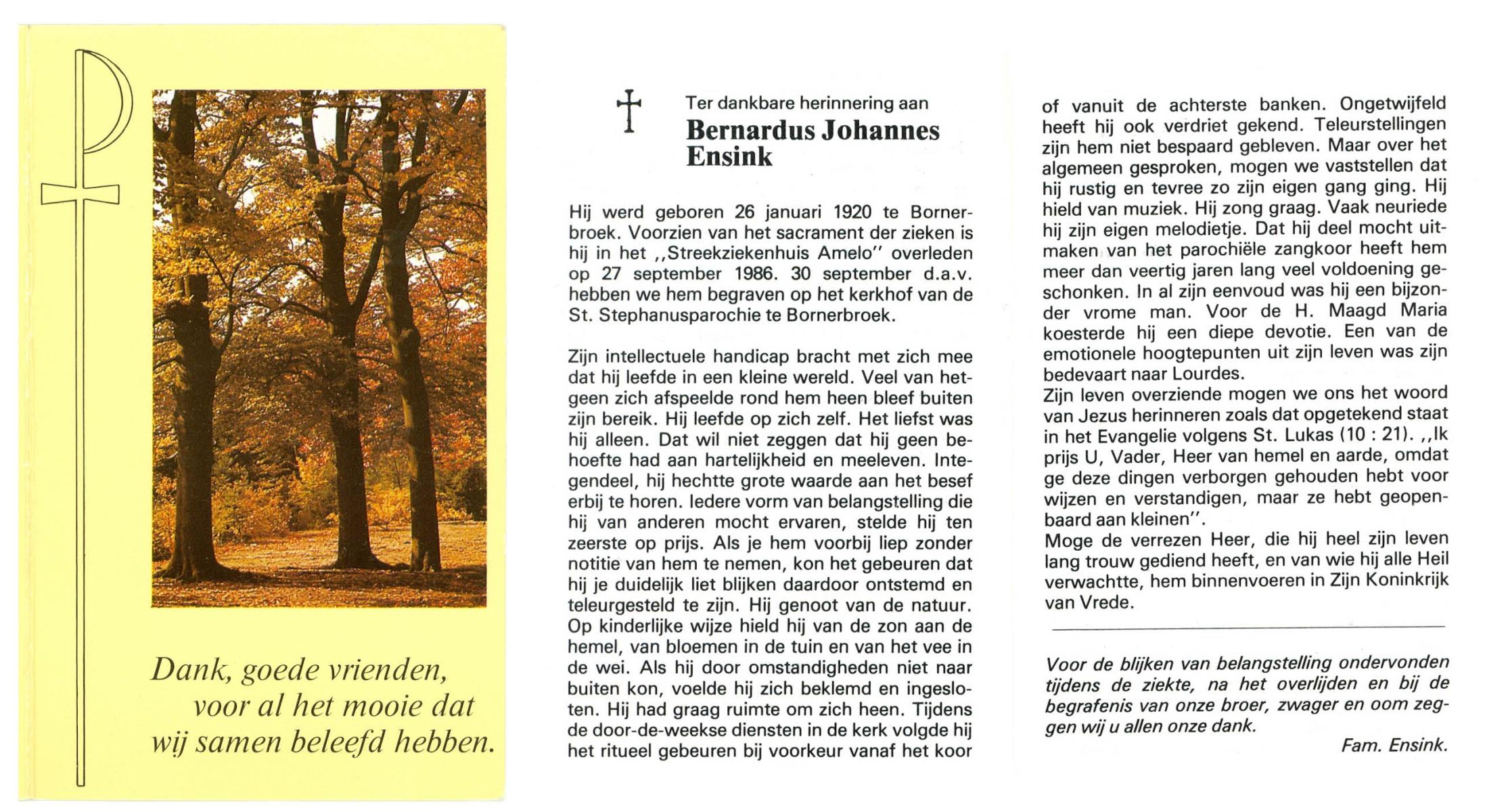 ELLENBROEK, Bernardus, geboren op 29-11-1897 te Borne, overleden op 18-9-1961 te Borne op 63-jarige leeftijd, begraven op 21-9-1961 te Borne.