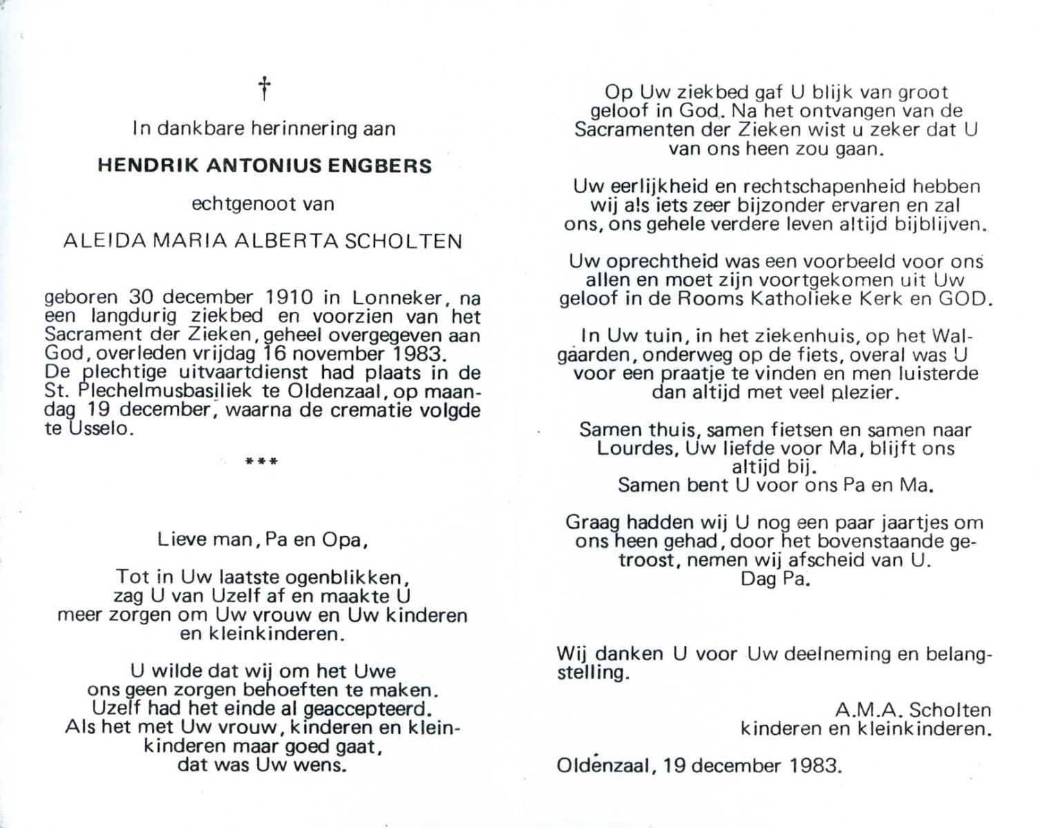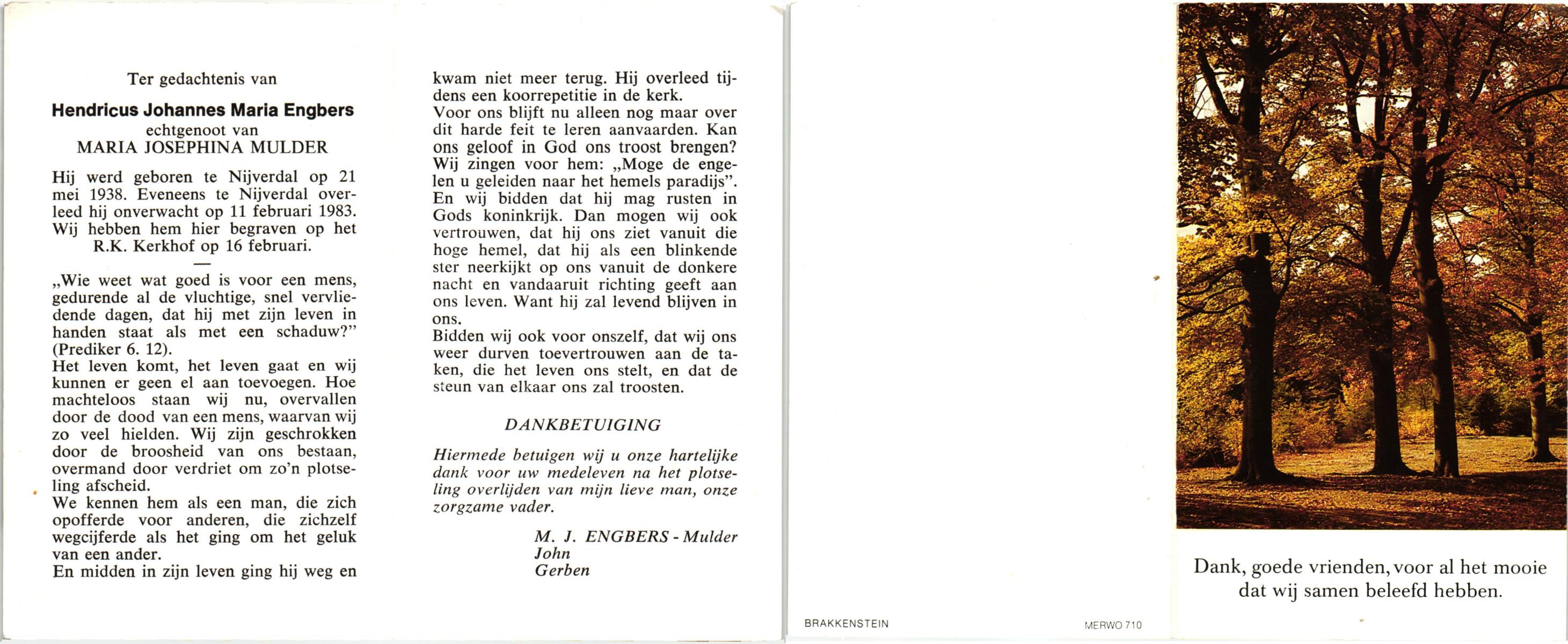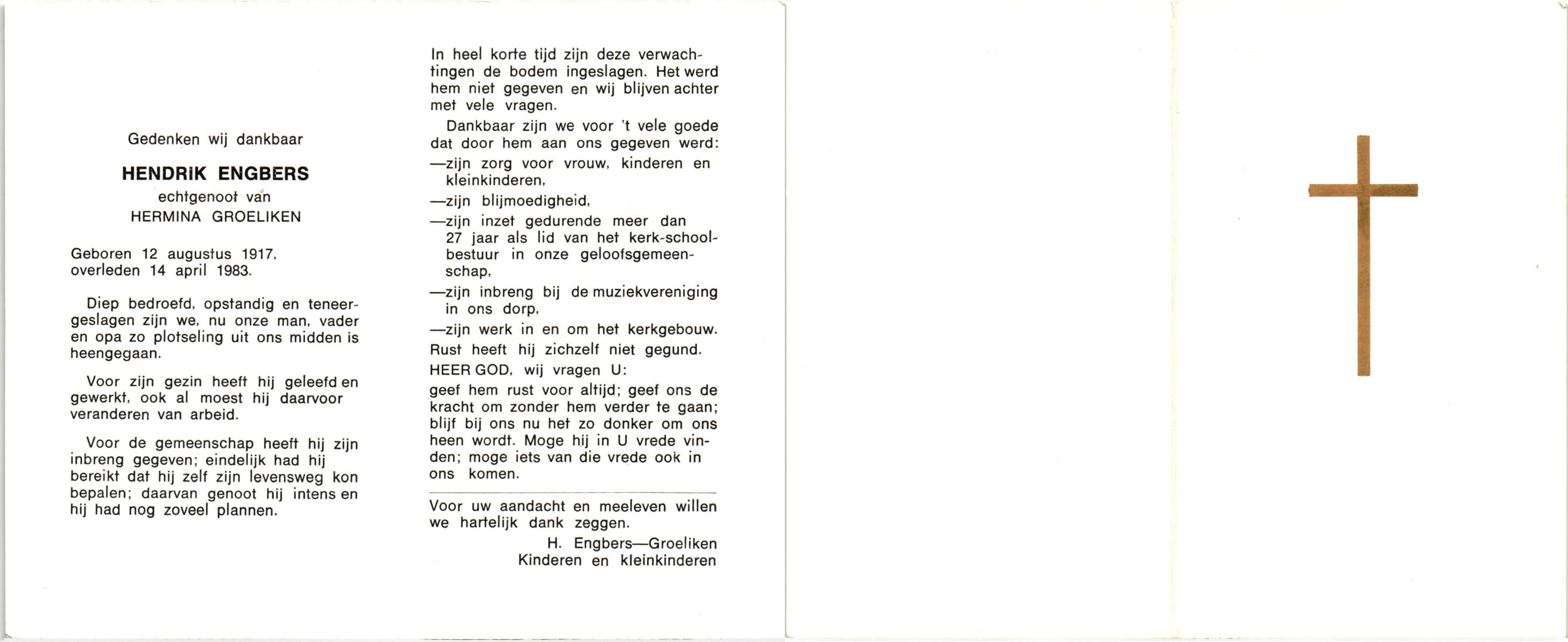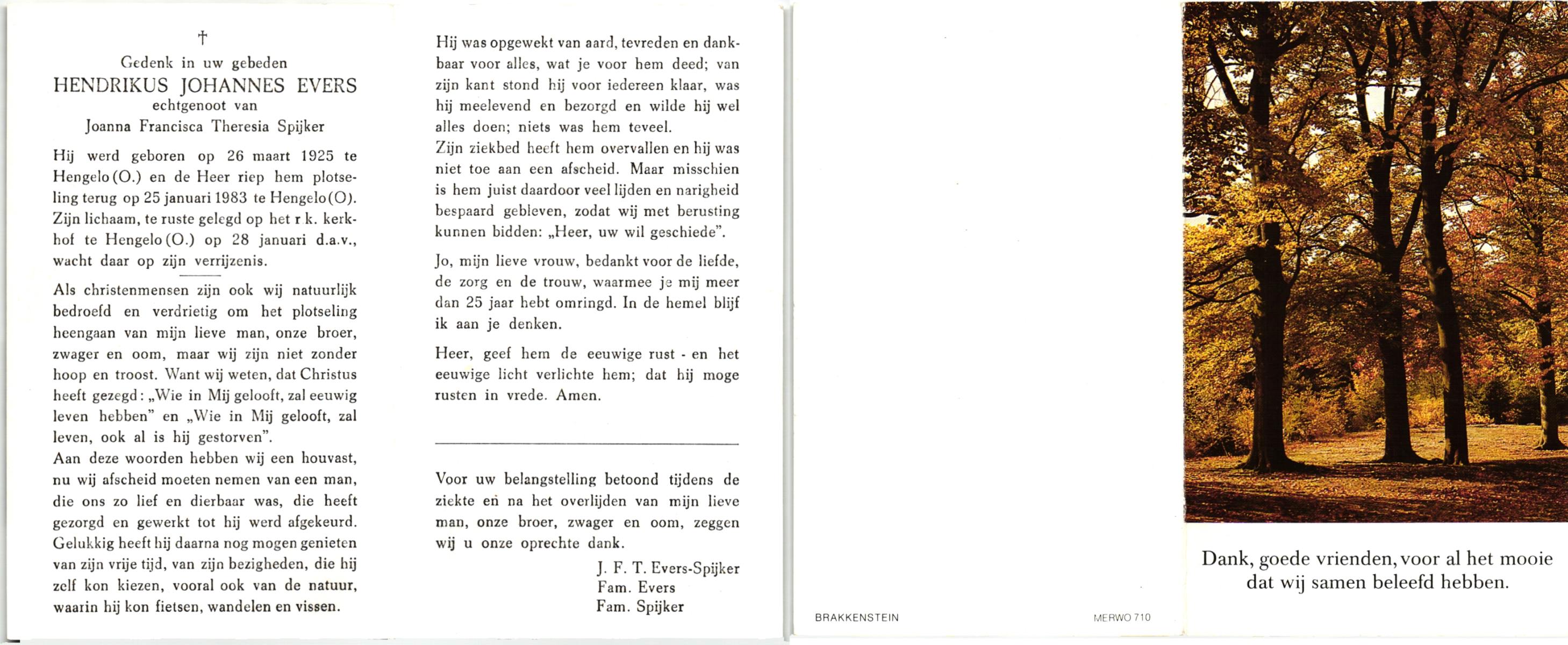 EVERS, , Hendrikus Johannes, geboren op 26-3-1925 te Hengelo (O), overleden op 25-1-1983 te Hengelo (O) op 57-jarige leeftijd, begraven op 28-1-1983 te Hengelo.