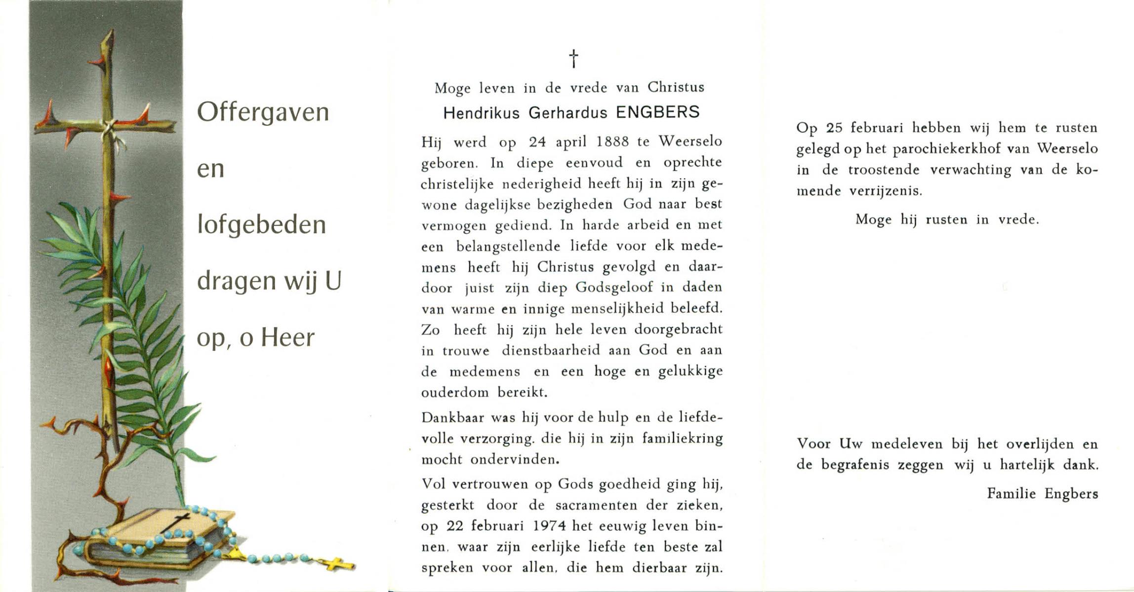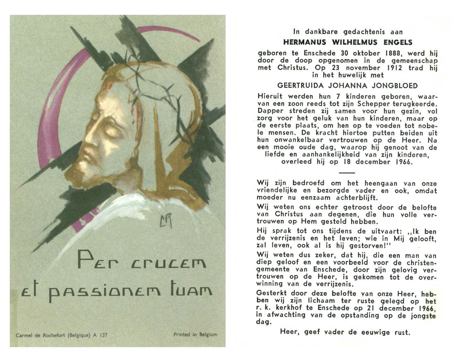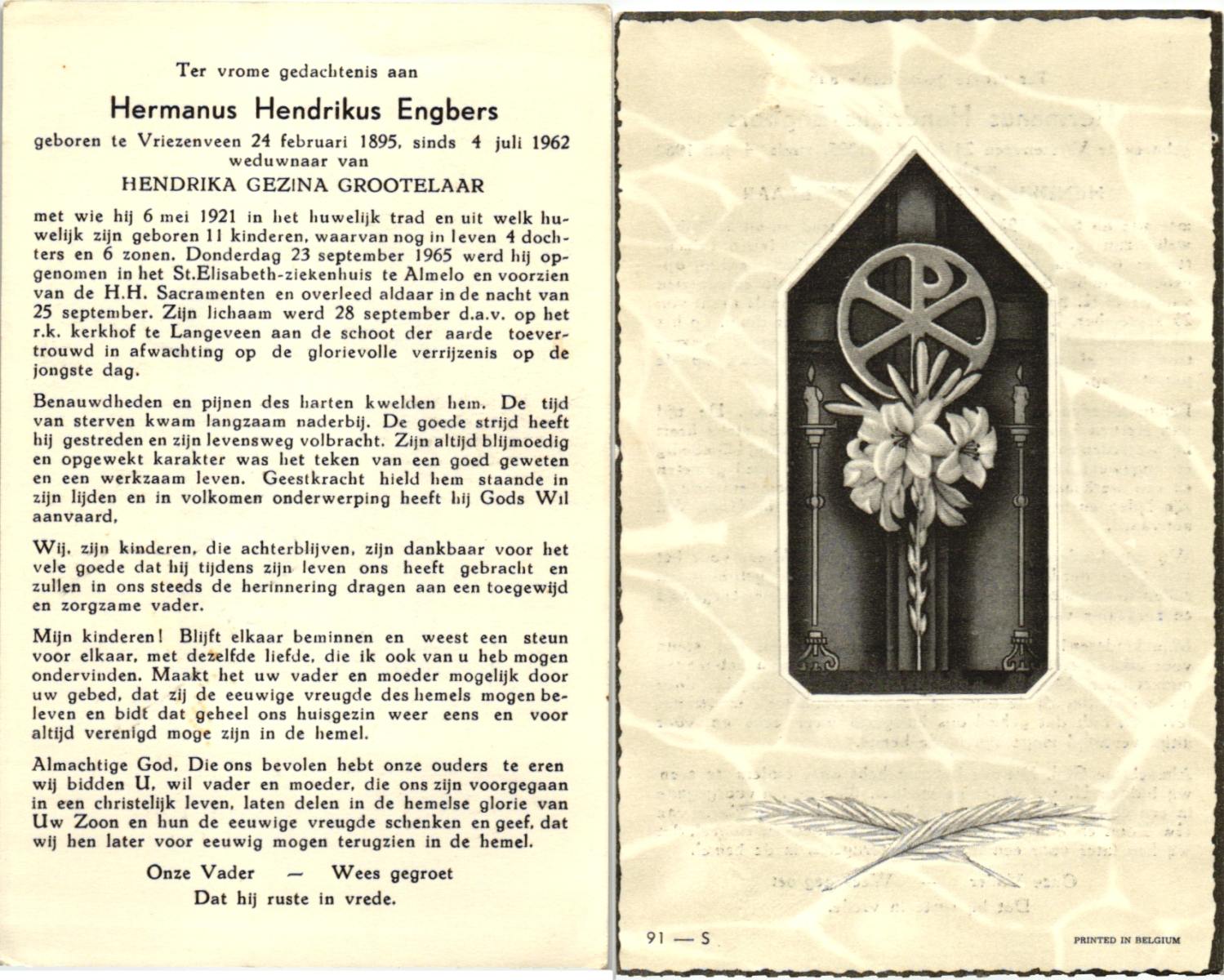 EVERTZEN, Gerrit, geboren op 26-03-1890 te Enschede, overleden op 14-4-1960 te Hengelo (Ov.) op 70-jarige leeftijd, begraven op 16-4-1960 te Hengelo (Ov.).