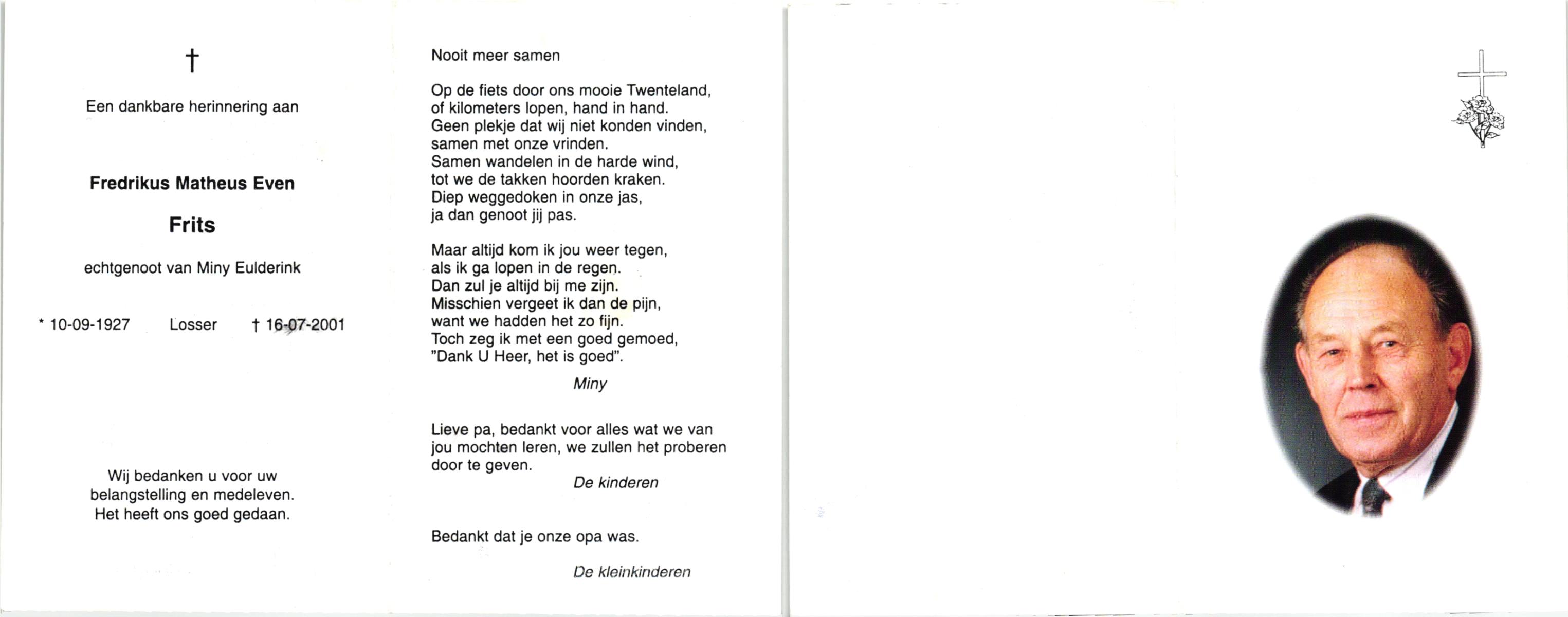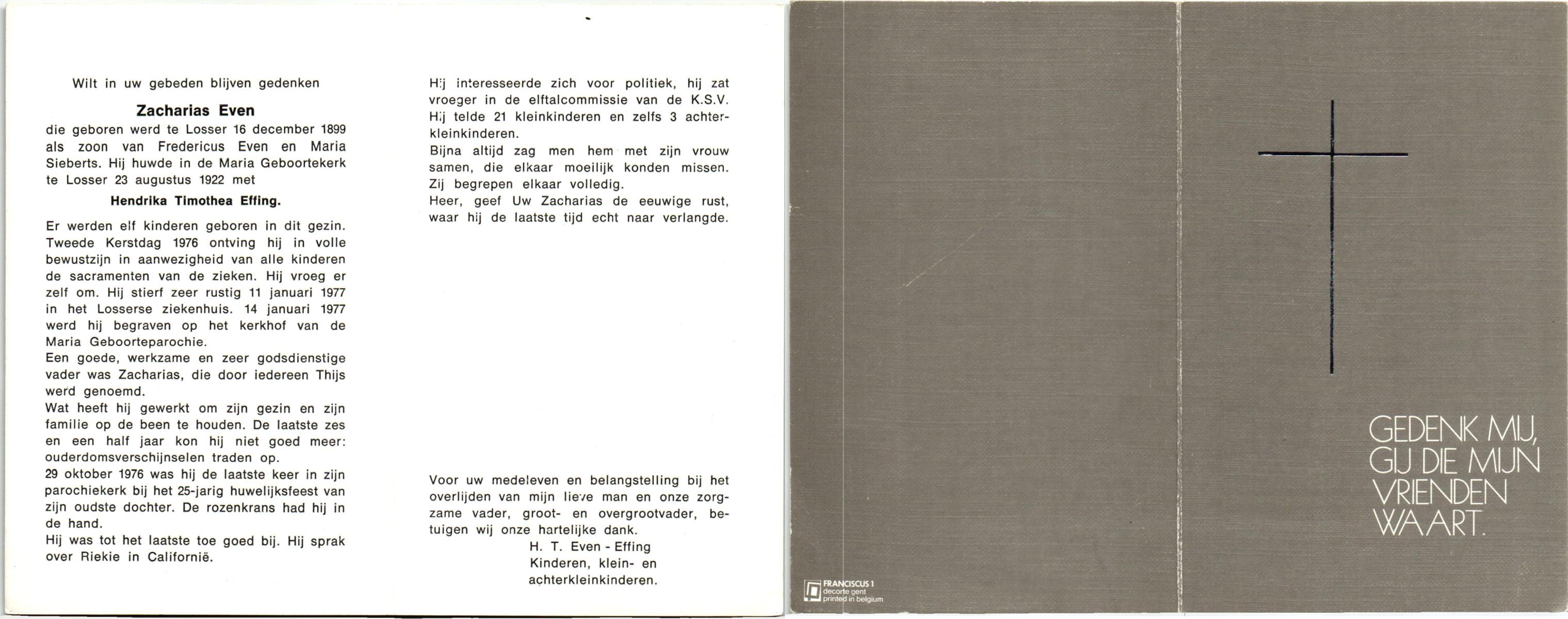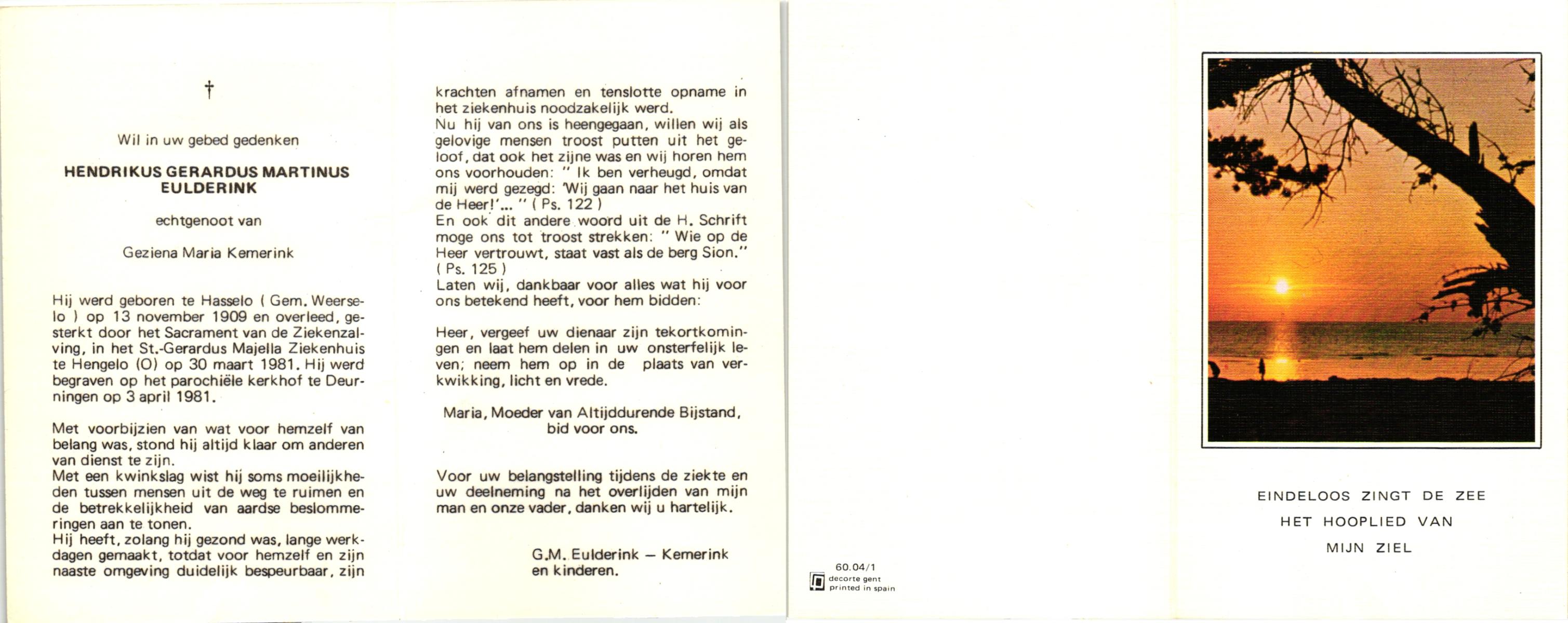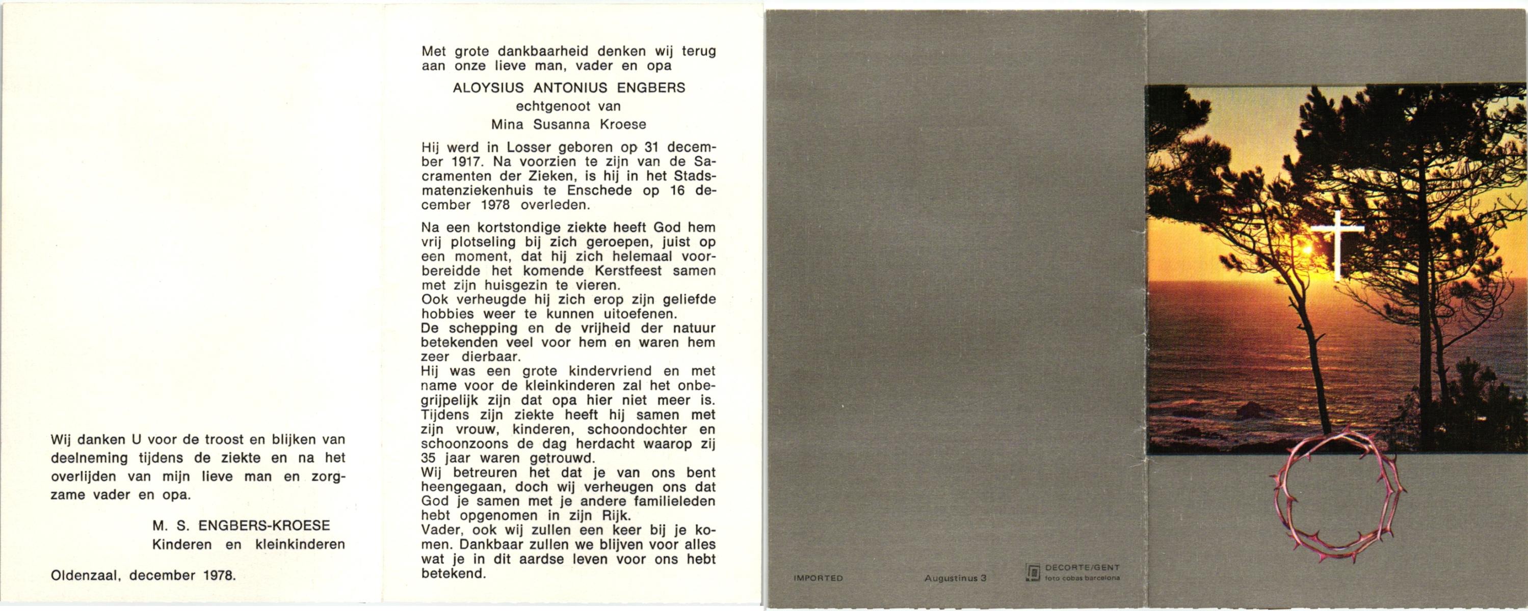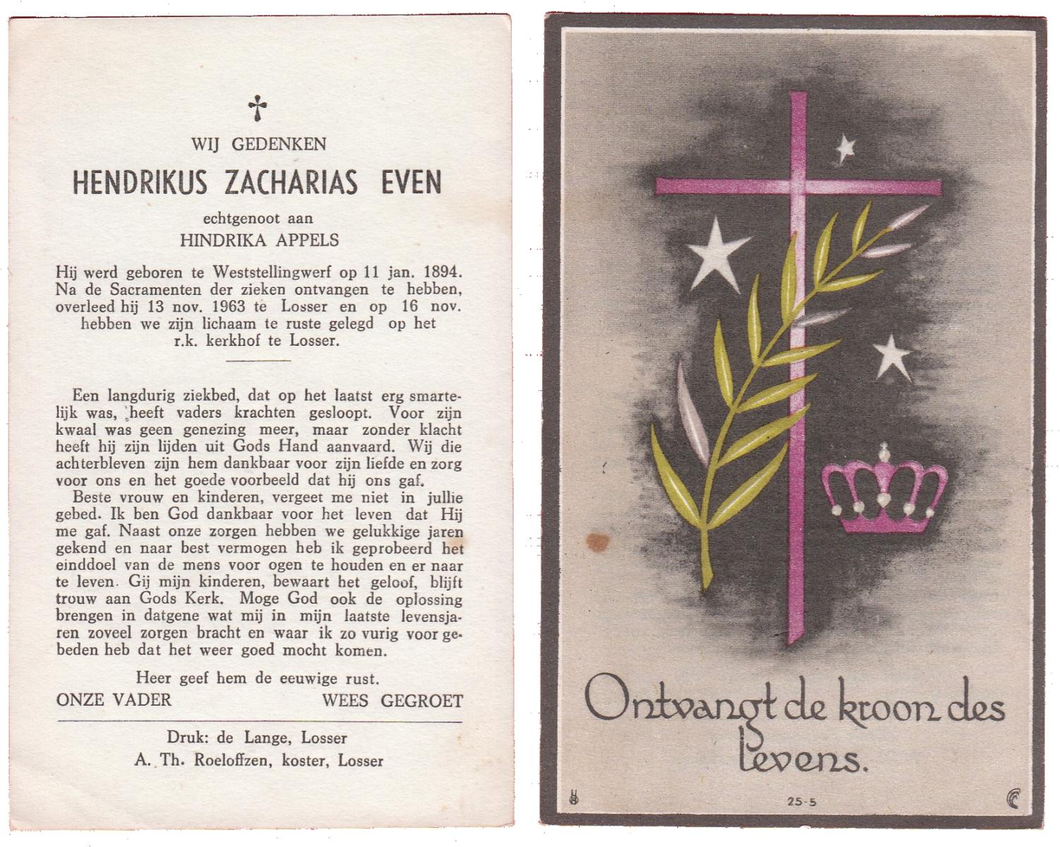 EVERS, Hendrikus Albertus, geboren op 23-07-1893 te Losser, overleden op 24-5-1985 te Losser op 91-jarige leeftijd, begraven op 28-5-1985 te Oldenzaal.