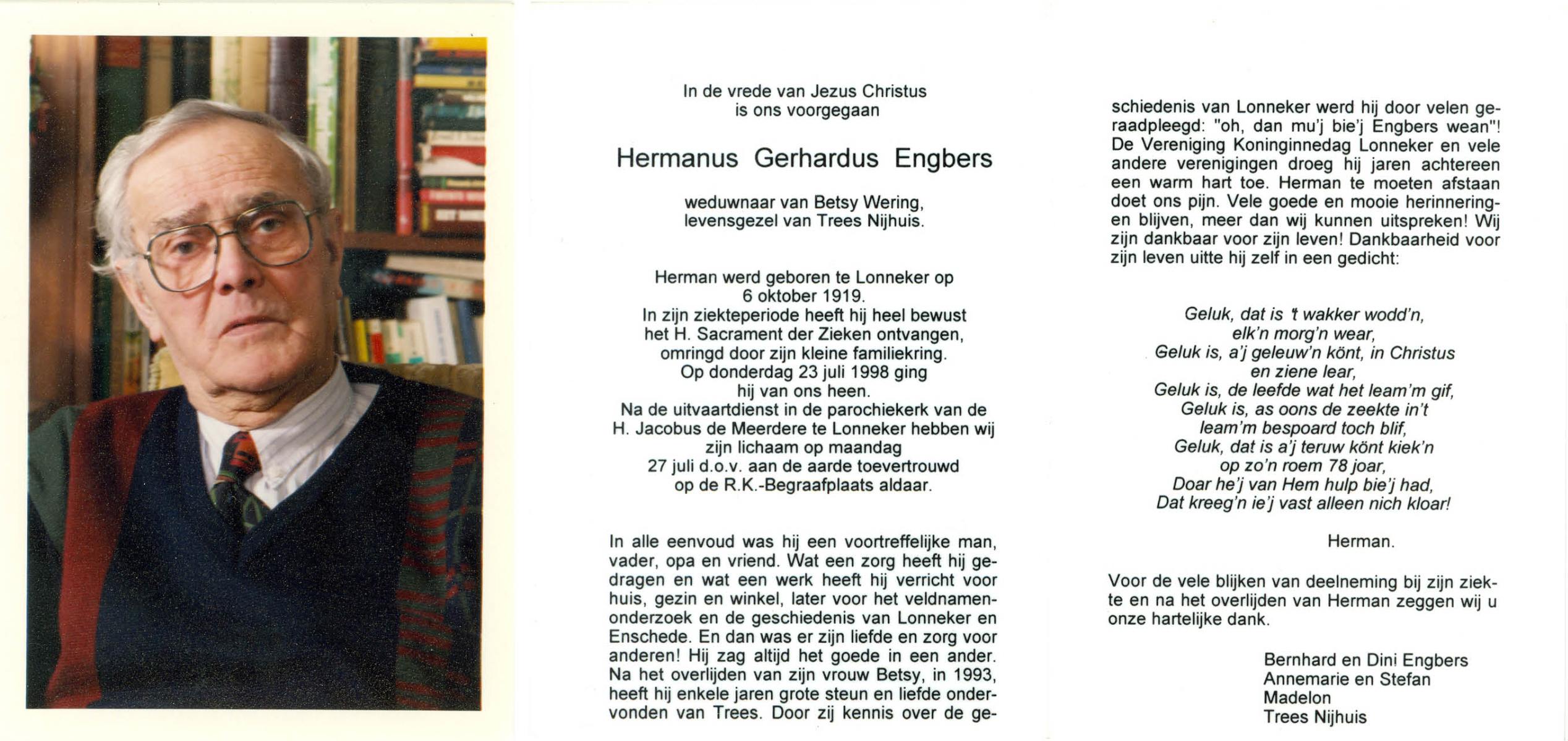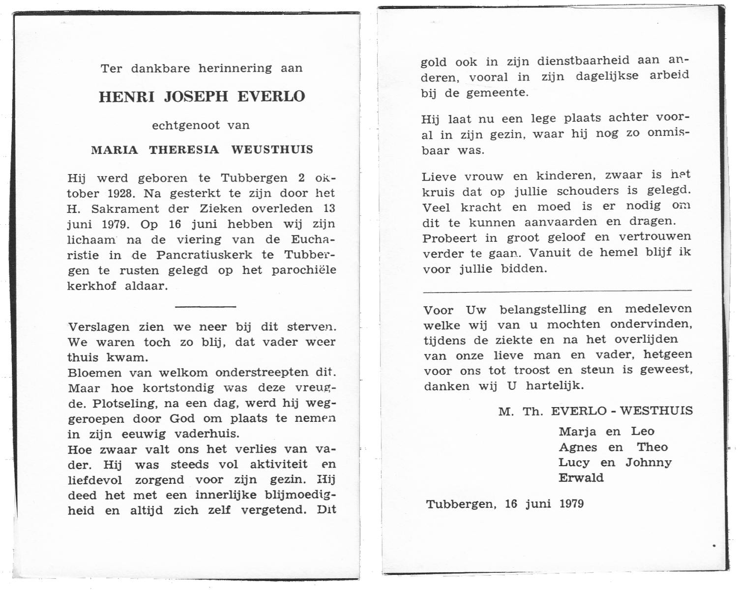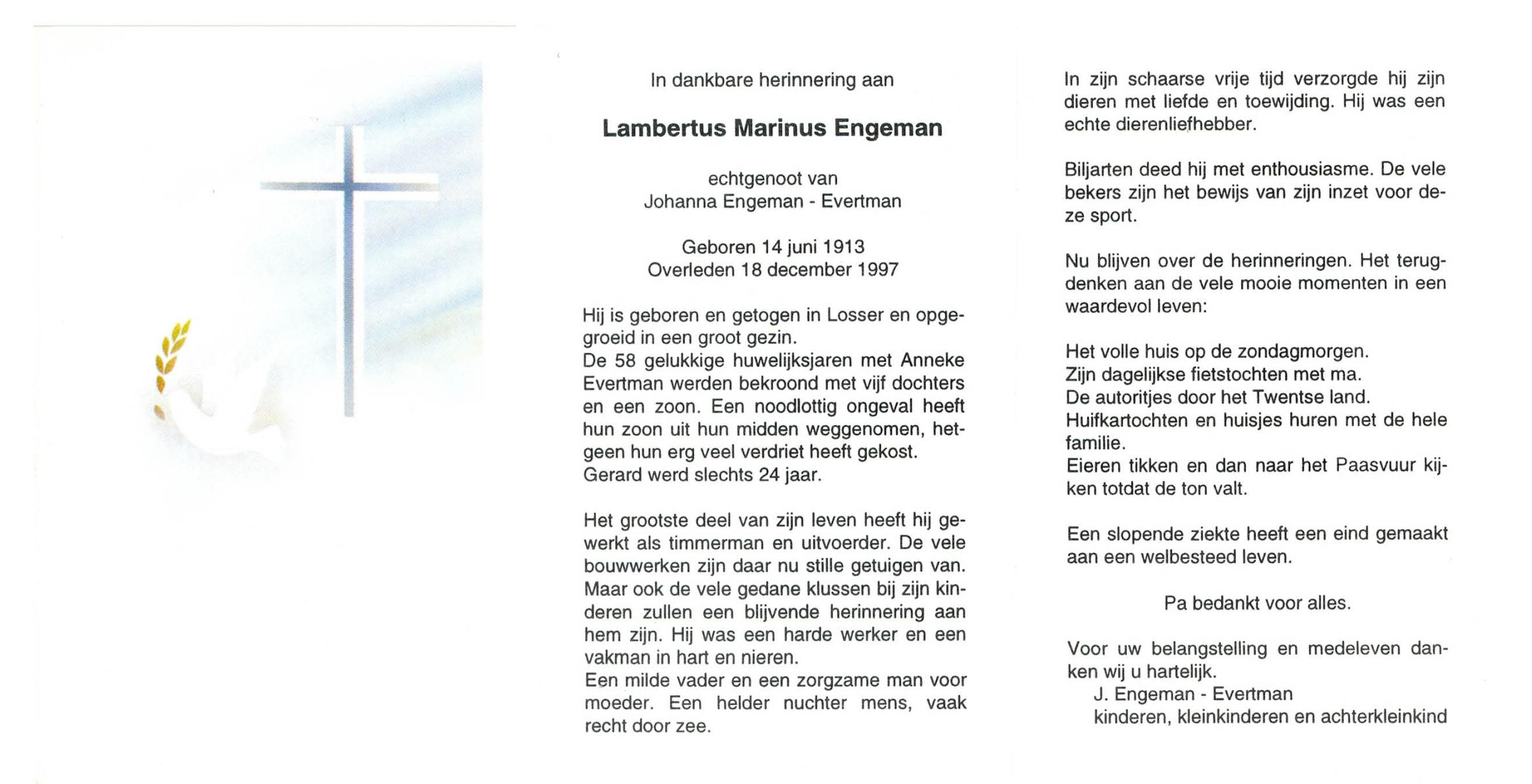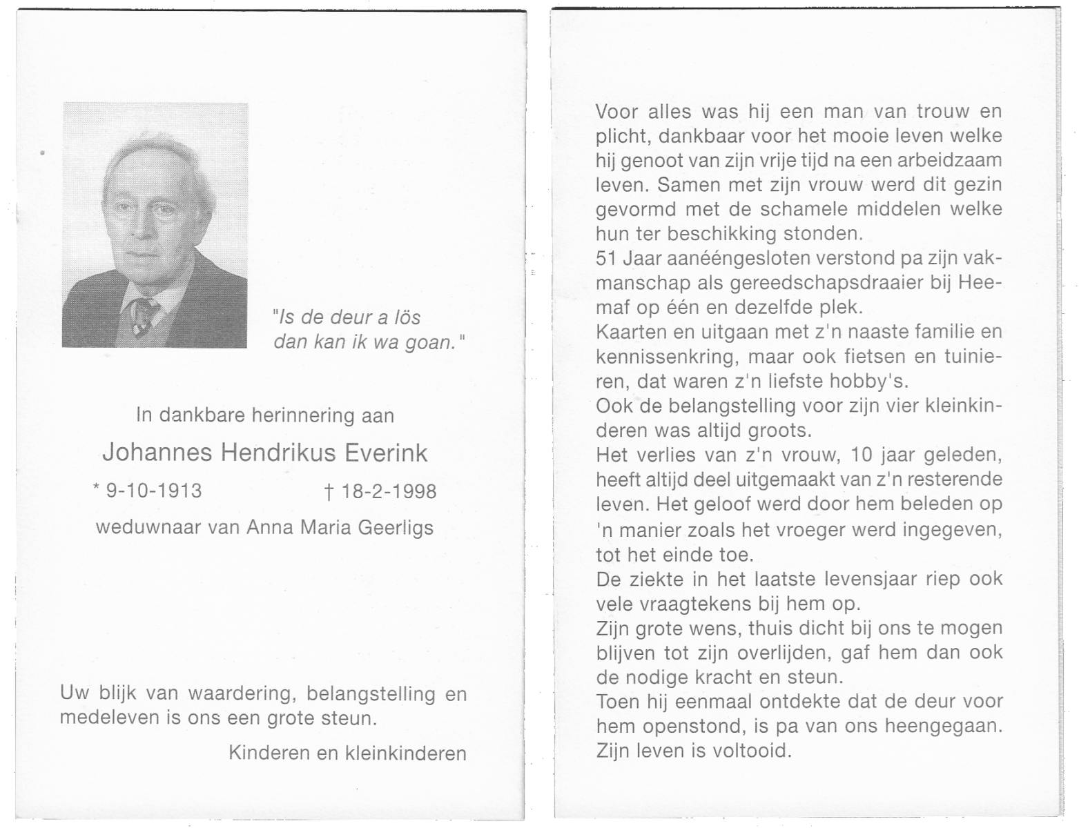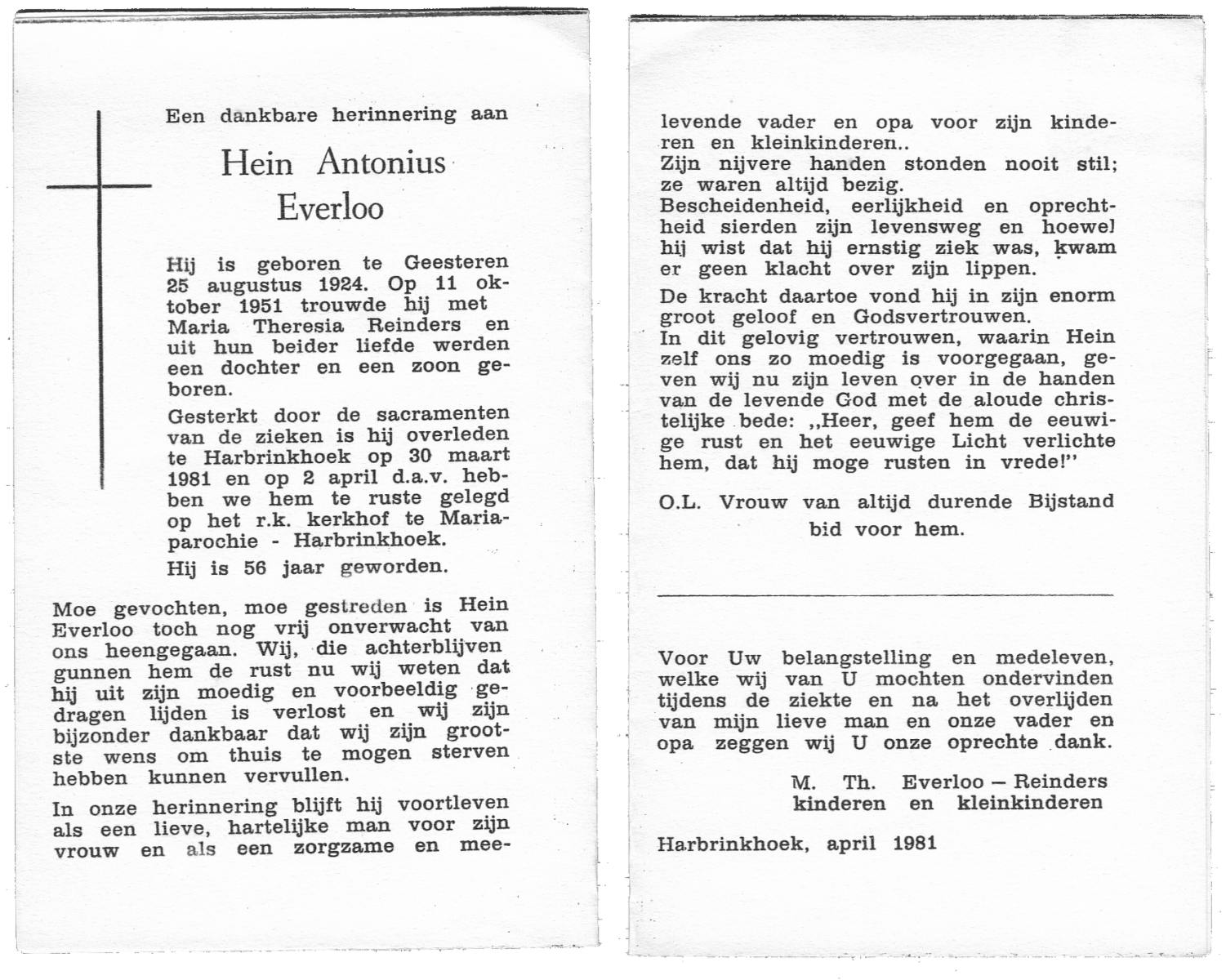 EVERTMAN, Hendrikus Bernardus, geboren op 13-3-1911 te Losser, overleden op 5-9-1993 te Losser op 82-jarige leeftijd, begraven op 9-9-1993 te Losser.
