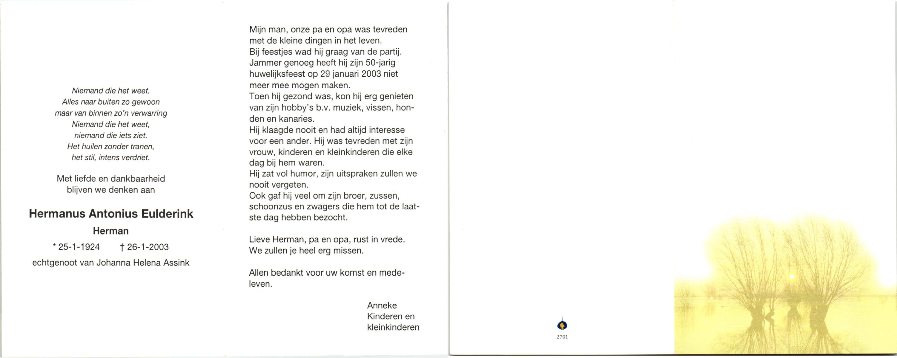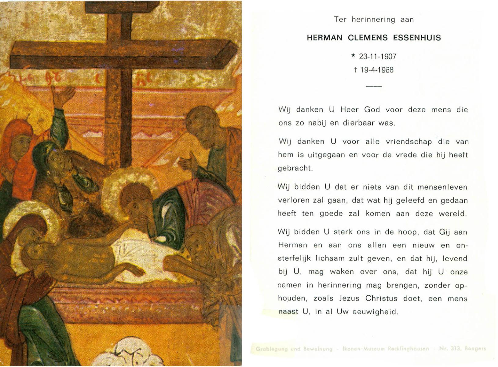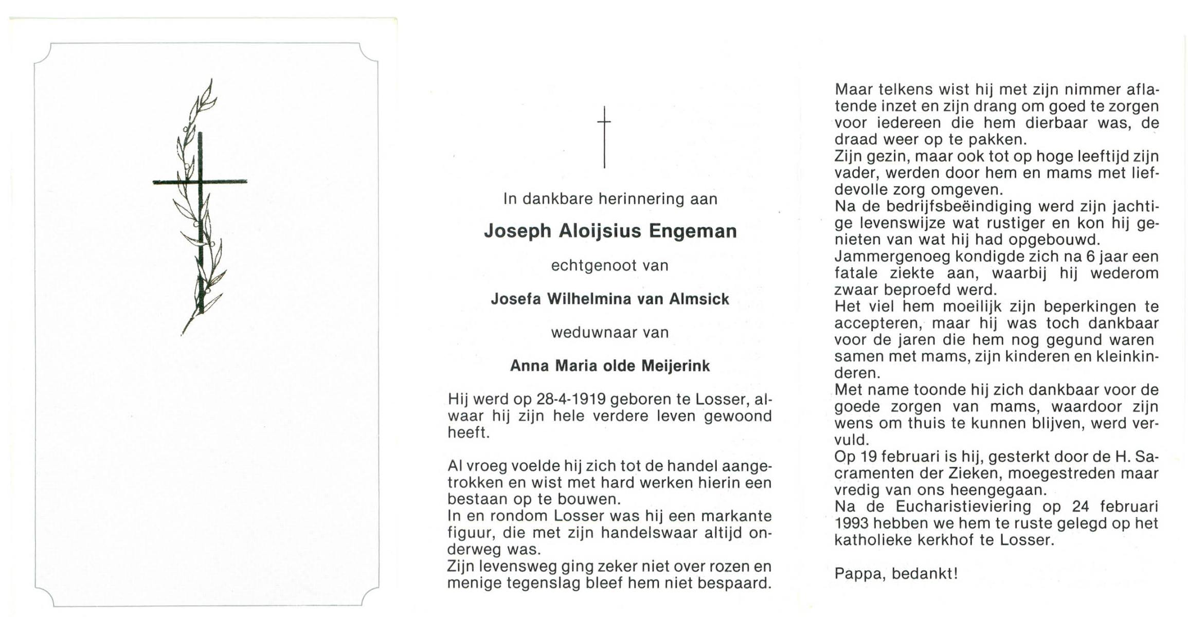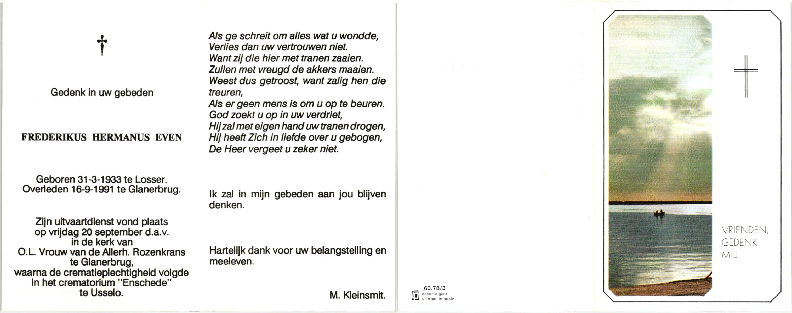EVERTMAN, Hendrikus Bernardus, geboren op 13-3-1911 te Losser, overleden op 5-9-1993 te Losser op 82-jarige leeftijd, begraven op 9-9-1993 te Losser.