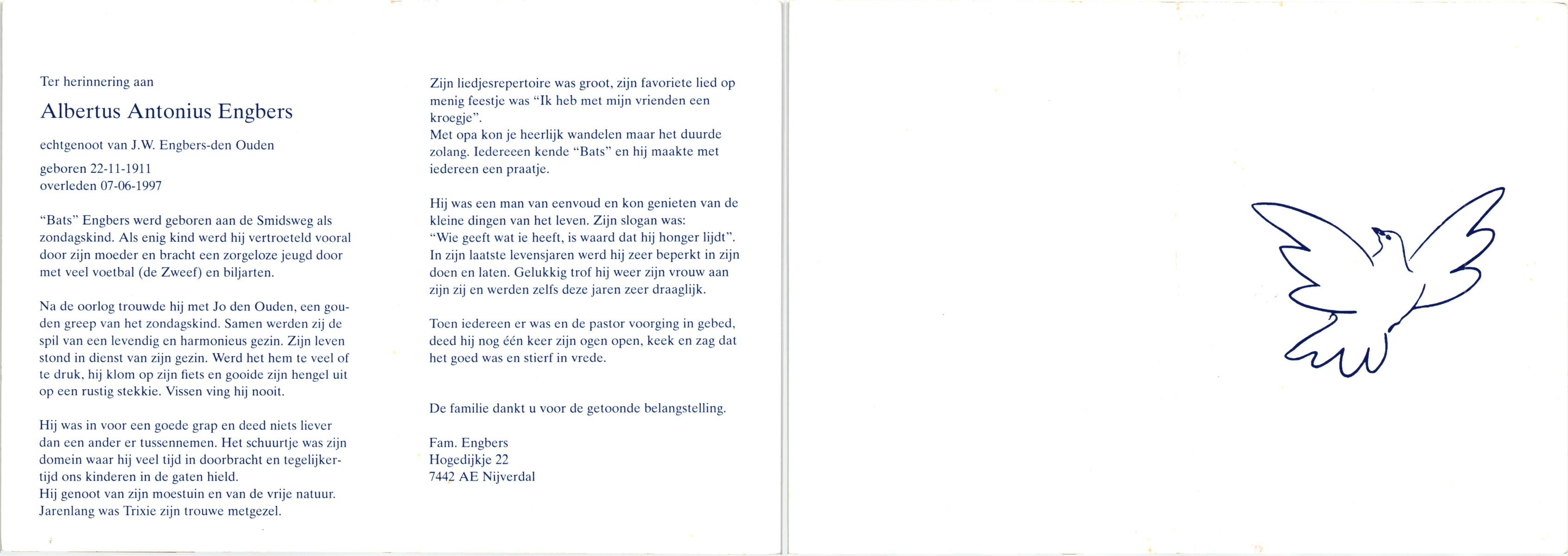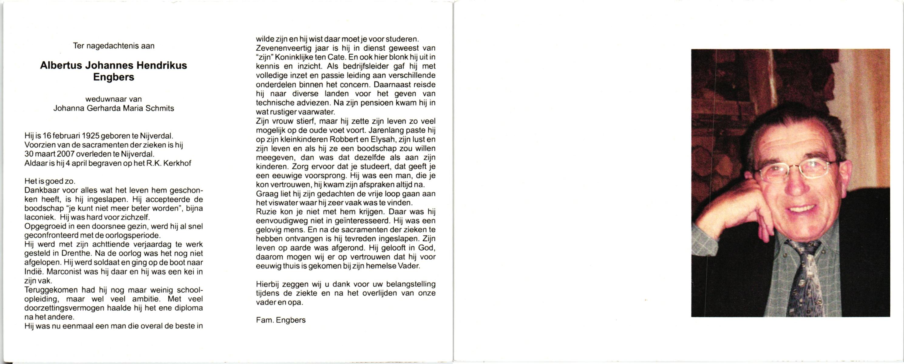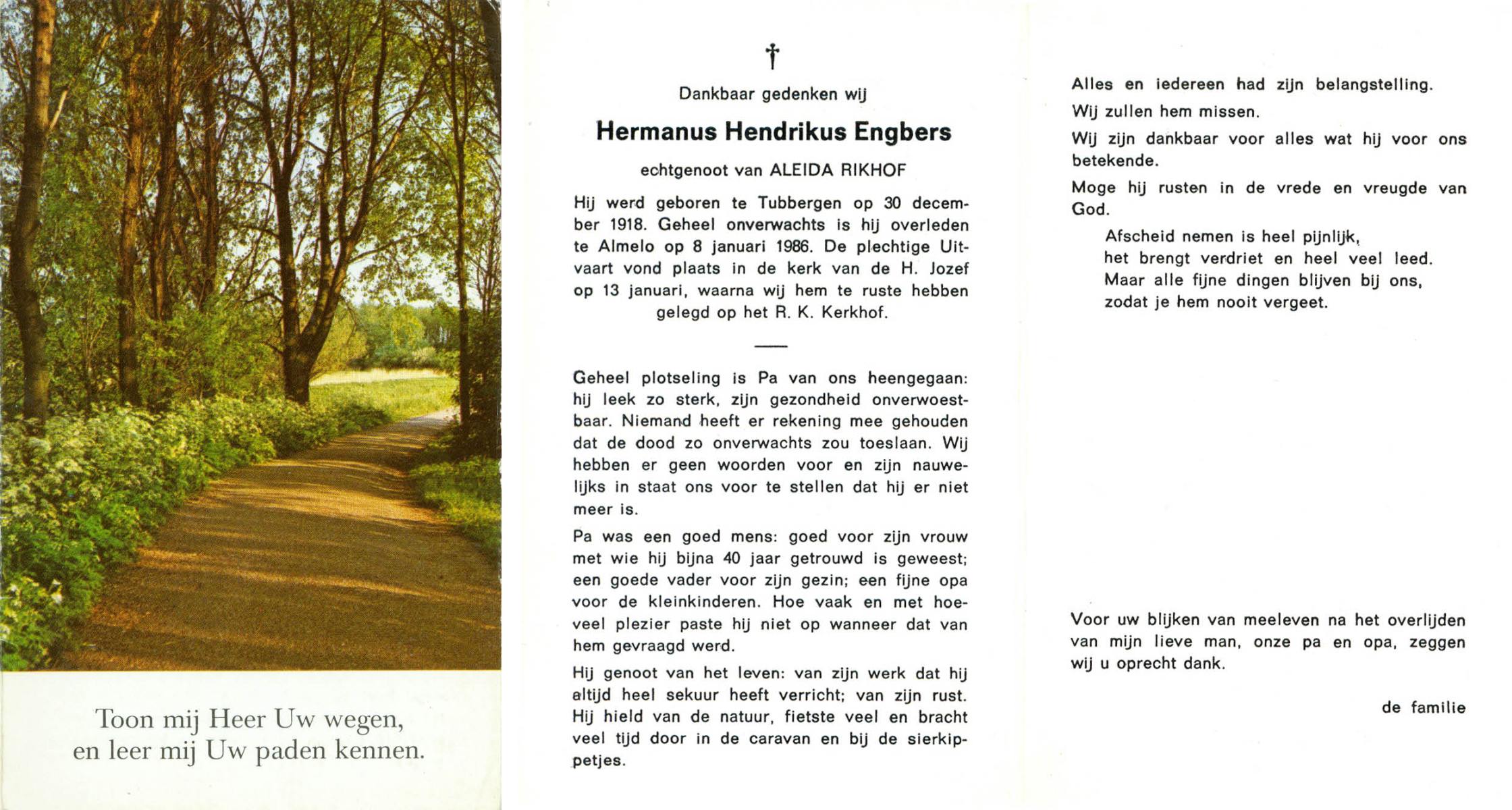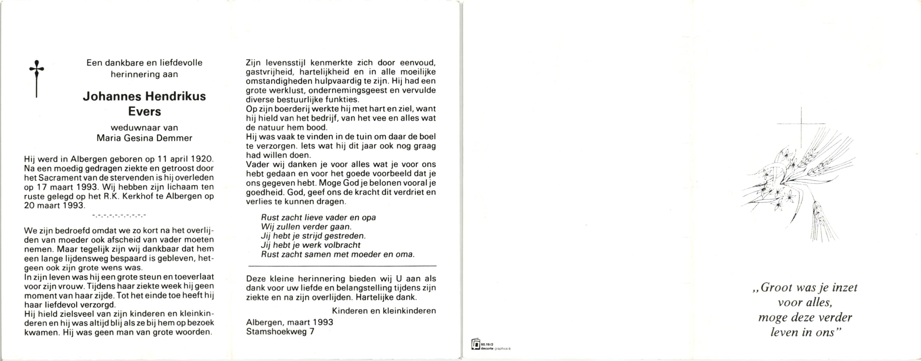 EVERS, , Johannes Hendrikus, geboren op 11-4-1920 te Albergen, overleden op 17-3-1993 op 72-jarige leeftijd, begraven op 20-3-1993 te Albergen.