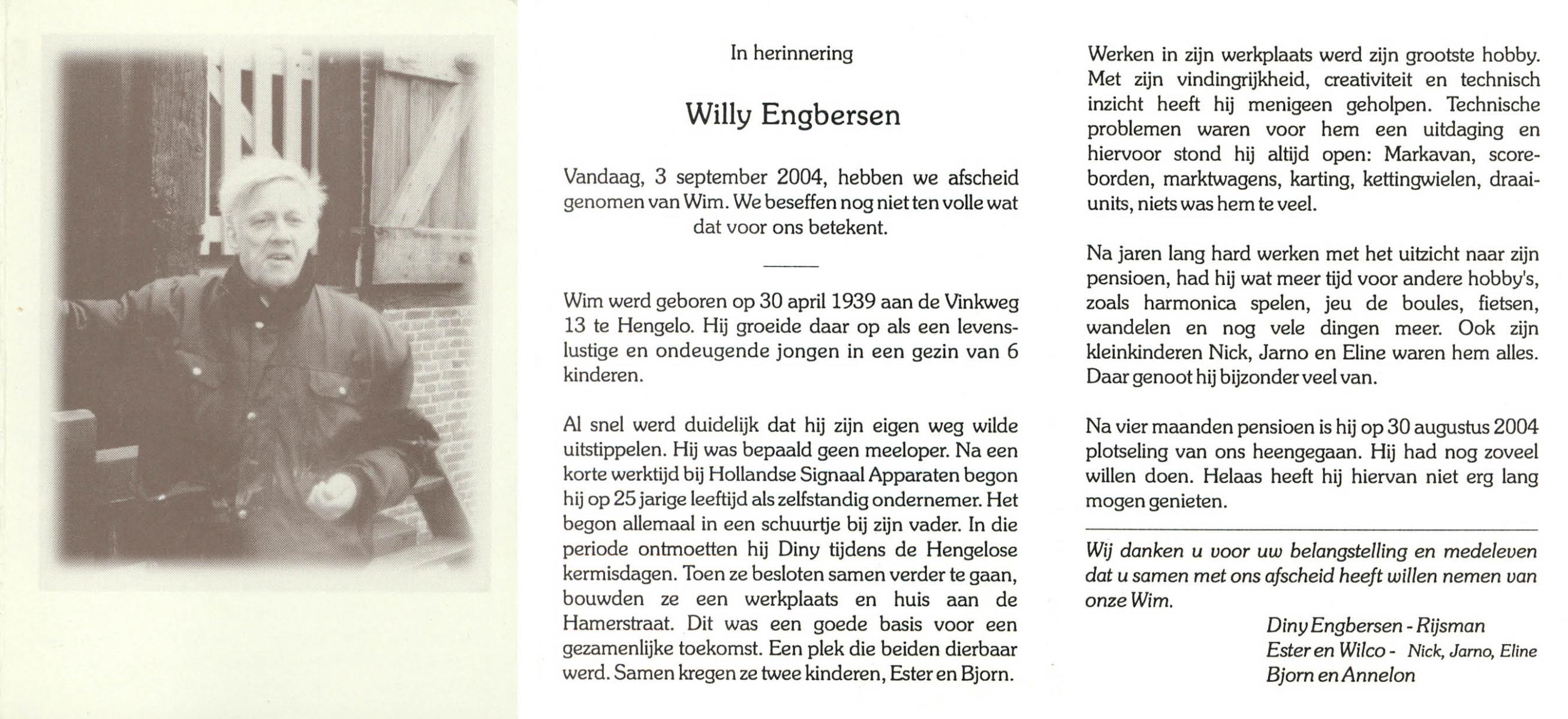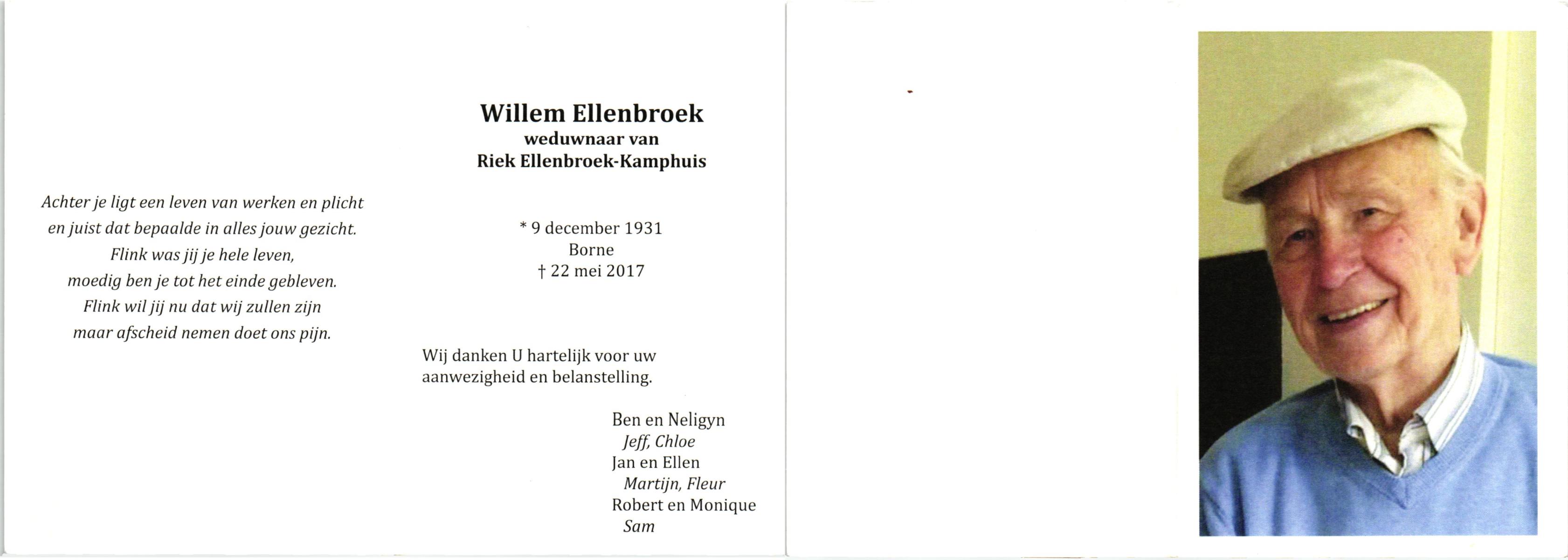 ELLENBROEK, Willem, geboren op 9-12-1931 te Borne, overleden op 22-5-2017 te Borne op 85-jarige leeftijd.