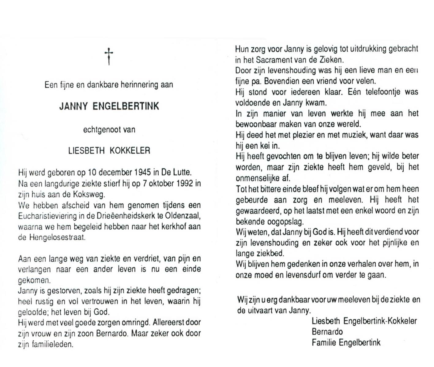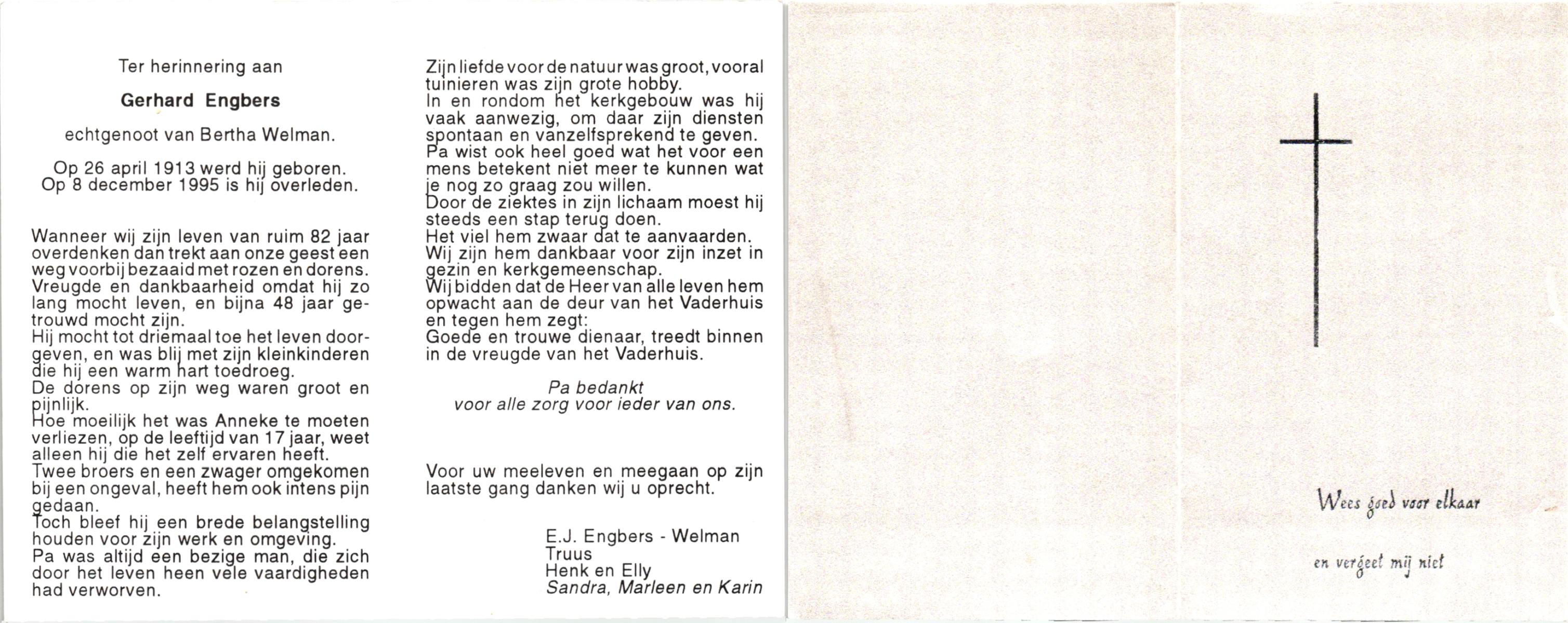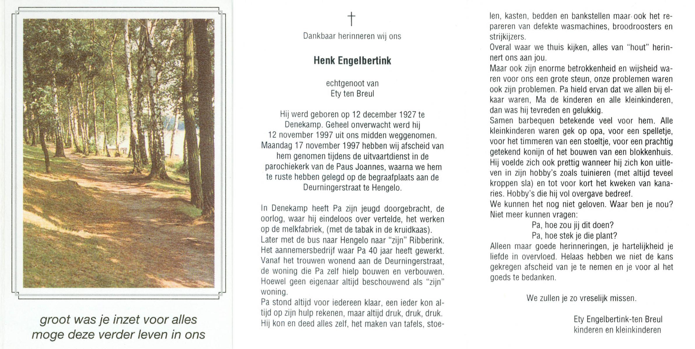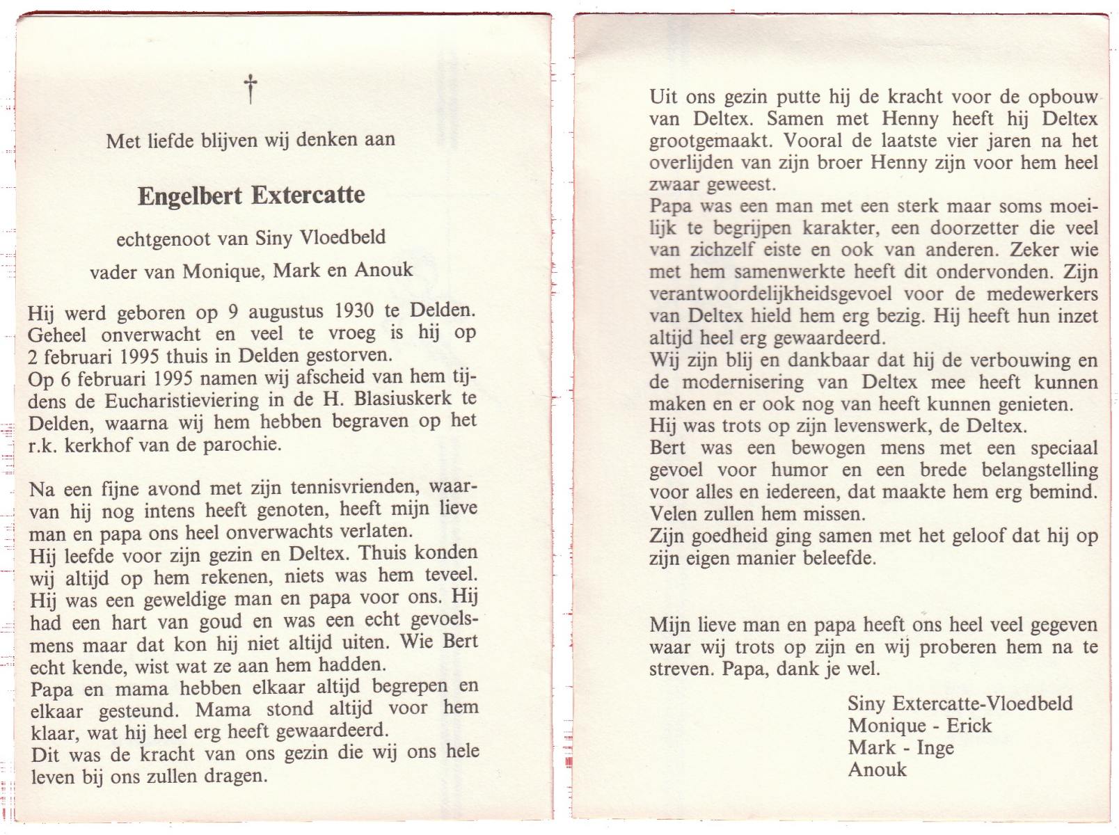 EXTERCATTE, Engelbert, geboren op 9-8-1930 te Delden, overleden op 2-2-1995 te Delden op 54-jarige leeftijd, begraven op 6-2-1995 te Delden.