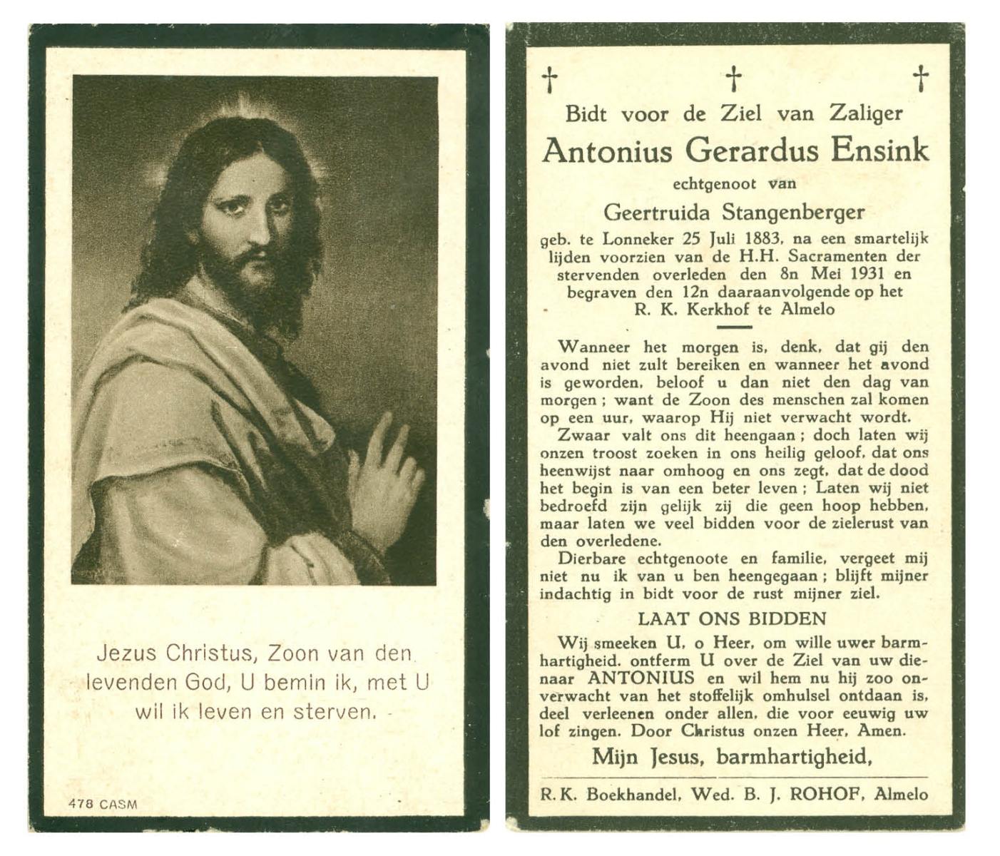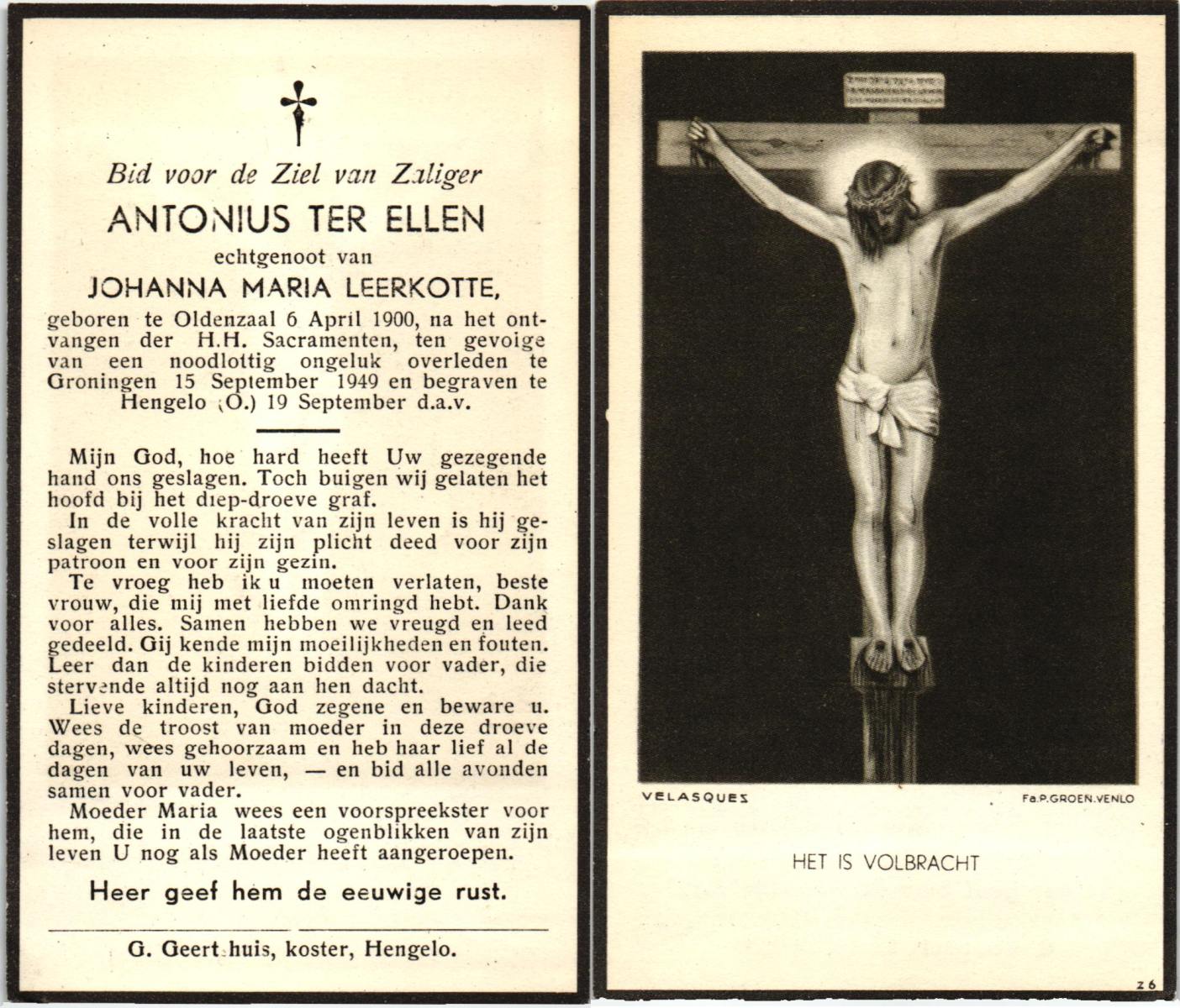 ELLEN, ter, Antonius, geboren op 6-4-1900 te Oldenzaal, overleden op 15-9-1949 te Groningen op 49-jarige leeftijd, begraven op 19-9-1949 te Hengelo.