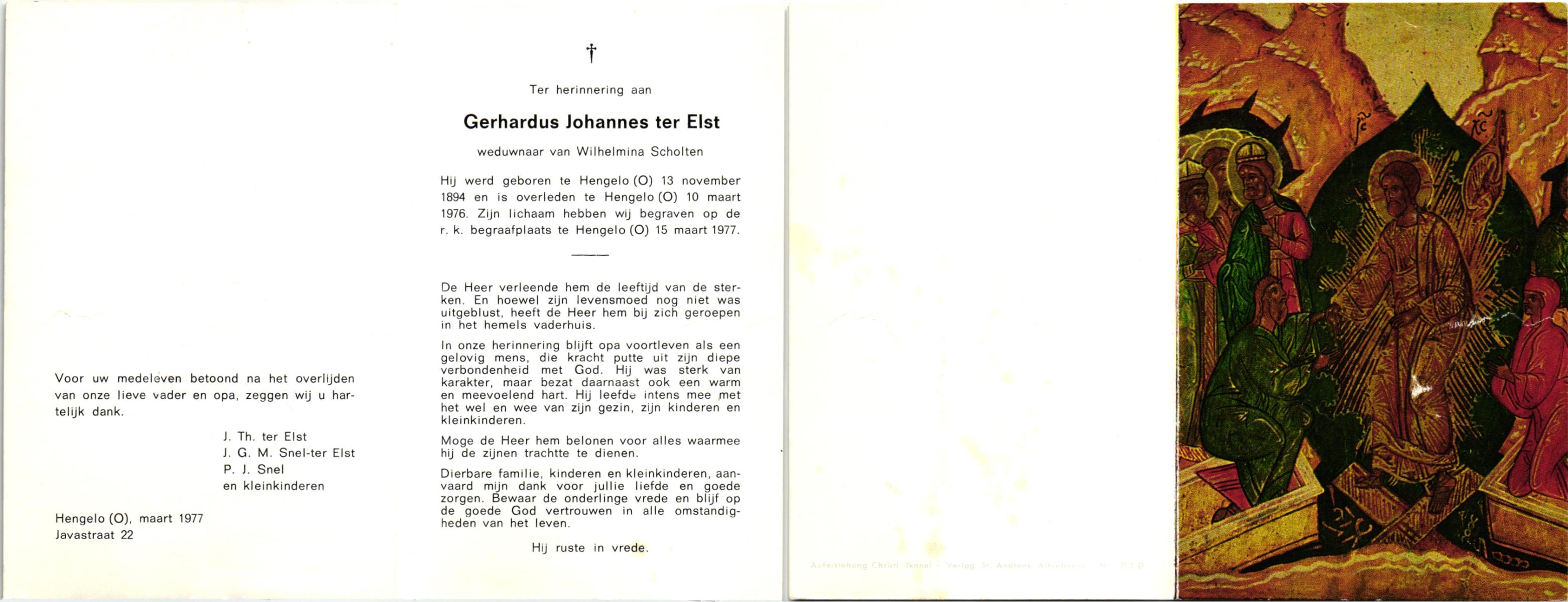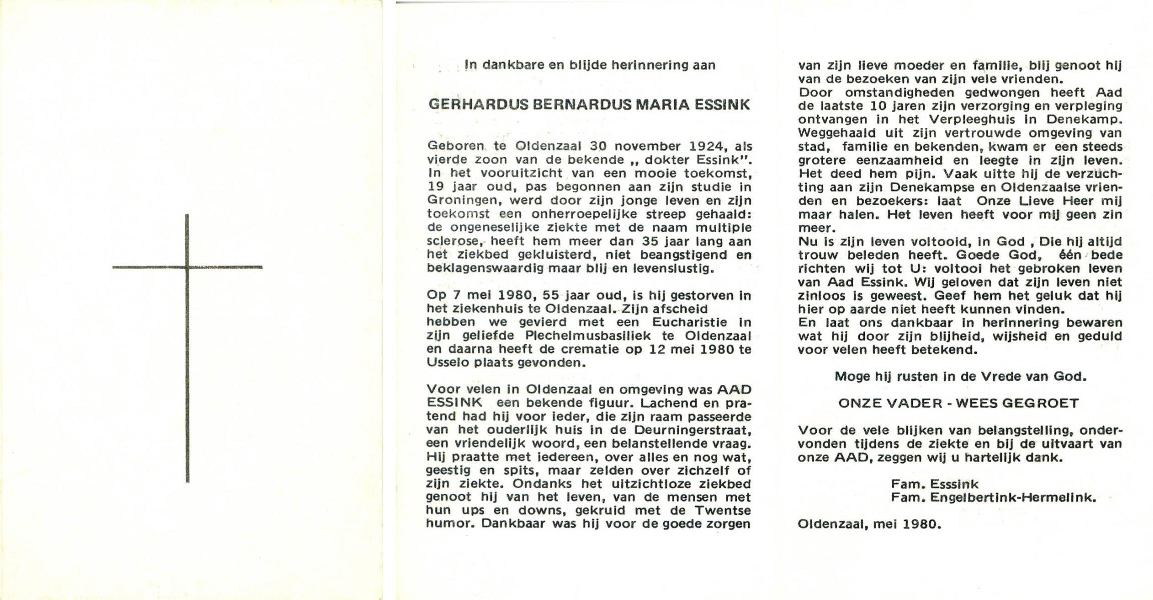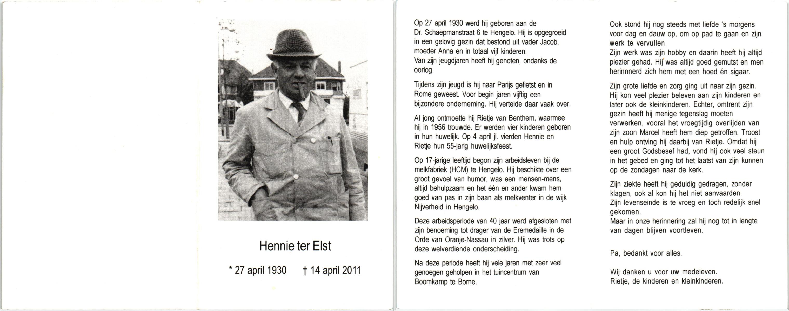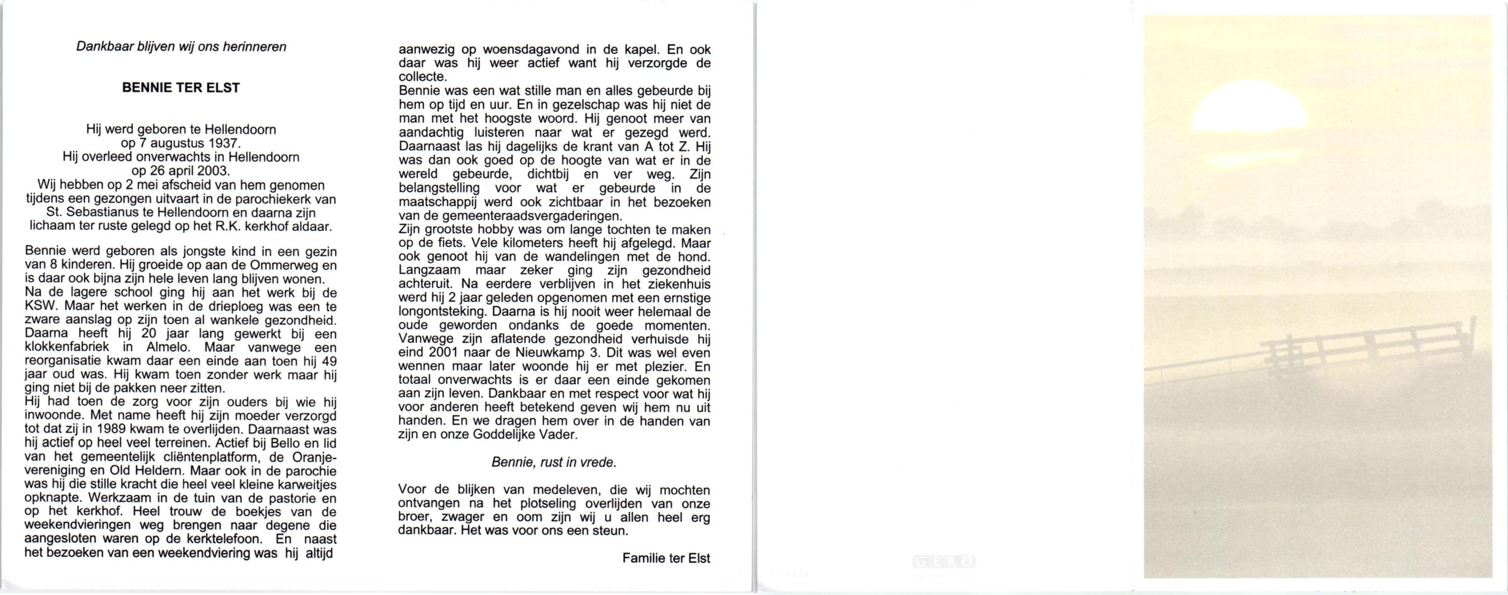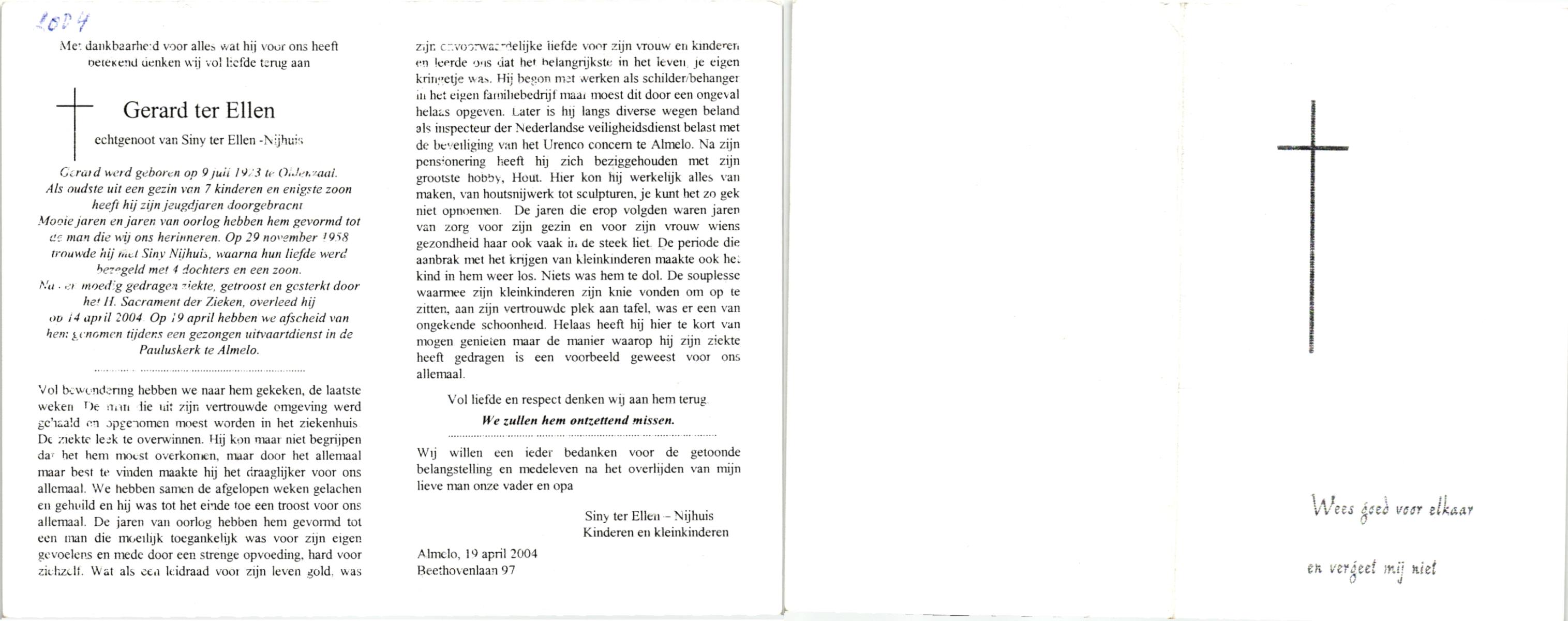 ELLEN, ter, Gerard, geboren op 9-7-1923 te Oldenzaal, overleden op 14-4-2004 op 80-jarige leeftijd.