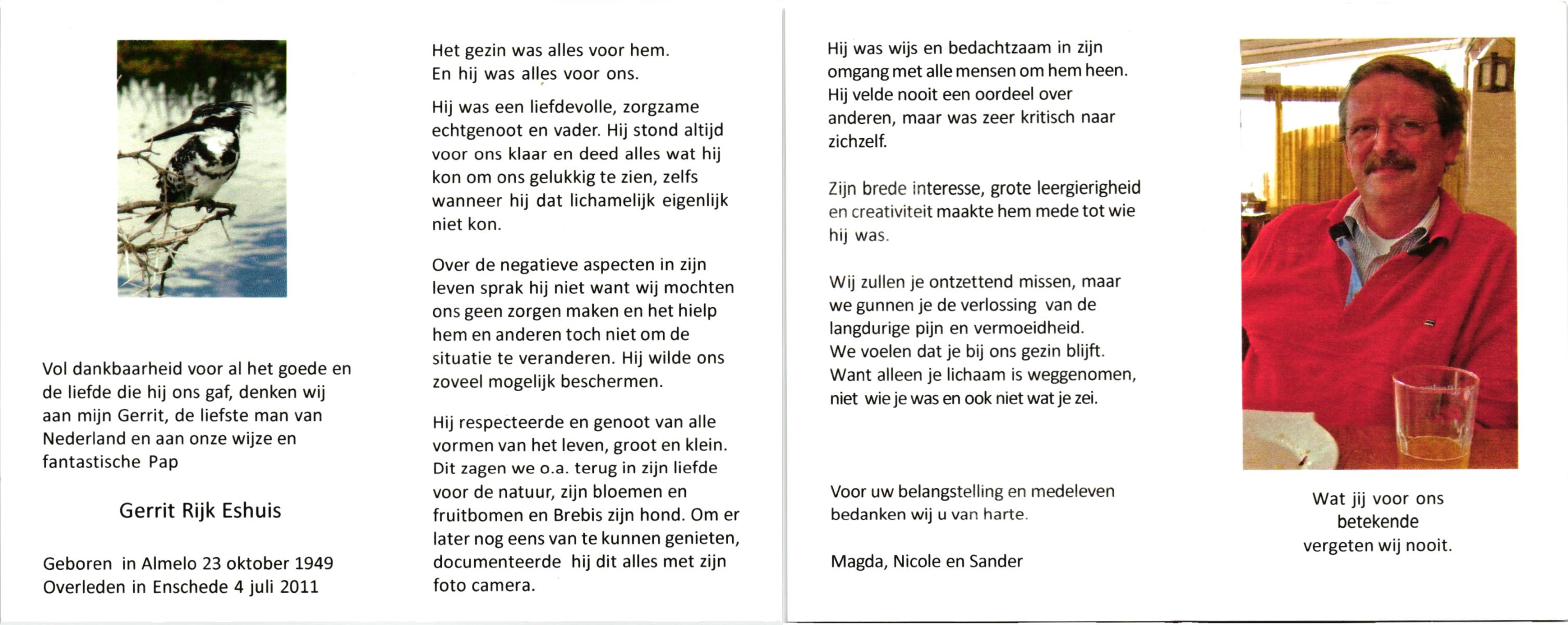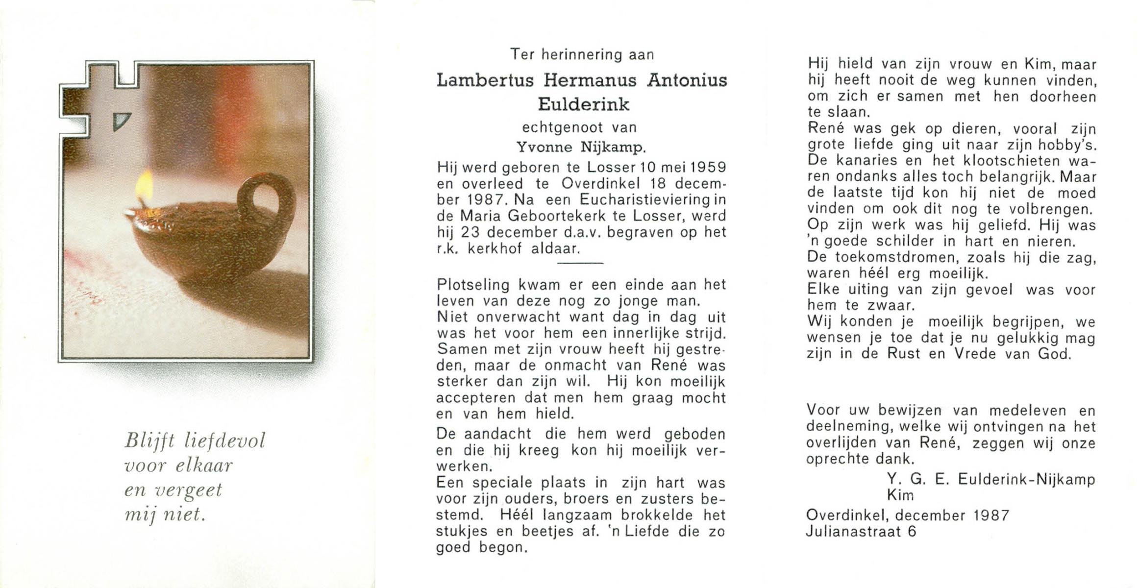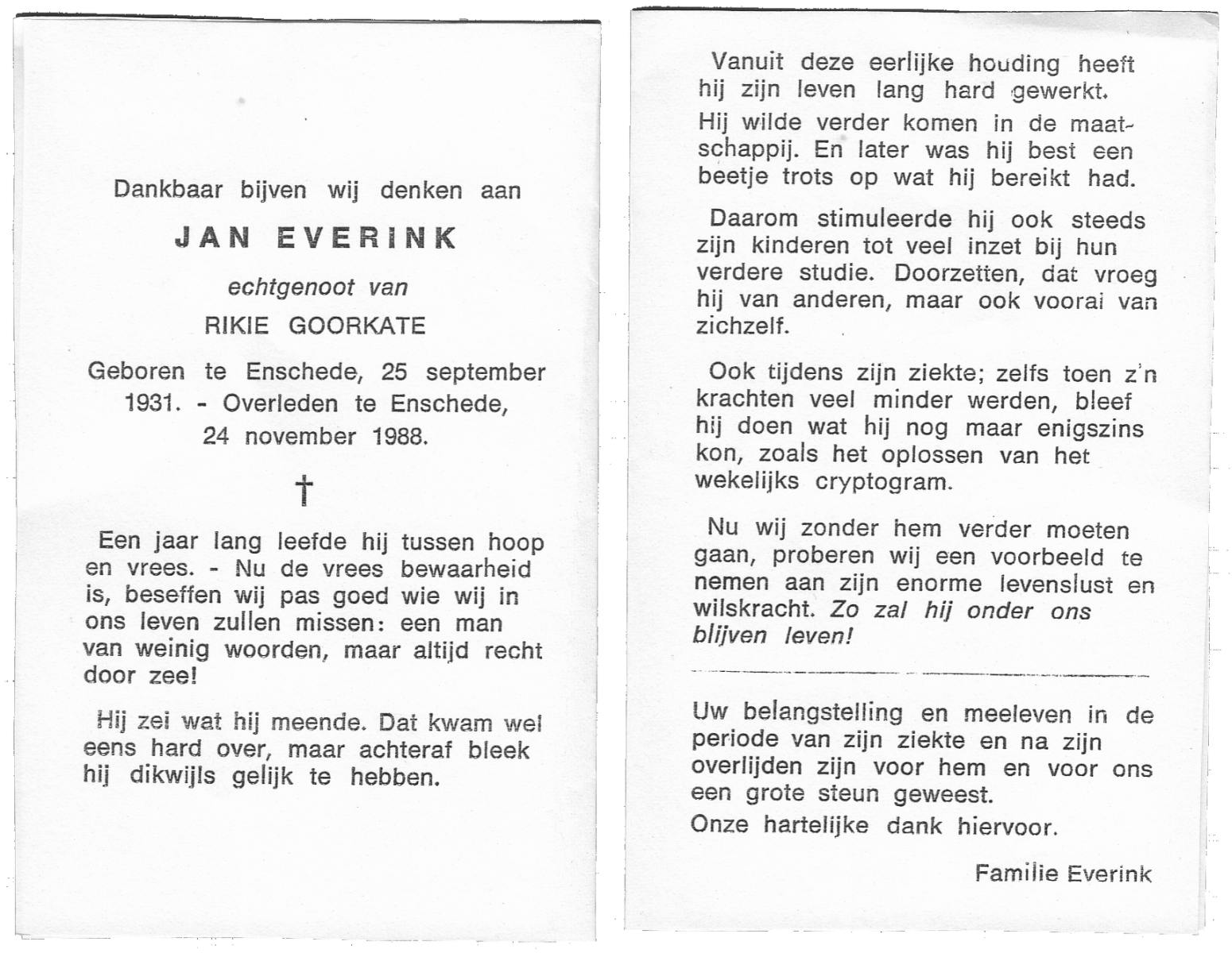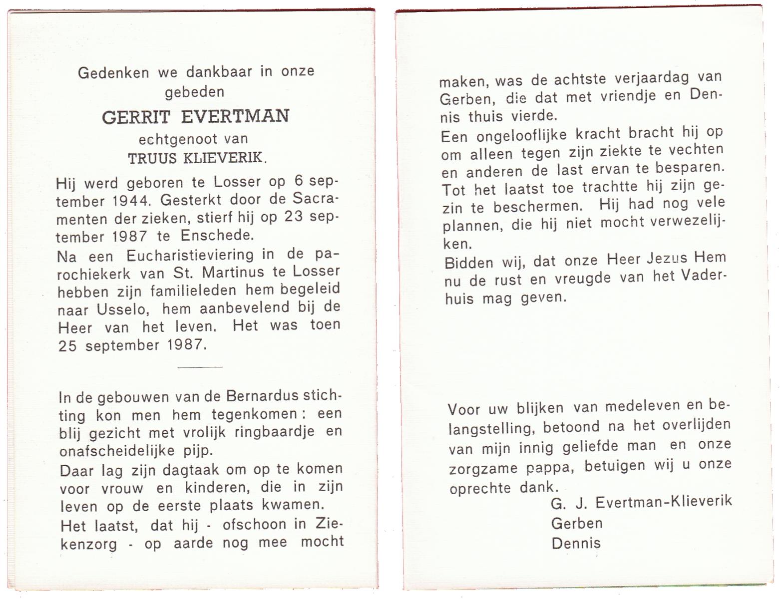 EVERTMAN, Gerrit, geboren op 6-9-1944 te Losser, overleden op 23-9-1987 te Enschede op 43-jarige leeftijd, gecremeerd op 25-9-1987 te Usselo.