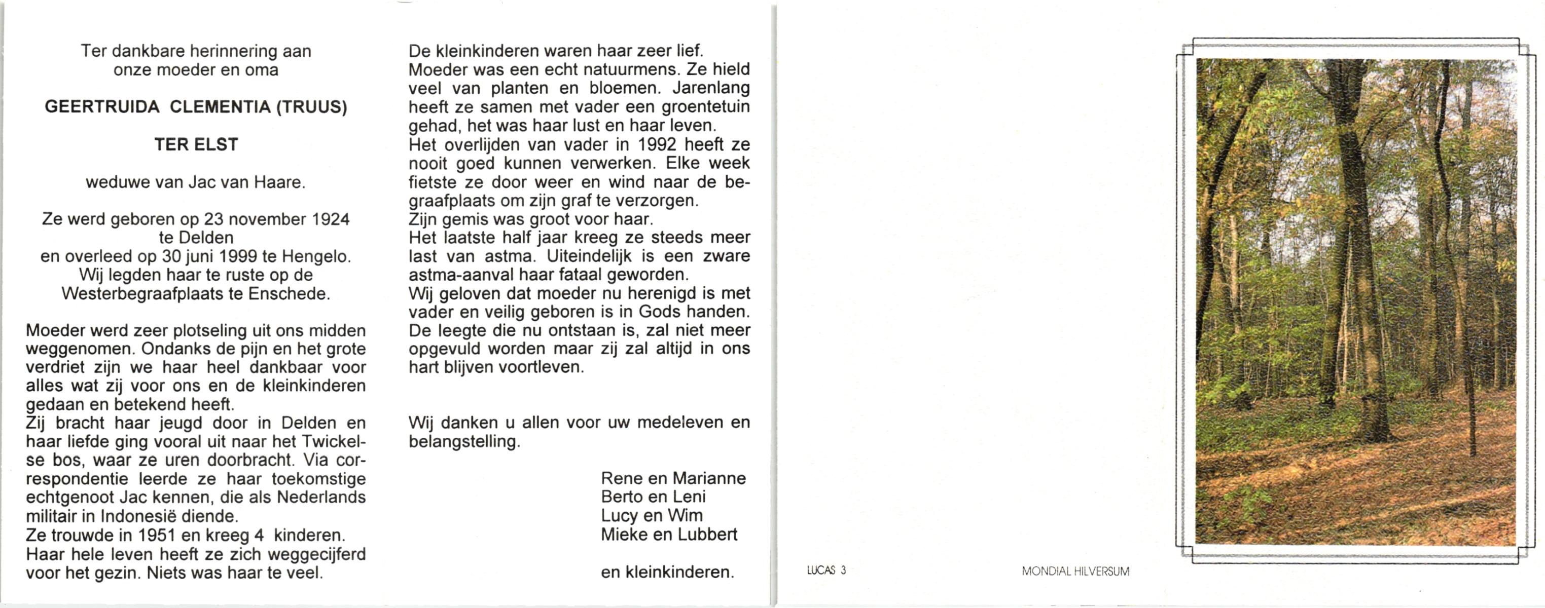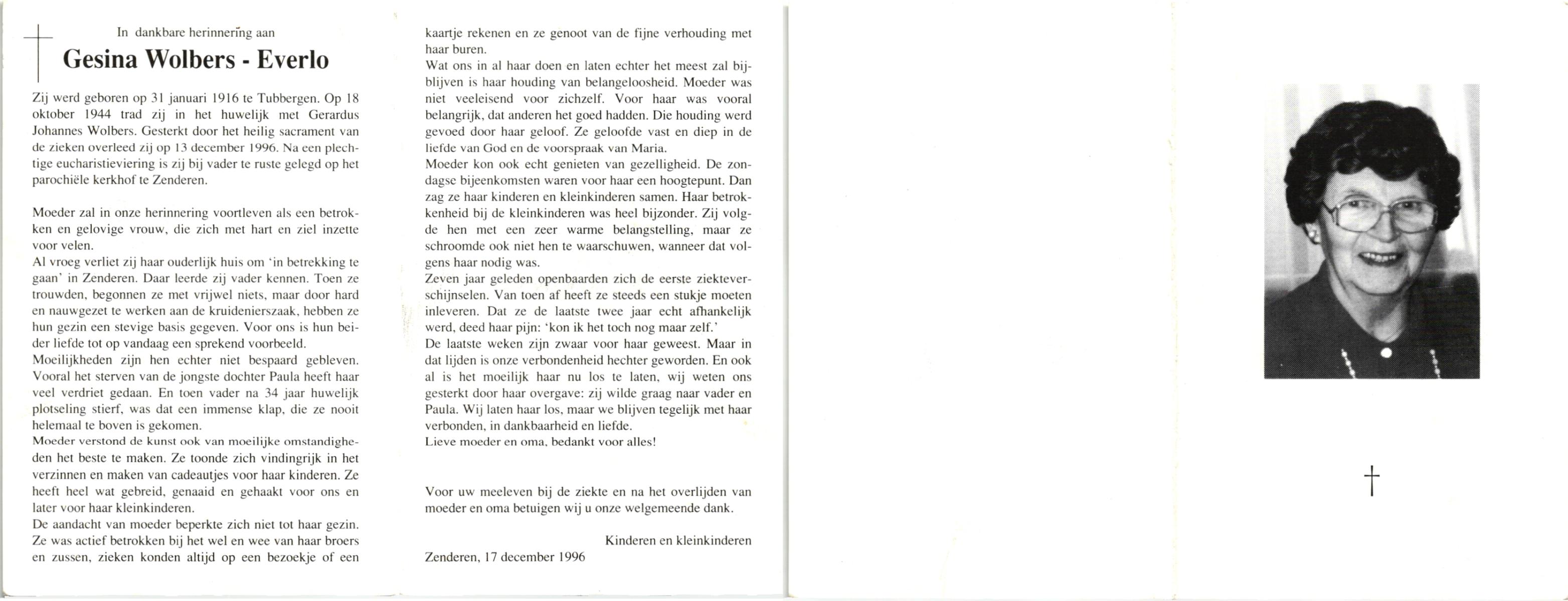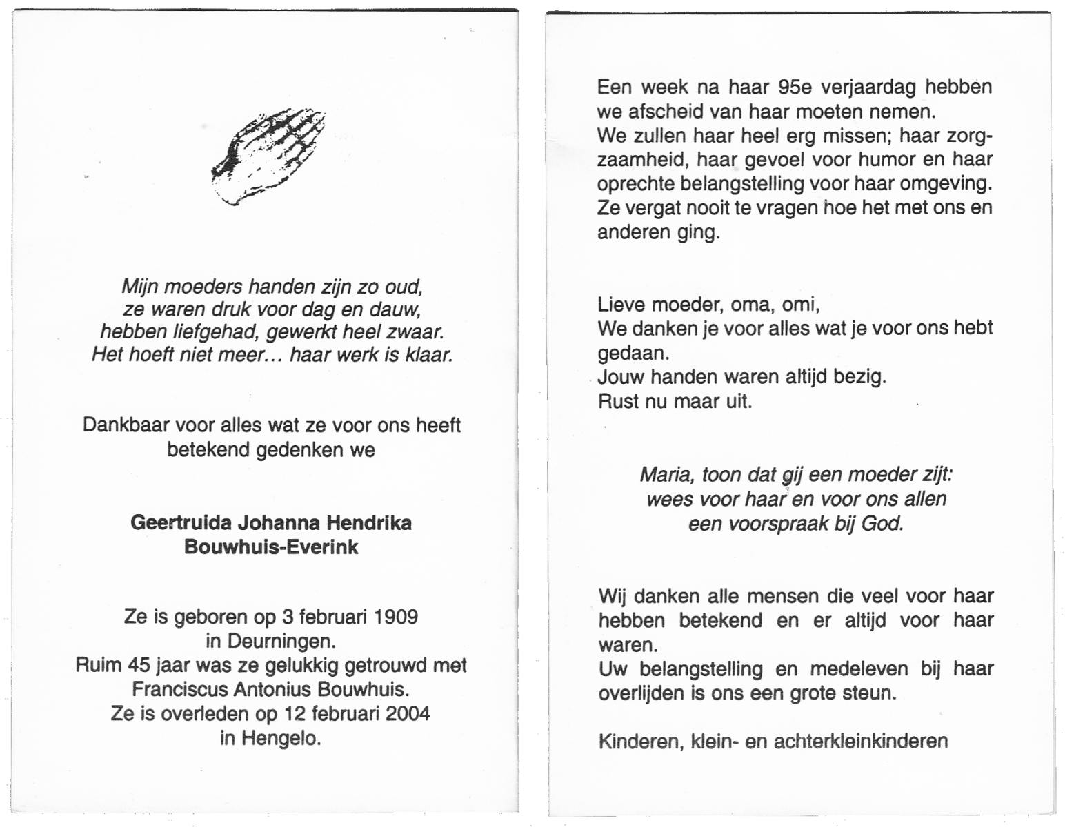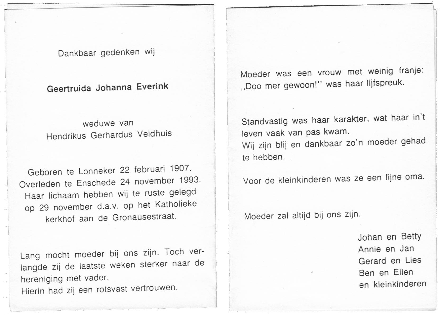 EVERS, , Geertruida Maria, geboren op 4-5-1914 te De Lutte, overleden op 9-1-2000 op 85-jarige leeftijd.