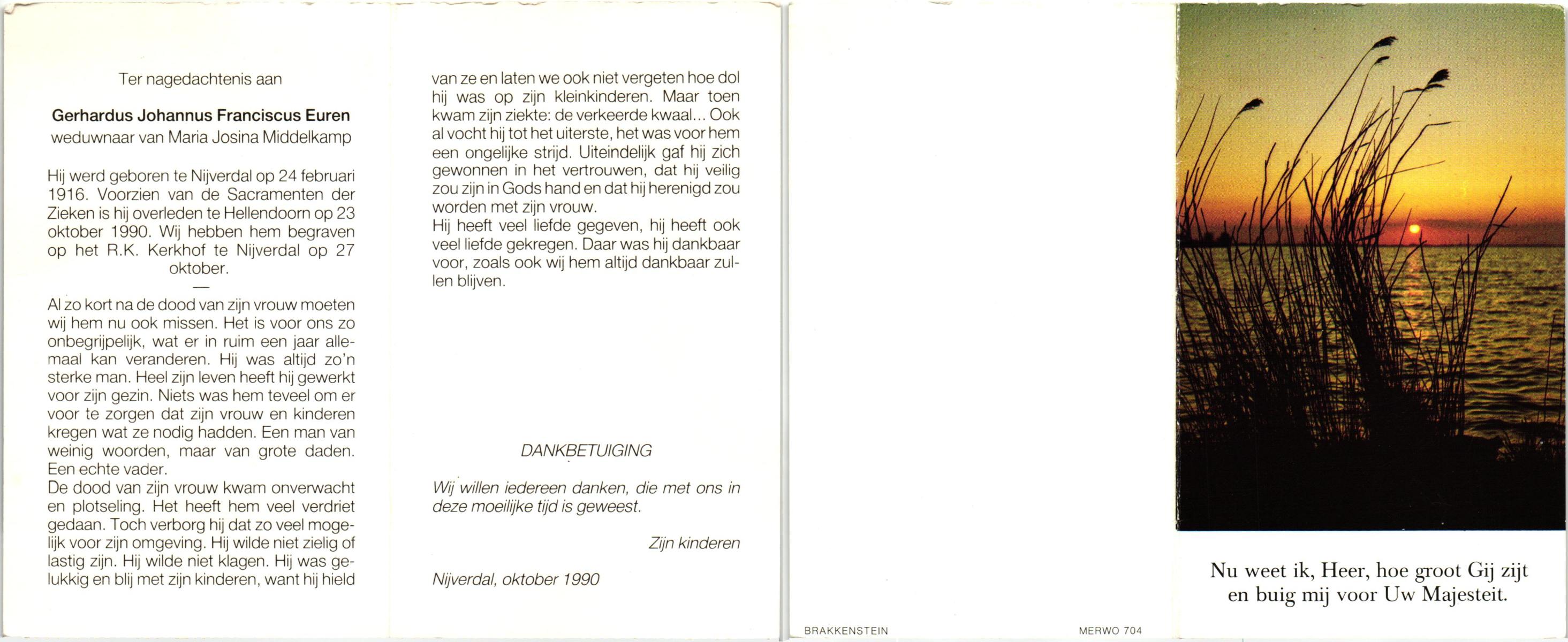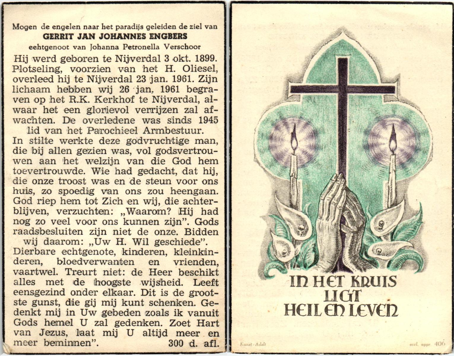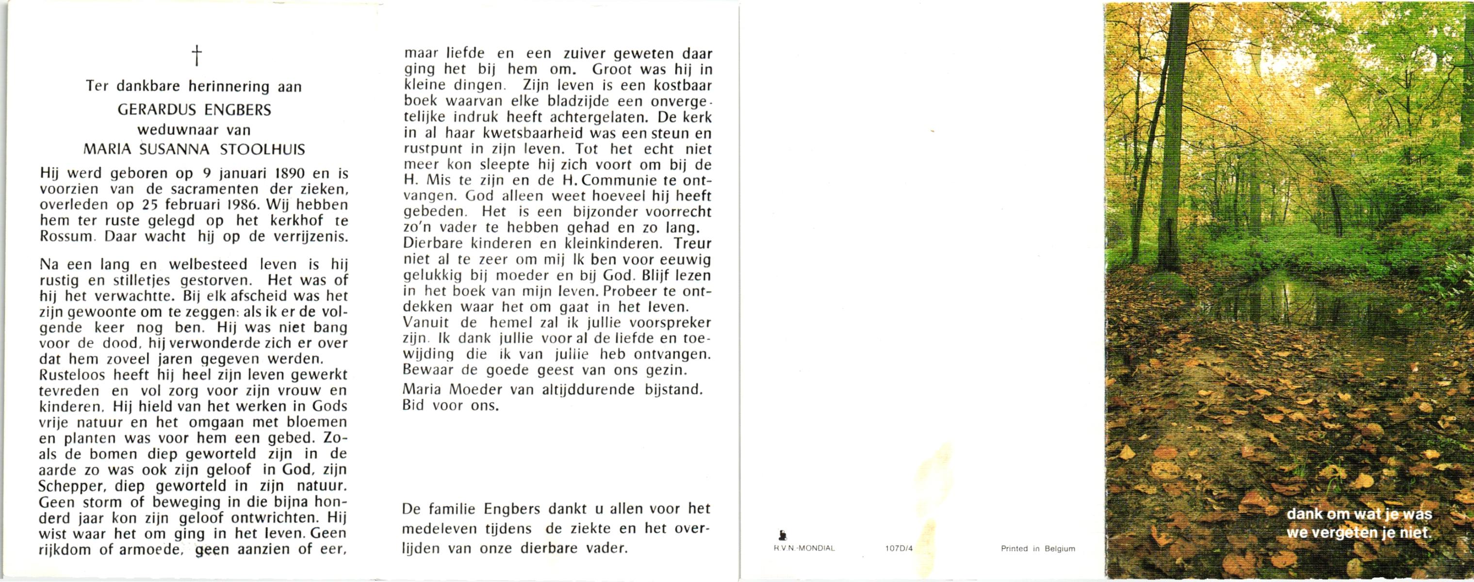 EVERS, Gradus Johannes, geboren op 28-01-1892 te Hellendoorn, Nijverdal, overleden op 9-6-1986 te Hellendoorn, Nijverdal op 94-jarige leeftijd, begraven op 14-6-1986 te Hellendoorn, Nijverdal, rk.