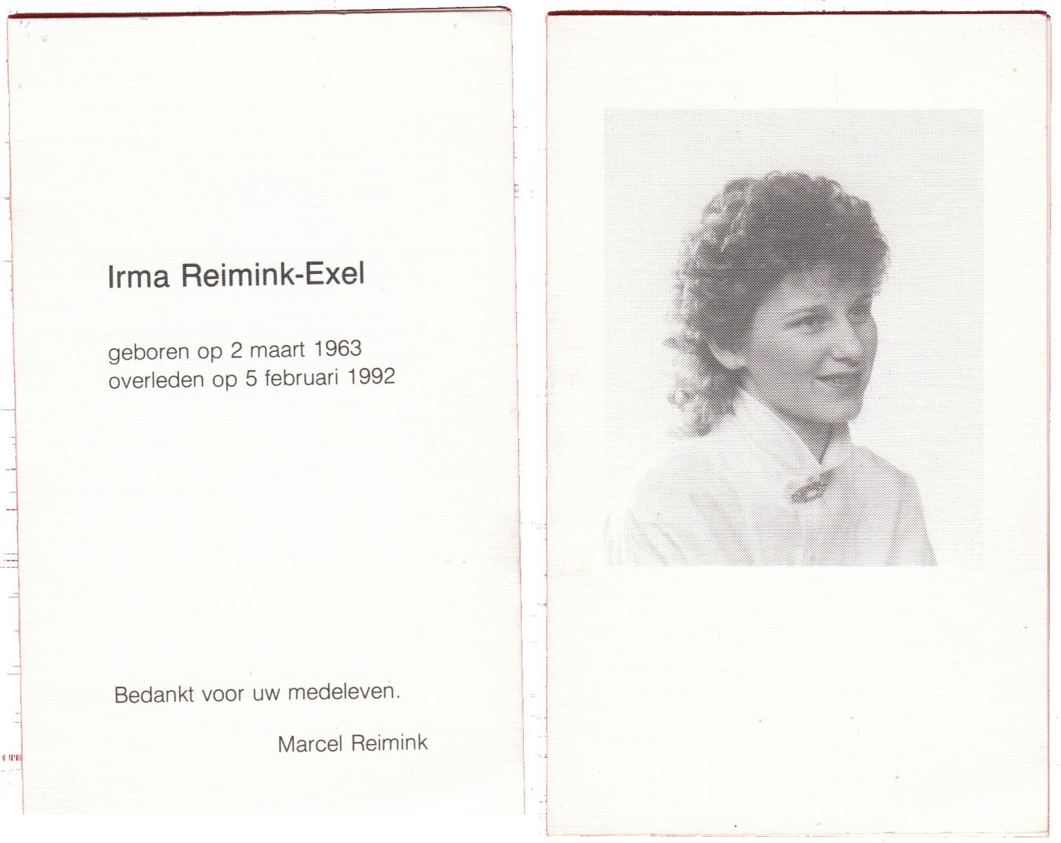 EXEL, Irma, geboren op 2-3-1963, overleden op 5-2-1992 op 28-jarige leeftijd.