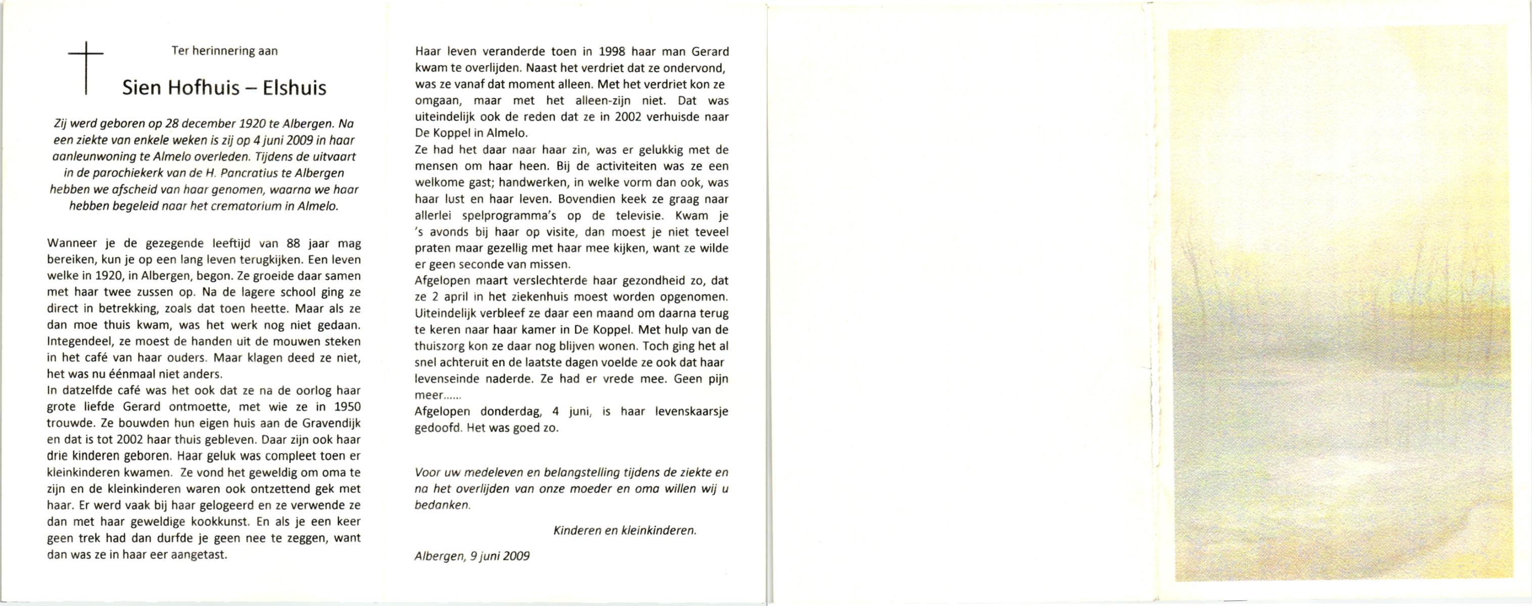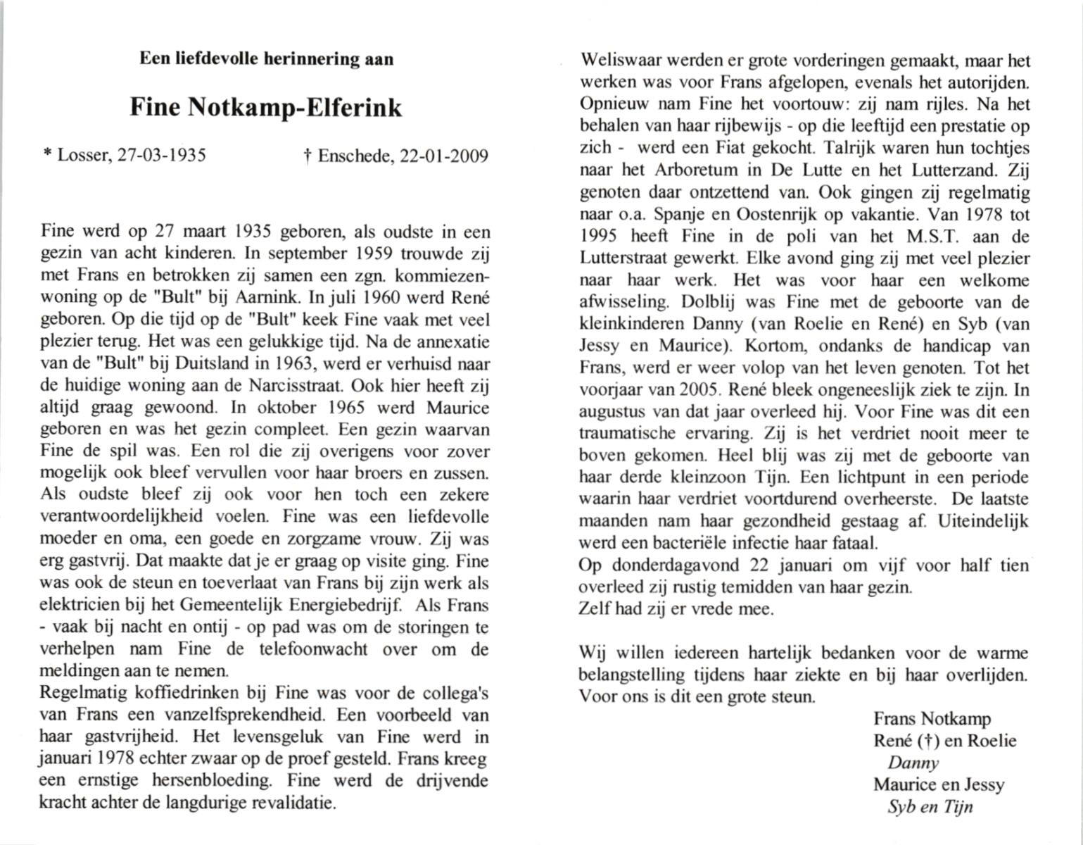 ELFERINK, , Fine, geboren op 27-3-1935 te Losser, overleden op 22-1-2009 te Enschede op 73-jarige leeftijd.