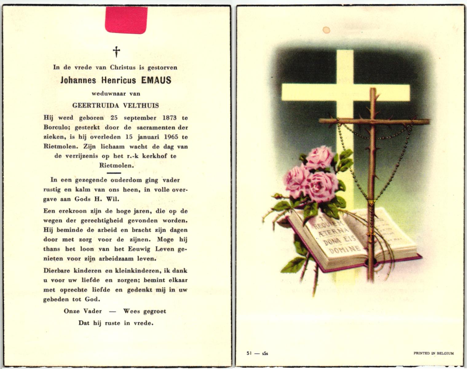 ELLENBROEK, Johannes, geboren op 10-12-1883 te Borne, overleden op 8-11-1968 op 84-jarige leeftijd, begraven op 11-11-1968 te Borne.